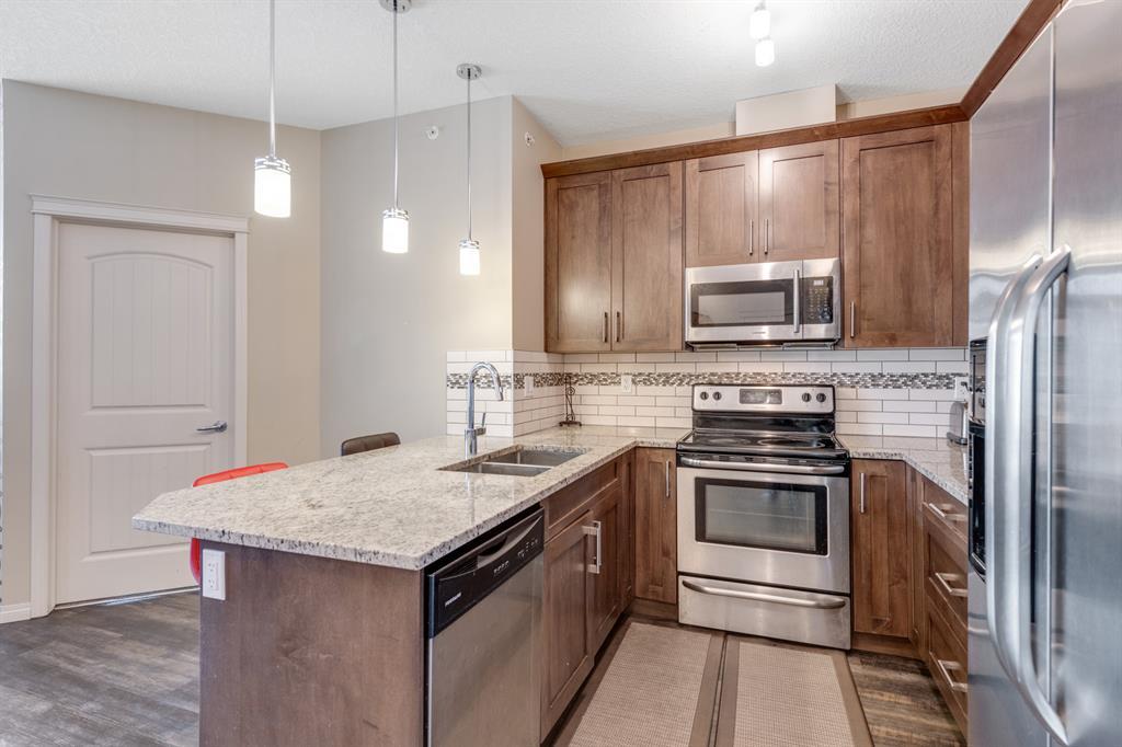 Beautiful 2 Bed, 2 Bath apartment with 9ft ceilings & upgraded stainless steel appliances. Large master bedroom offers full ensuite that spells comfort. Second bedroom offers great access to 2nd full bathroom and seller installed air conditioning in unit. Large laundry room offers additional storage space and patio offers complete privacy and a priceless view. This apartment is located on the top highly sought after 4th floor. Stacked laundry in suite and titled parkade stall. Convenient transit to city is only steps away as well as Symons Valley, Nolan Hill and Sage Hill shopping centres. Whether for personal use or investment purpose, make this yours today and you will have secured a worthy purchase. (id:22211)
