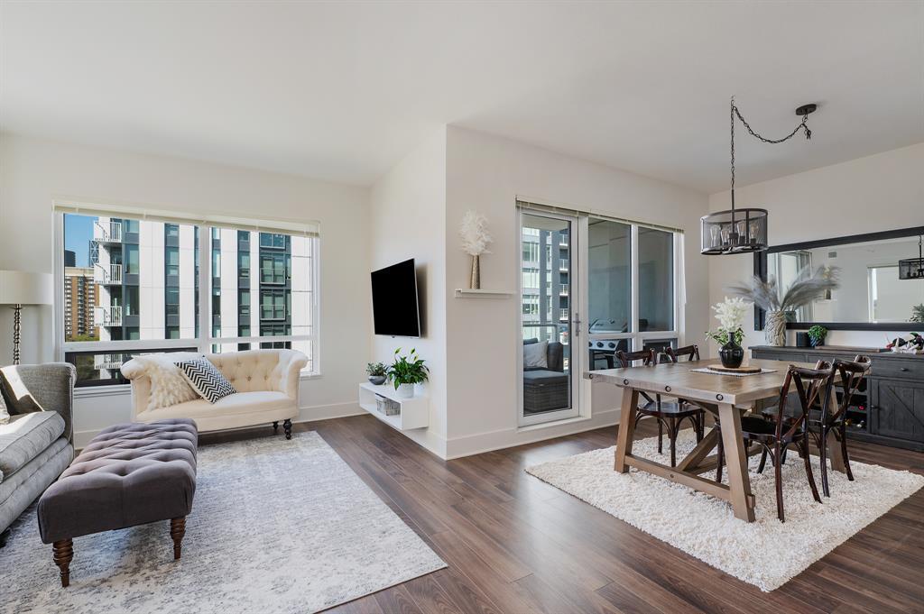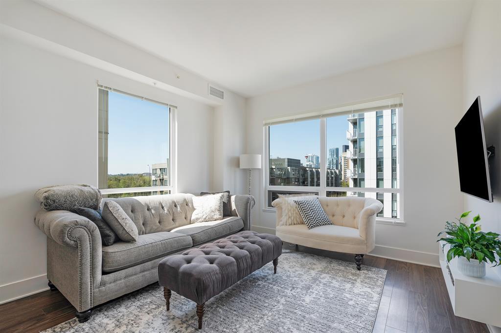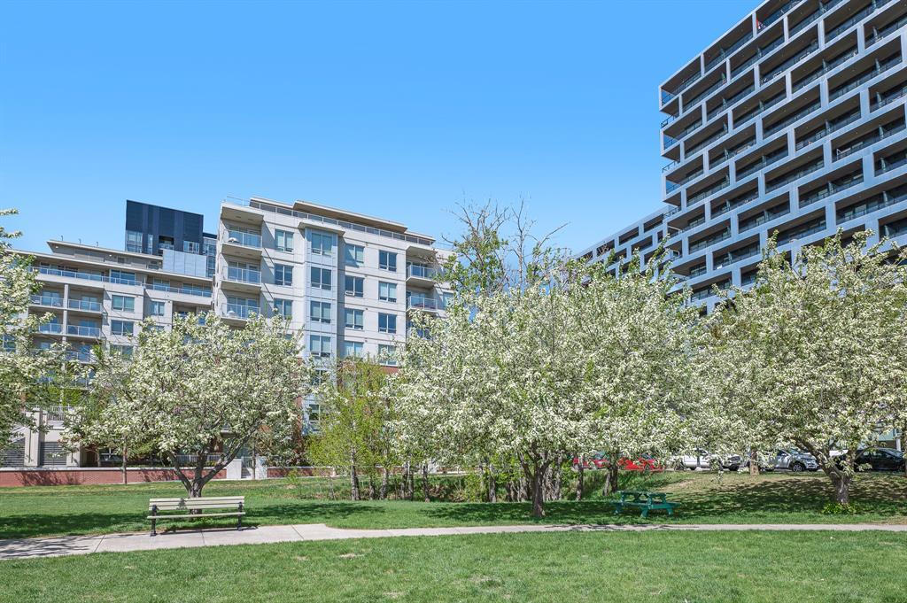 This modern 2 bedroom, 2 bathroom condo in historic Bridgeland offers an open plan layout, high ceilings & a range of desirable features that make it an exceptional choice for urban living. Let's explore further. Upon entering the condo, you'll immediately notice the modern & inviting atmosphere. The open plan design creates a seamless flow between the living, dining & kitchen areas, providing an ideal space for entertaining or simply relaxing with family & friends. The high ceilings enhance the sense of space & allow for plenty of natural light to fill the rooms. The kitchen is a chef's delight, featuring sleek & contemporary finishes. It boasts modern cabinetry, stainless steel appliances, & ample countertop space, making it both stylish & functional. Whether you're preparing a gourmet meal or enjoying a quick breakfast, this kitchen provides everything you need. The condo includes two bedrooms, offering comfortable & private retreats. The primary bedroom is spacious & features a private ensuite, providing a tranquil sanctuary. The second bedroom is well-sized & can serve as a guest room, home office, or a space that suits your lifestyle needs. The second bathroom, accessible from both the second bedroom & the main living area, ensures convenience & privacy. One of the highlights of this condo is the balcony that offers picturesque views of the surrounding area. It provides a perfect spot to relax, unwind & enjoy the fresh air while taking in the beautiful scenery. Whether you want to sip your morning coffee or host a small gathering, this balcony is a delightful addition to your living space. For added convenience, the condo includes one underground secured titled parking stall, ensuring your vehicle is safely stored. An assigned storage locker is also provided, offering ample space to keep your belongings organized & easily accessible. Building amenities include a 2 fitness centers, party room, movie theatre, bicycle storage, guest suite, massive courtyard with BBQ areas, picnic spots & garden plots. Living in Bridgeland means you'll have easy access to a wide range of amenities. From local shops, restaurants & cafes to parks, walking/biking trails & recreational facilities, everything you need is within reach. Furthermore, the proximity to downtown allows for a quick commute, making this location perfect for those who work or enjoy the vibrant city life. Don't miss the opportunity to own this stylish residence in one of the most sought-after neighborhoods in the city. (id:22211)