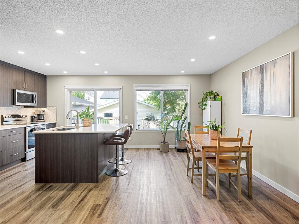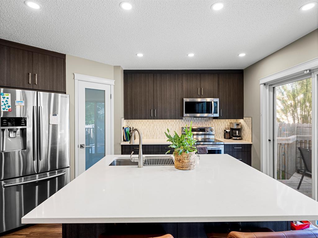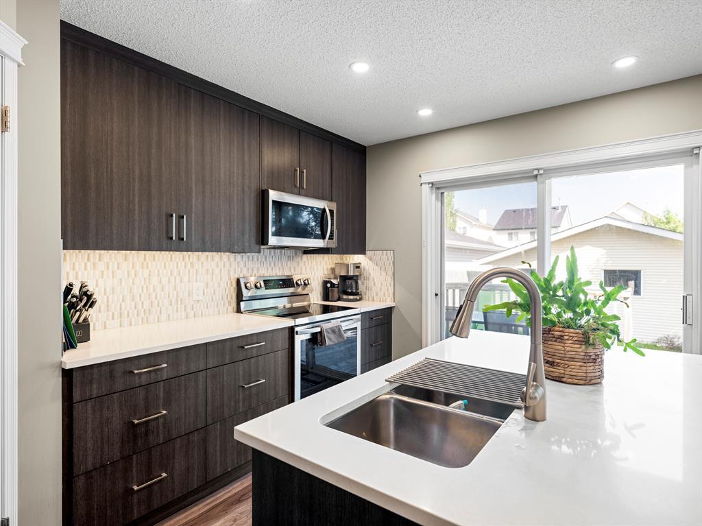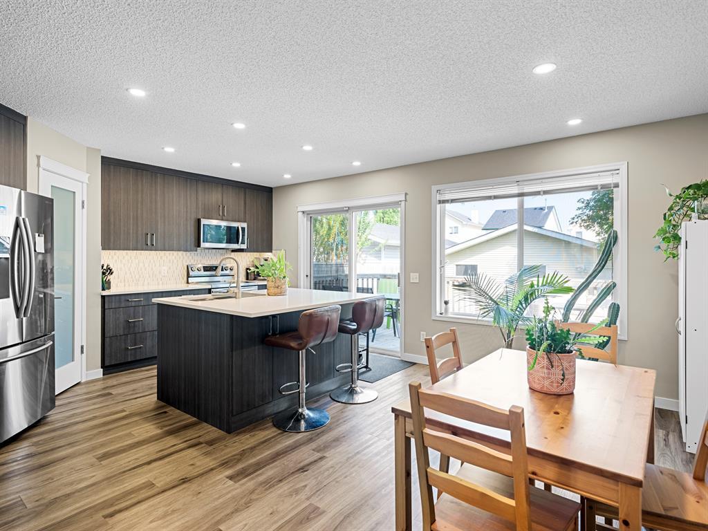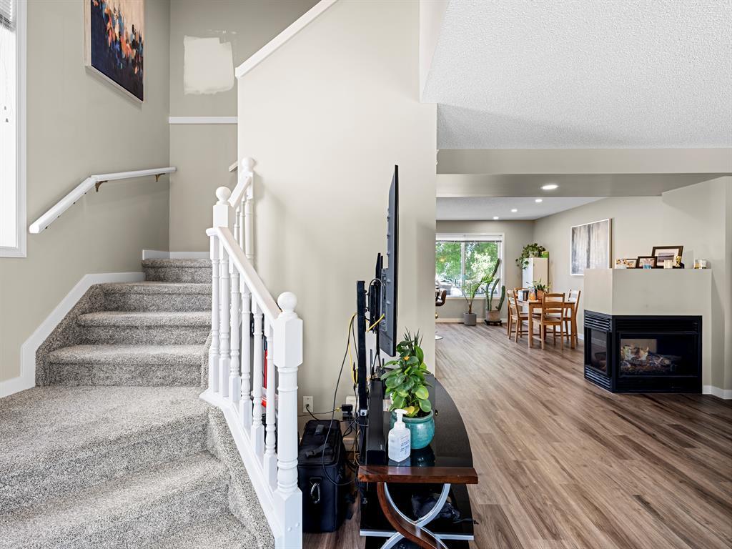 This charming, extensively updated property is perfectly located, close to schools, amenities and the Tuscany Club and is ready to welcome you home. Greeting you at the property is a lovely front porch, the perfect place to enjoy your morning cup of coffee. As you step inside, you'll immediately notice the brand new modern and stylish vinyl plank flooring that extends throughout the main floor. The newly renovated kitchen boasts a spacious layout with a large kitchen island that includes breakfast bar seating. New stainless steel appliances complement the sleek design, and the quartz countertops provide an elegant touch. With a corner pantry, you'll have plenty of storage space for all your culinary needs. The kitchen seamlessly flows into the eating nook, creating an open floor plan that allows for easy interaction and entertainment while preparing meals. Adjacent to the kitchen is the inviting living room, which features a cozy 3-way fireplace as its focal point. The big windows overlooking the front porch fill the room with natural light and provide a pleasant view of the surrounding mature trees, creating a serene atmosphere that enhances the overall ambiance of the home. The backyard of this property is truly a gem. It features a large back deck that offers ample space for outdoor entertaining and relaxation. With a convenient gas line connection, you can easily set up a barbecue for those warm summer evenings. The backyard is fully fenced, providing a safe and private environment for children or pets to play freely. The lush green space adds a touch of tranquility to the outdoor area, making it a perfect retreat for enjoying the beauty of nature. Moving to the upper level of the home, you are met with the primary bedroom showcasing large windows, offering picturesque views of the front yard's mature trees. The 4-piece ensuite bathroom provides a private oasis, and the spacious walk-in closet ensures ample storage for all your belongings. Two good sized bedroom s and a 4pc bathroom complete this upper level. The full, unfinished basement features the laundry room and has great potential for future development. Additional upgrades have been made to the property, including the replacement of all PolyB plumbing, a double detached garage and addition parking pad space is available for your convenience. New roof on both the home and garage, a new hot water tank ensures reliable and efficient heating. The main floor washroom has been completely redone, adding a touch of modern luxury to the home. Additionally, a new central air conditioning system and a new 2-stage variable speed furnace with a humidifier have been installed, ensuring optimal comfort throughout the year. Don't miss out on the opportunity to own this delightful home in Tuscany, offering a combination of modern upgrades, a beautiful backyard, and a convenient location. (id:22211)