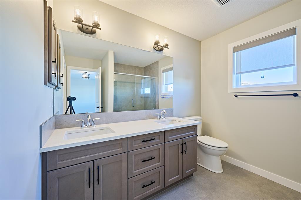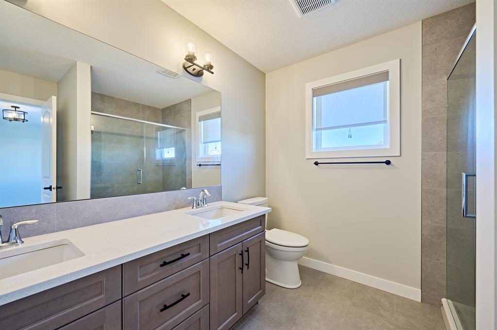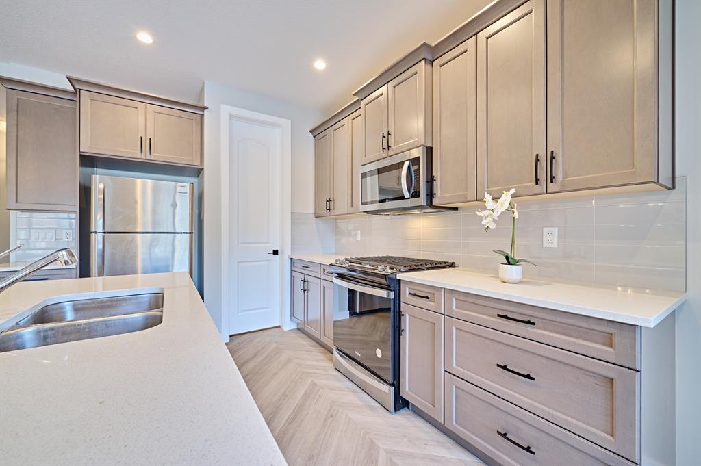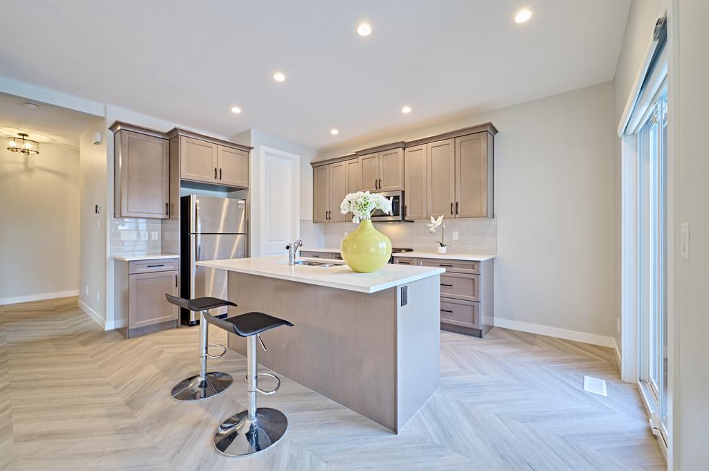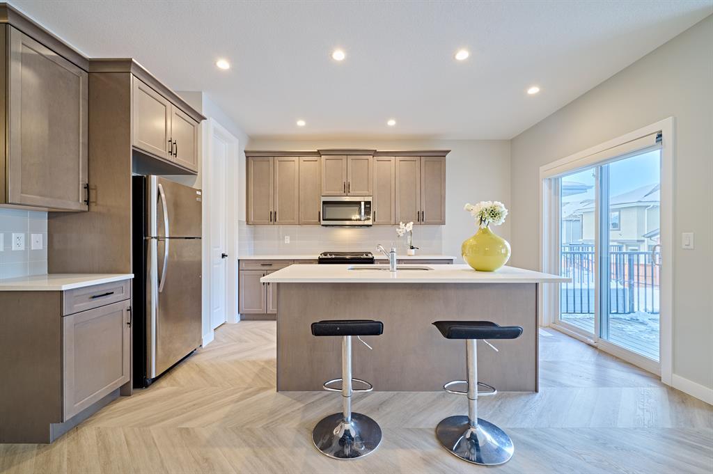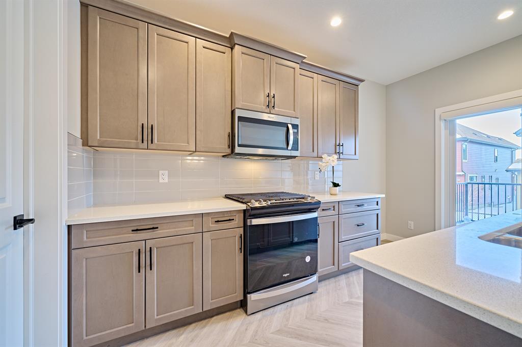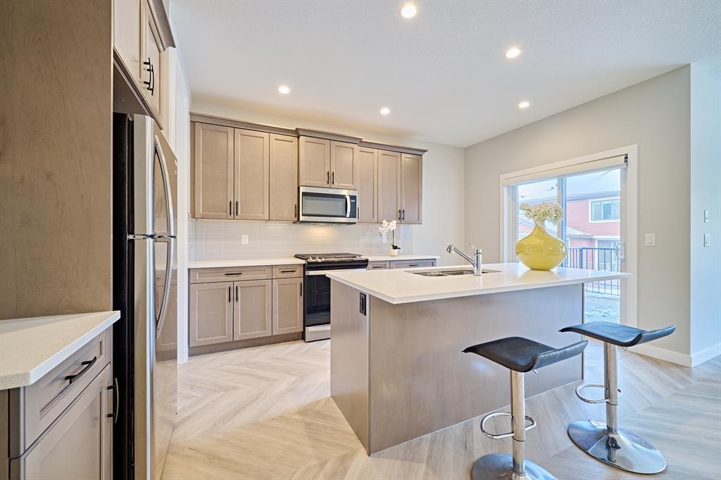 Open house on 1-4PM Saturday June 24th, Welcome to 48 Shawnee Green SW in shawnee park, which is designed to be one of Calgary's most beautiful new neighborhoods. the modern farmhouse architecture with Hardie board siding, providing this home with great curb appeal. Main floor boost 9’ ceilings, premium luxury vinyl plank flooring, quartz countertops throughout and premium finishes. The custom kitchen features modern style cabinetry with soft close doors and drawers, stainless steel appliances – including a gas range, stainless steel sink, quartz countertop, The great room enjoys a custom fireplace design with floor to ceiling tile, large windows providing bright natural light, overlooking the fully landscaped backyard. The second floor features 3 bedrooms, 4pc bathroom, laundry room and bonus room with large windows overlooking green island space. The primary suite, features large windows overlooking the yard and a 4 pc ensuite with dual sinks, large tiled shower, free standing soaker tub and connecting walk-in closet. Located off the kitchen entry is a large deck with aluminum railing. This outdoor space is perfect for outdoor living and entertaining. The front and back yard is fully landscaped complete with irrigation system. walking distance to Fish Creek Park, nearby community parks, public transit, including LRT for a short commute to downtown, nearby schools and established amenities. Call today for your private tour. (id:22211)