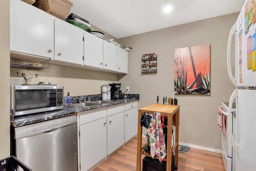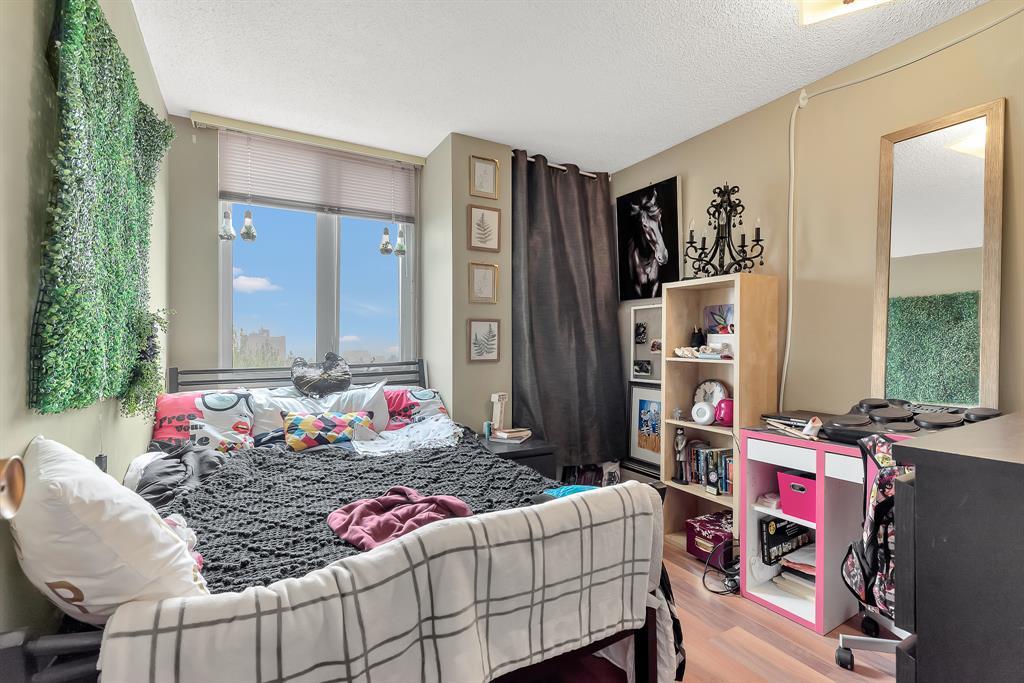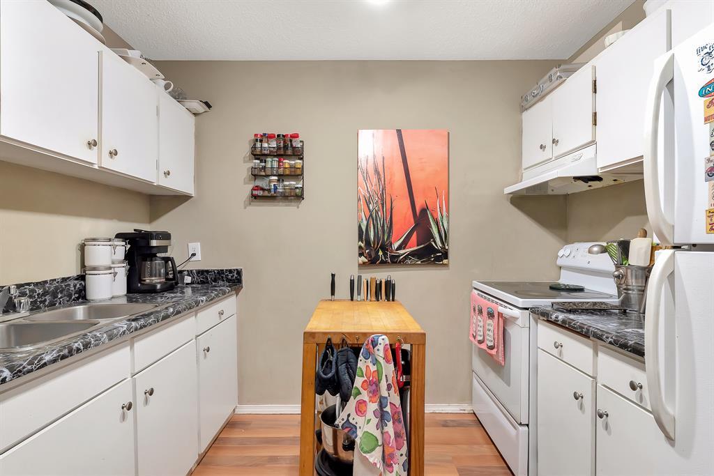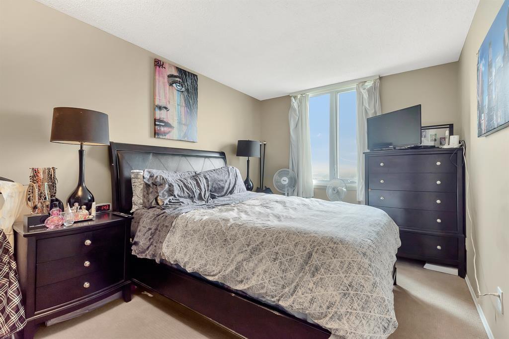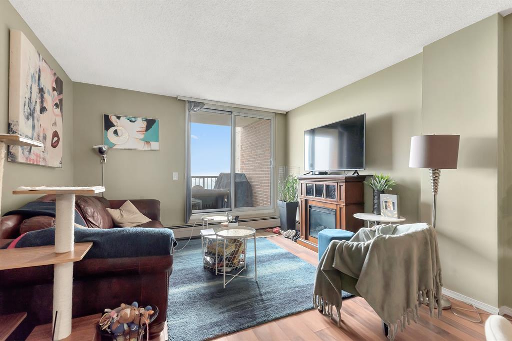 Enjoy great views to the far west on your balcony is this 9th floor 2 bedrooms unit in Fortress! Famous for a indoor swimming pool and fitness room, this well managed concrete condo building is conveniently located within walking distance to LRT, shopping center, Bus, Schools and more! By entering you will find a gallery kitchen with white cabinets and white appliances, bright living room has floor to ceiling patio doors and opens to a 10' x 5' balcony perfect for relaxation. Good sized dinning room and bedrooms all finished with laminate floor. Full sized 4pcs bathroom has updated vanity. Package also comes with a heated underground parking stall (#332) good for the long winter days...priced for a quick sale! **Current tenant lease ends July 31, 2023 rent is $1300 and she would like to stay if possible** (id:22211)