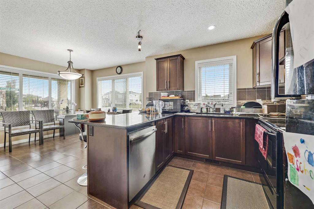 **BEST LOCATION**CHECK AND COMPARE**NO CONDO FEES** Immaculately maintained bright and open plan **Modern design** 2 story townhouse located in the heart of the Cityscape community. **GOURMET KITCHEN - CHEF'S DELIGHT!** Custom features include upgraded wood style cabinet doors, Efficient U-Shaped layout with a flush breakfast bar, black appliances, under mount stainless steel sink with sink above, pantry cabinet, GRANITE, and custom backsplash tile. Spacious dining room and great room combo with a bright facing front and side windows. Please note the larger floor plan offers a corner end unit view, an oversized front foyer and staircase landing with many extra windows. Super bright design!! All flooring upgraded with tile and hardwood on the main floor, tile floors in the baths and High quality carpet on the stairs and upstairs bedrooms. BONUS: upper east facing 20' x 9' patio off the upstairs family room. 3 generous size bedrooms & 2.5 bathrooms. Primary bedroom with a 3 piece ensuite, big closet. 20'9" x 19'2" double car attached garage with extra street parking. Other upgrades: Park views, closet organizers, exterior Stone front detail, unspoiled basement, electric hot water tank, and fully landscaped with trees! Call your friendly REALTOR(R) to book a viewing! (id:22211)