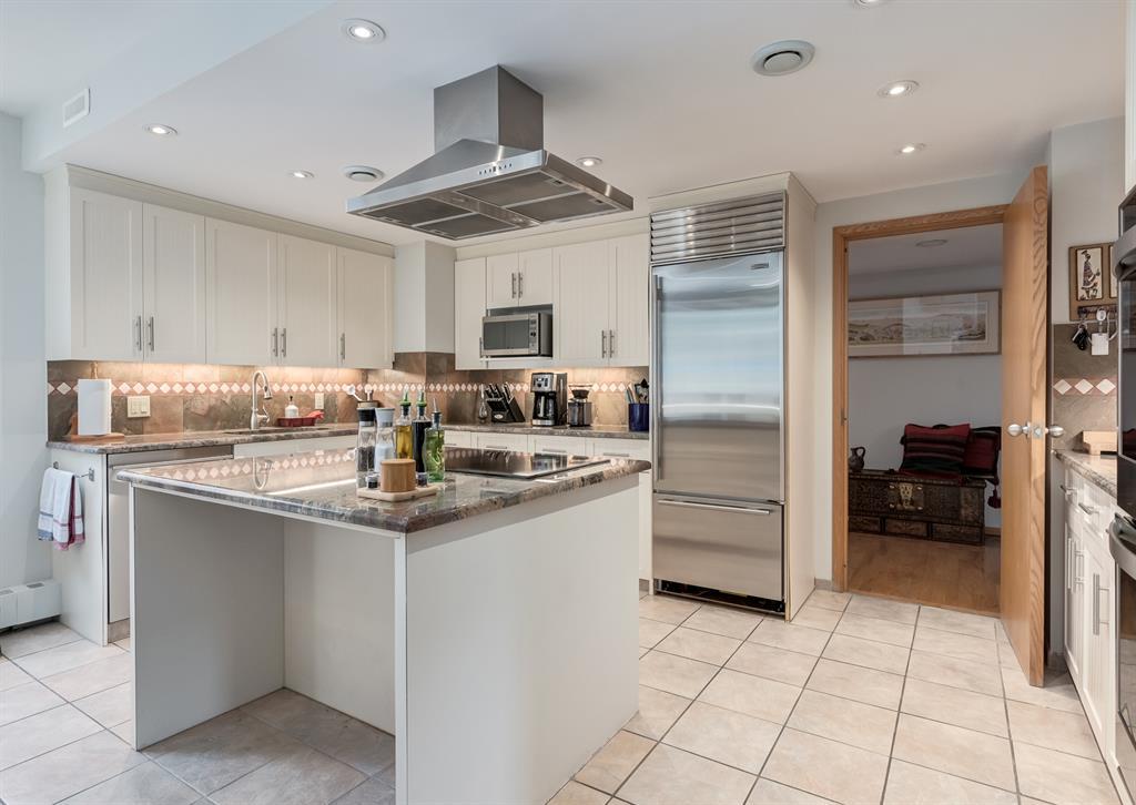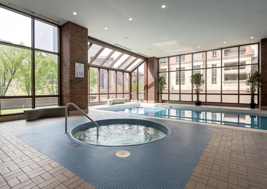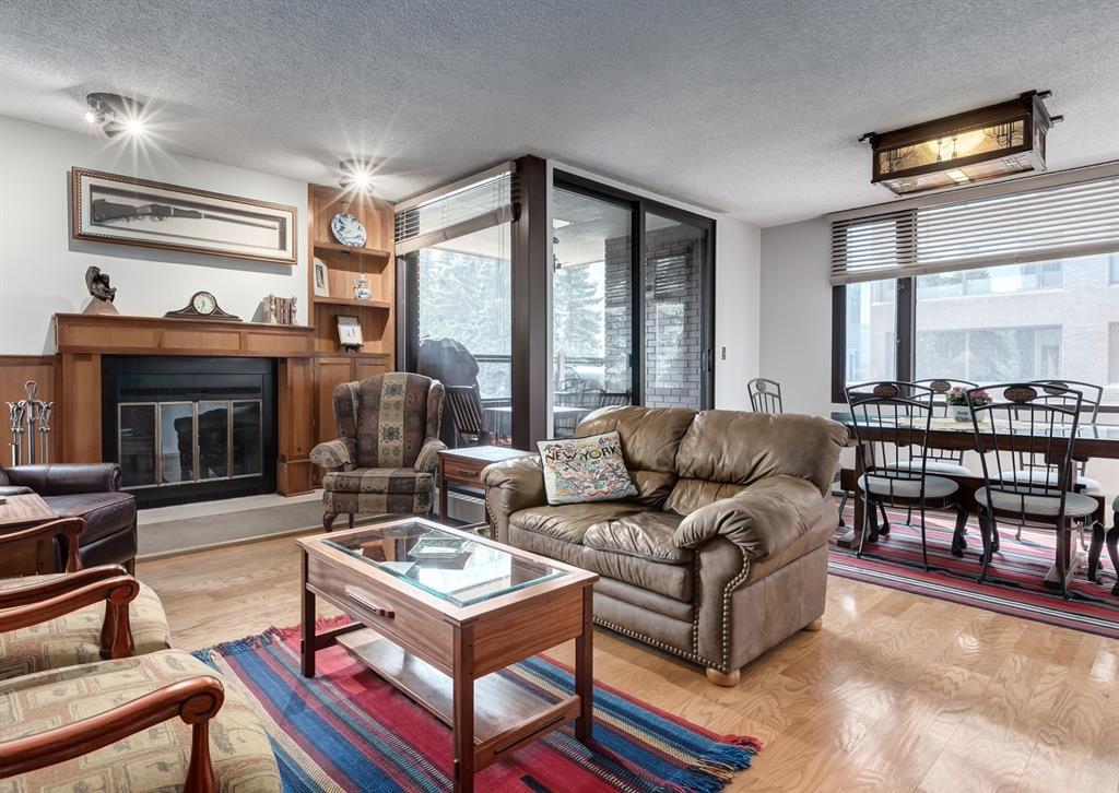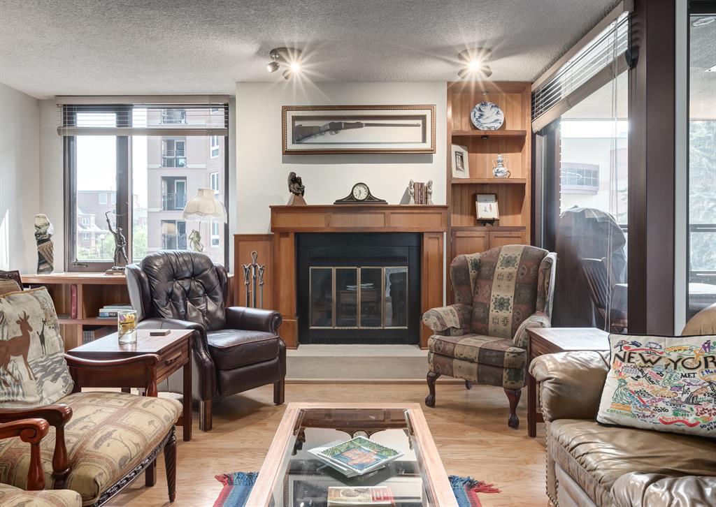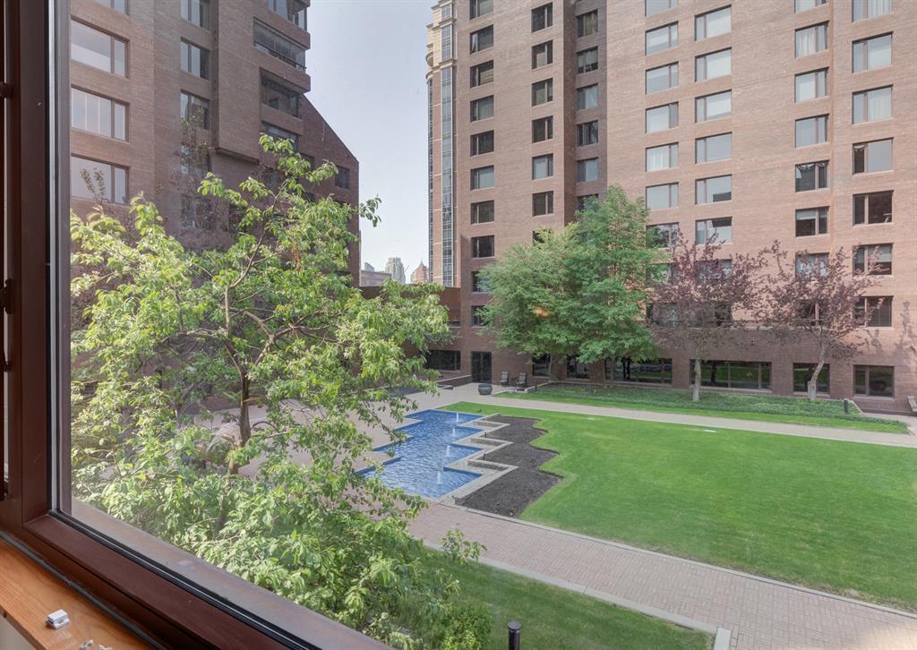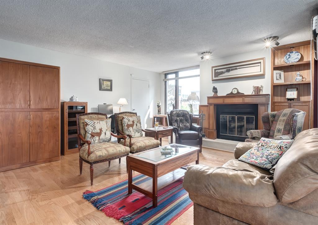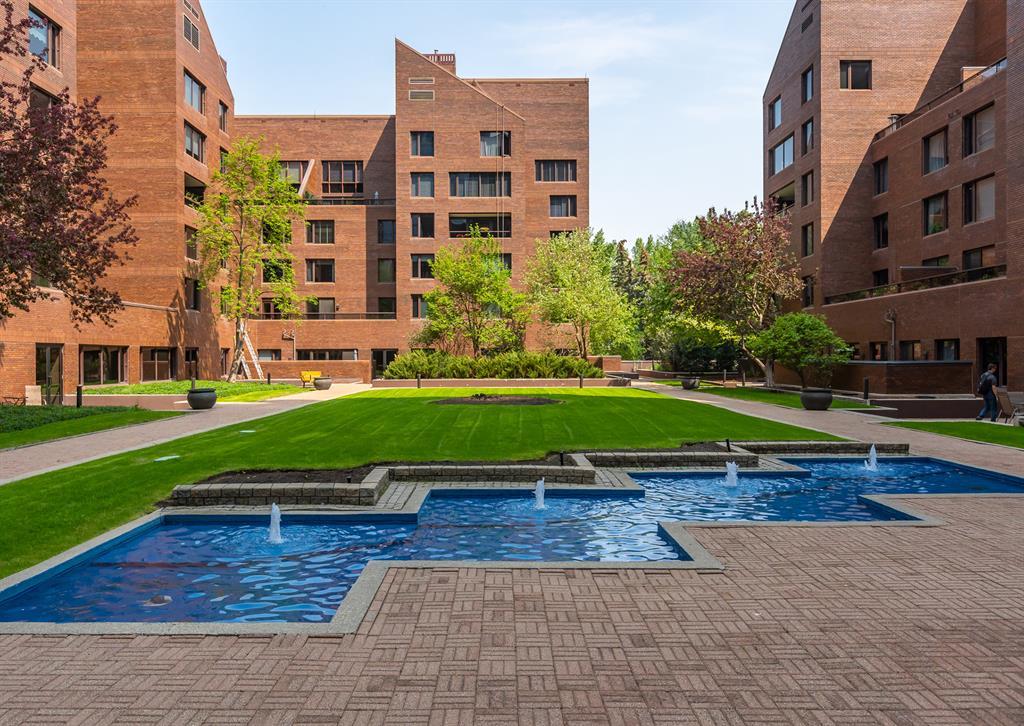 Eau Claire Estate provides an unparalleled living experience, boasting an array of incredible amenities. This exceptional 2-bedroom, 2-bathroom unit spans 1,766 square feet and offers exclusive access in Building K, shared with only one other unit, via a semi-private elevator. Situated as a corner unit, it showcases a captivating view of the beautiful inner courtyard. Benefit from round-the-clock security and concierge services, as well as the convenience of dry cleaning pick-up from Fishman's. Indulge in the luxurious pool and hot tub, recently renovated change rooms, fully equipped gym, and social room featuring a pool table and kitchen. Outdoor enthusiasts will relish the community garden, golf enthusiasts can practice their putting on the on-site green, and cyclists will appreciate the proximity to the Bow River Parkway and Prince's Island Park. For those with a passion for fishing, the Bow River is just steps away. Step inside this grand unit, where you'll find exquisite features and finishes throughout. The fireplace, adorned with a mantle crafted from 100-year-old wood, serves as a centrepiece, complemented by custom shelving and fixtures. The upgraded kitchen showcases pristine white cabinetry, newer dual wall ovens, and a sub-zero refrigerator. Perfect for entertaining, the dining room boasts a custom light fixture, while the spacious living room offers a comfortable space to unwind by the fireplace or showcase your artwork. Large windows flood the unit with natural light at various times of the day, and the balcony provides a delightful setting to BBQ. The primary bedroom offers a serene view of the inner park and its enchanting fountains, adorned with fairy lights in winter and vibrant flowers in summer. The second bedroom is generously sized with a Murphy Bed for guests or serving as an elegant office space. The building ensures your security with 24-hour concierge service and regular patrols. The secure underground parkade maintains impeccable cleanline ss and includes a convenient carwash, assigned bike storage, workshop, and recycling centre. The unit includes two titled parking spaces, arranged in tandem style with access from both sides, conveniently located near the elevator. Don't miss the opportunity to experience the epitome of luxury living at Eau Claire Estates. Contact us now to schedule a private viewing and become a proud member of this esteemed community. (id:22211)