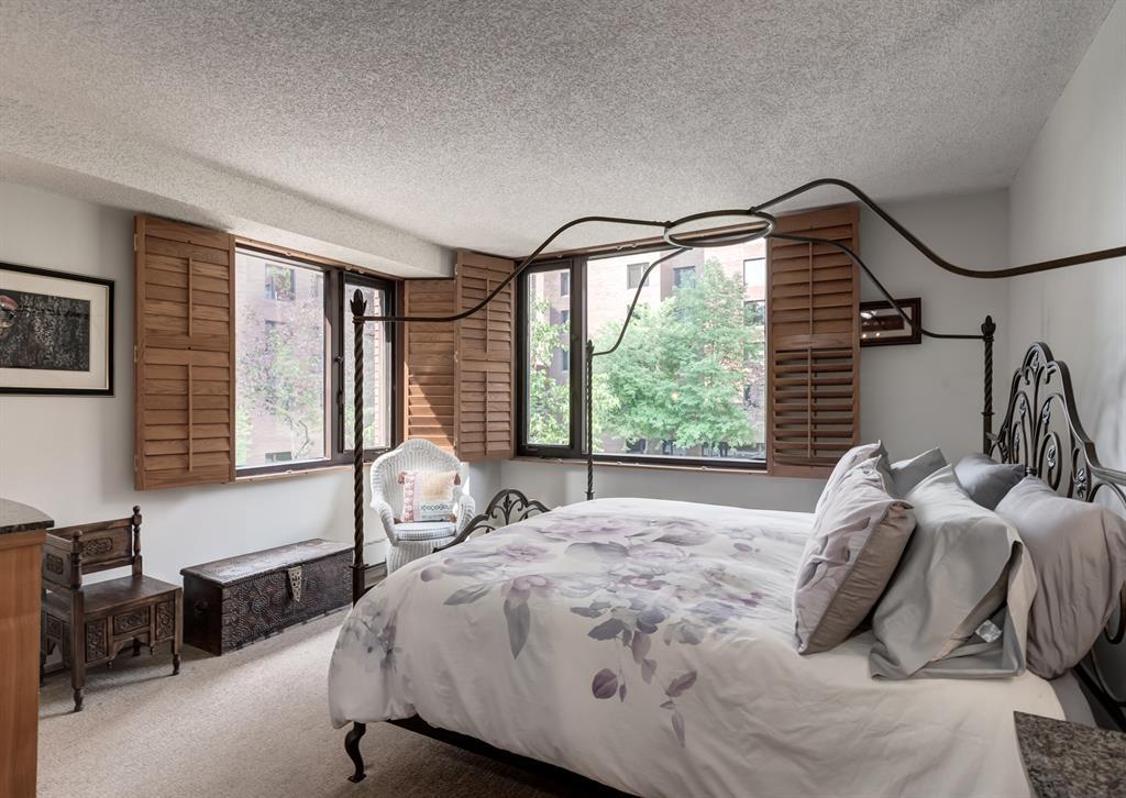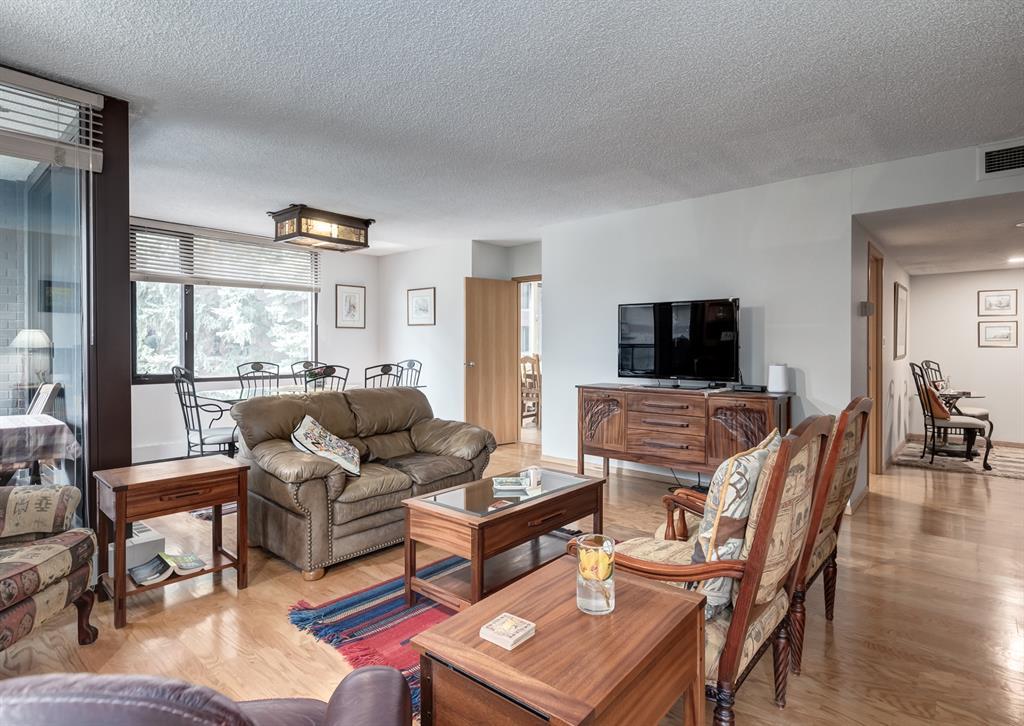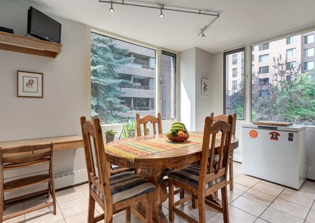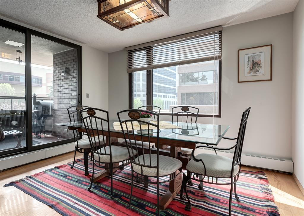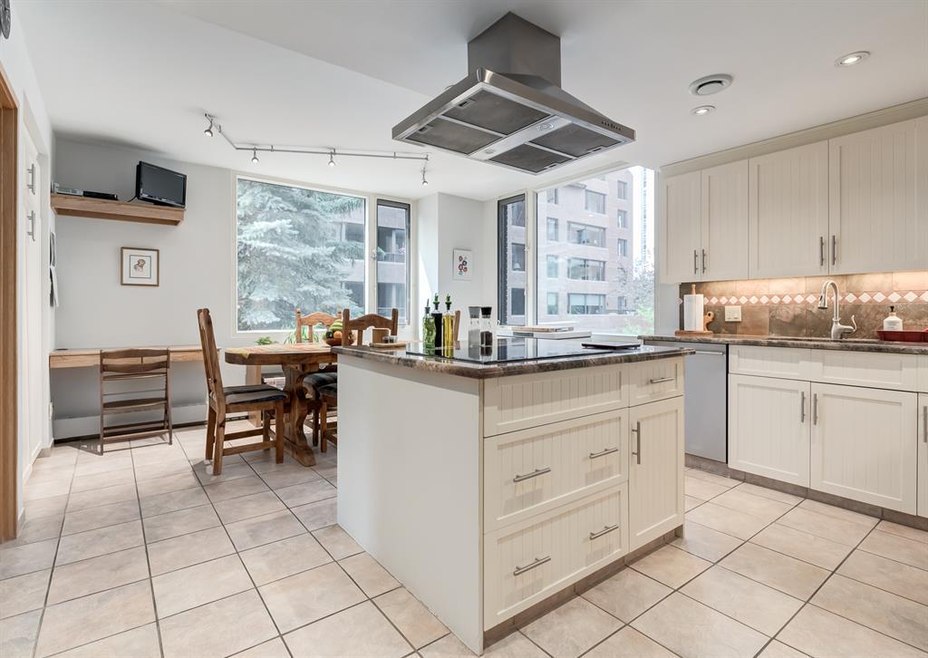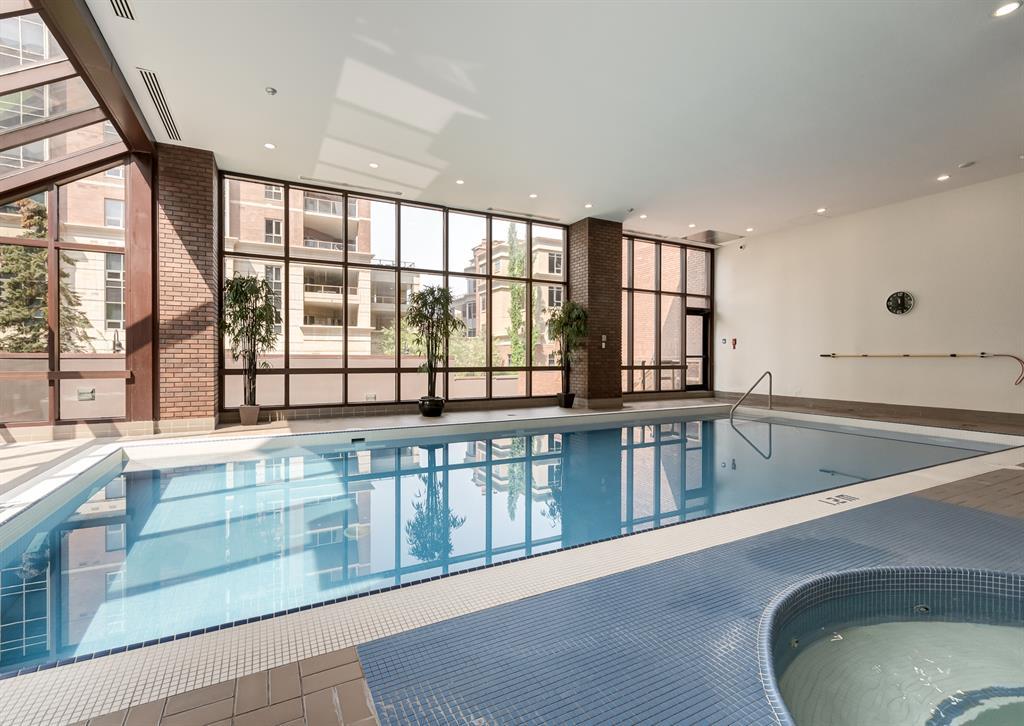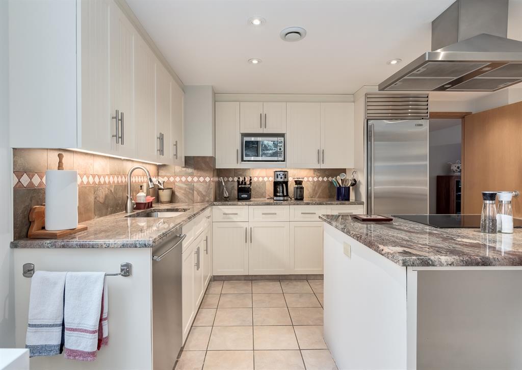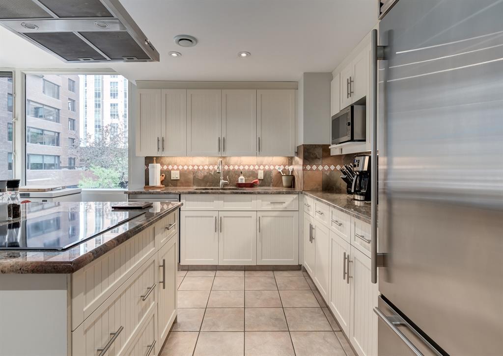 Eau Claire Estate provides an unparalleled living experience, boasting an array of incredible amenities. This exceptional 2-bedroom, 2-bathroom unit spans 1,766 square feet and offers exclusive access in Building K, shared with only one other unit, via a semi-private elevator. Situated as a corner unit, it showcases a captivating view of the beautiful inner courtyard. Benefit from round-the-clock security and concierge services, as well as the convenience of dry cleaning pick-up from Fishman's. Indulge in the luxurious pool and hot tub, recently renovated change rooms, fully equipped gym, and social room featuring a pool table and kitchen. Outdoor enthusiasts will relish the community garden, golf enthusiasts can practice their putting on the on-site green, and cyclists will appreciate the proximity to the Bow River Parkway and Prince's Island Park. For those with a passion for fishing, the Bow River is just steps away. Step inside this grand unit, where you'll find exquisite features and finishes throughout. The fireplace, adorned with a mantle crafted from 100-year-old wood, serves as a centrepiece, complemented by custom shelving and fixtures. The upgraded kitchen showcases pristine white cabinetry, newer dual wall ovens, and a sub-zero refrigerator. Perfect for entertaining, the dining room boasts a custom light fixture, while the spacious living room offers a comfortable space to unwind by the fireplace or showcase your artwork. Large windows flood the unit with natural light at various times of the day, and the balcony provides a delightful setting to BBQ. The primary bedroom offers a serene view of the inner park and its enchanting fountains, adorned with fairy lights in winter and vibrant flowers in summer. The second bedroom is generously sized with a Murphy Bed for guests or serving as an elegant office space. The building ensures your security with 24-hour concierge service and regular patrols. The secure underground parkade maintains impeccable cleanline ss and includes a convenient carwash, assigned bike storage, workshop, and recycling centre. The unit includes two titled parking spaces, arranged in tandem style with access from both sides, conveniently located near the elevator. Don't miss the opportunity to experience the epitome of luxury living at Eau Claire Estates. Contact us now to schedule a private viewing and become a proud member of this esteemed community. (id:22211)