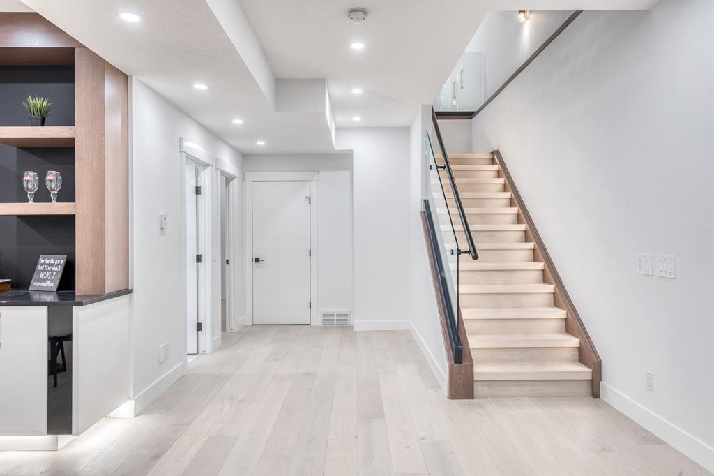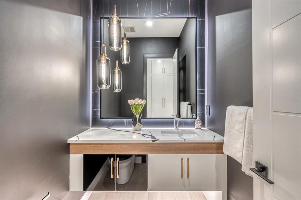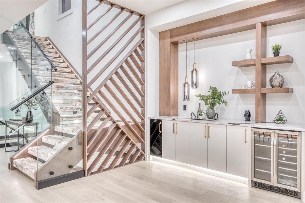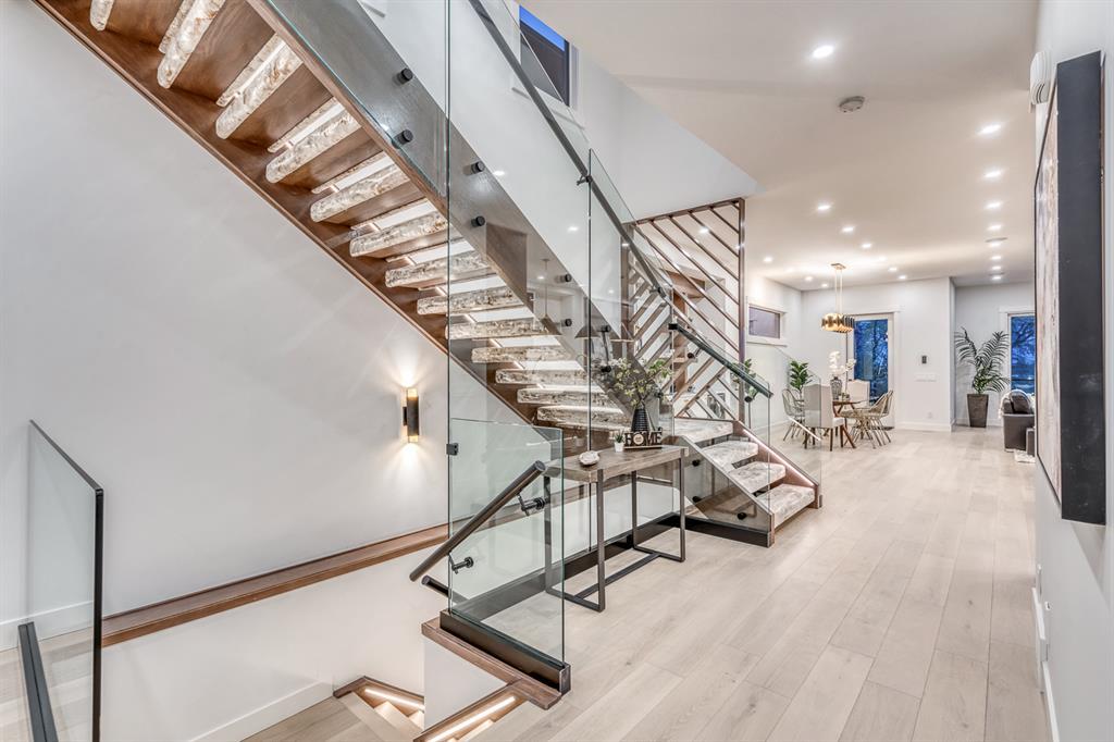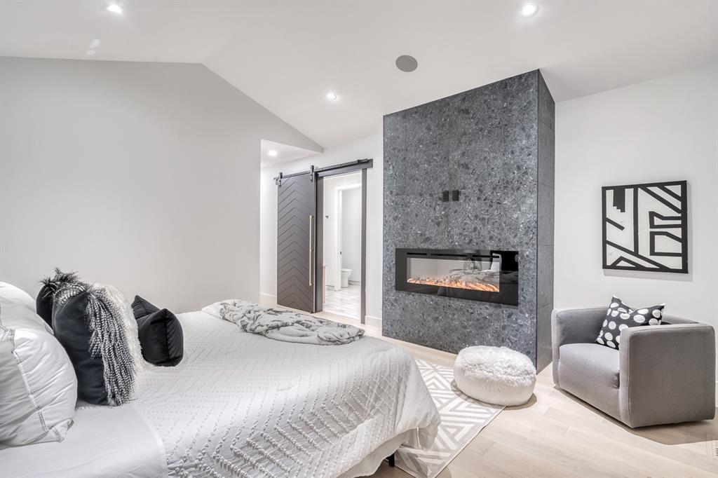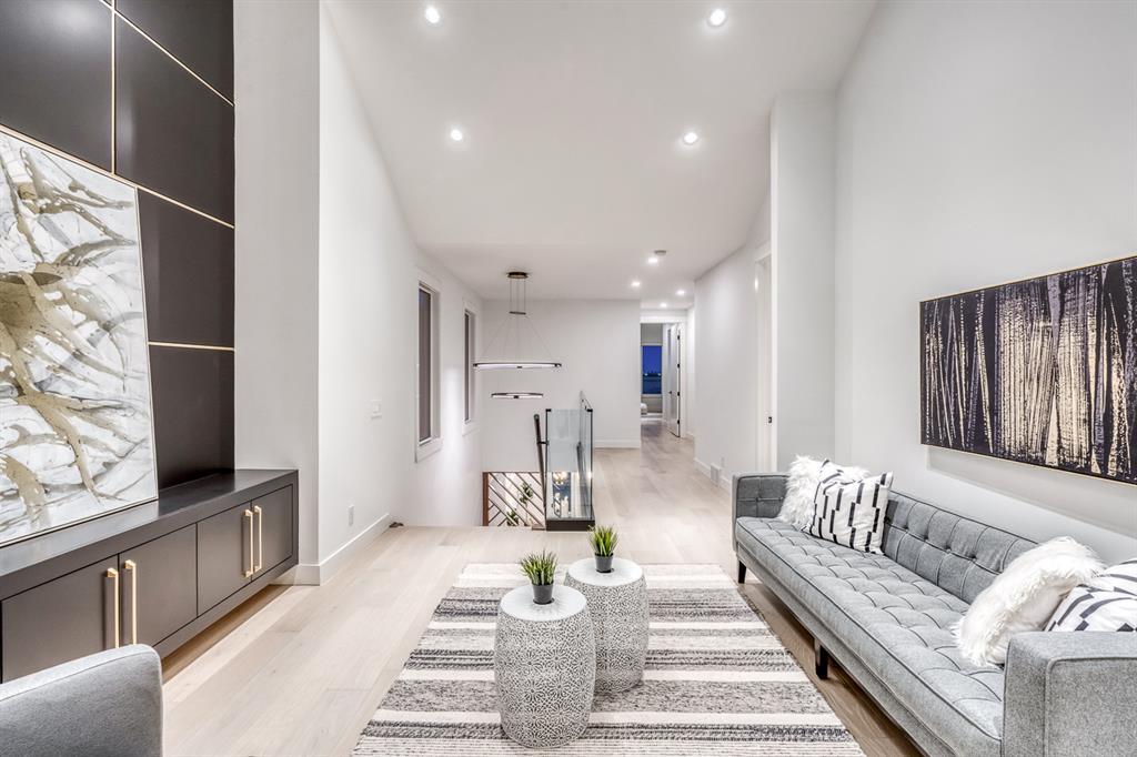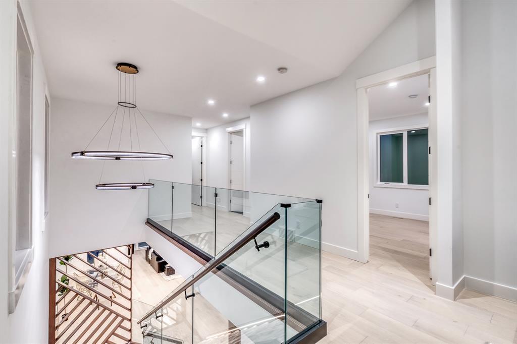 REDUCED 100K! 4 BED | 4.5 BATH | 4,253 SQFT OF DEVELOPED SPACE | This ONE OF A KIND luxury home is nestled on one of the most desirable streets in Winston Heights. This property is POWERFUL! From the sleek, moody exterior with exaggerated peaks&custom finishings and abundant upgrades throughout that are not seen in other builds will be sure to capture your attention! From the moment you walk in you are greeted by a spacious entry way with sleek built-in storage. The wide plank hardwood floors ground the modern space and flow throughout all 3 levels of the home. All the elegant features, millwork and staircases are illuminated by ambient lighting features that elevate every room. The modern open riser staircase is a focal point of the home and is set off to the side to maximize the space. The kitchen is an entertainers dream with seating for the whole family, concealed BOSCH Fridge with custom gold hardware and walkthrough pantry/coffee bar! The black glass features in the island and hoodvent create a dimension to the space not often seen. The main floor is finished off by a sleek & moody powder room, Massive mudroom with custom built-ins and storage, open dining/living/entertaining area and an expansive deck off the back of the home with 2 separate access points. The open Dining/ Breakfast nook/ dry bar area can be used for multiple uses! This floorpan truly caters to every need. As you head upstairs, you will be greeted by a bonus living/loft area with dramatic Vaulted ceilings that steal the show with a show stopping open to below feature for added visual impact. Each bedroom upstairs has a designated ensuite and walk-in closet, NO MORE SHARING! The Primary bedroom is a true oasis away from the rest of the home with gorgeous peaked ceilings, cozy gas fireplace, elegant yet modern design with a free standing soaker tub, double vanity, steam shower with built-in bench for comfort and a closed in water closet. The cozy-in floor heating combats those chilly winter mor nings for ultimate comfort. The basement is fully finished with cozy IN FLOOR HEATING, 4th bedroom and full bath as well as an entertaining/ Tv viewing area and additional finished storage/utility room with room for a Large safe. There is also a handy second laundry hookup in the basement as well, so no more hauling laundry throughout every level. The double attached garage has in floor heating to keep your vehicles warm year round, no more pre-heating your vehicle! The garage was built to allow enough room for a lift for our car enthusiasts. This home has it all! You will not find another home with the upgrades and features that are offered here, it is truly a one of a kind opportunity to live in a home that leaves a lasting impression. Contact your favourite realtor and schedule a showing today! (id:22211)