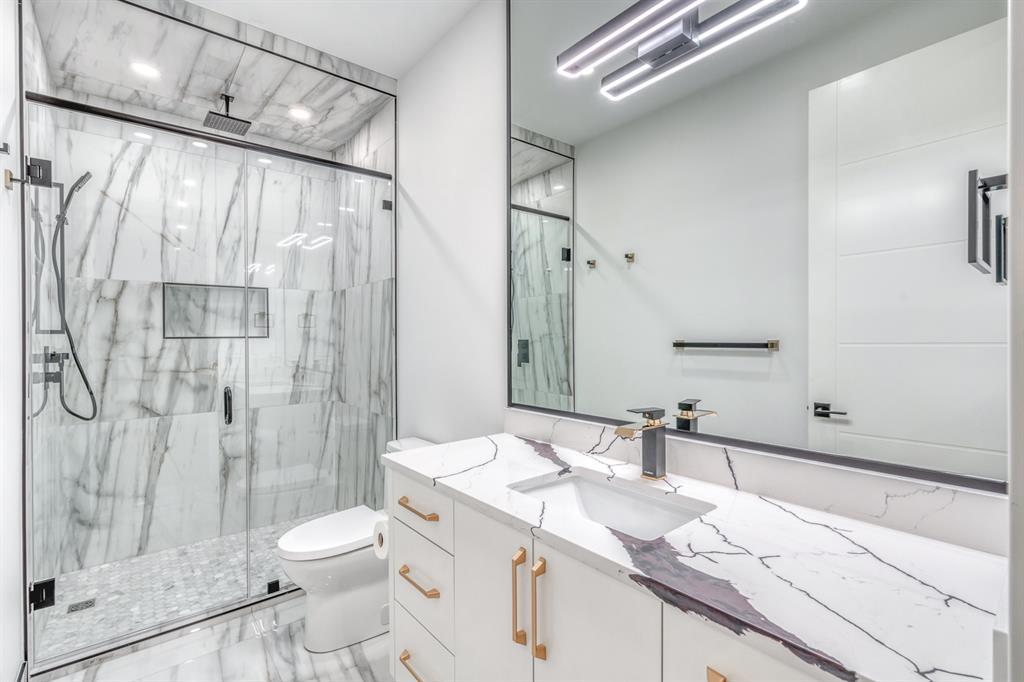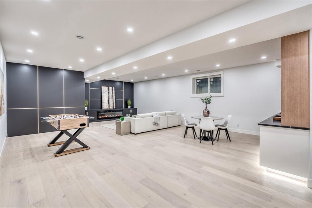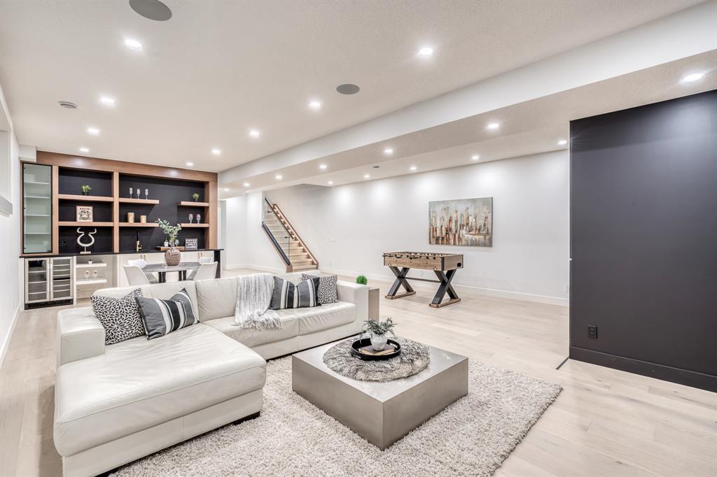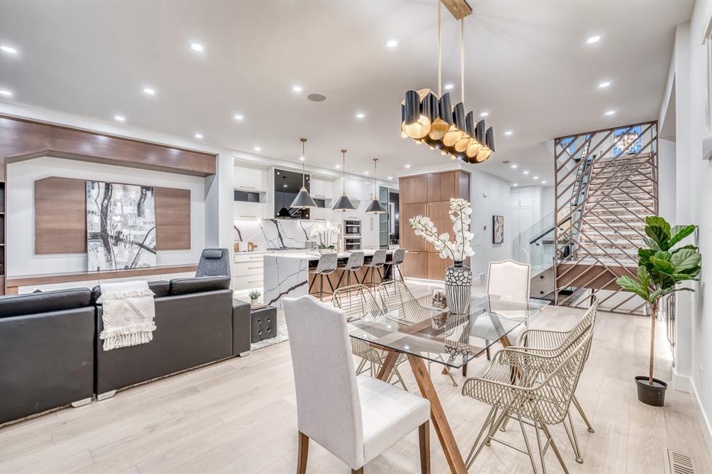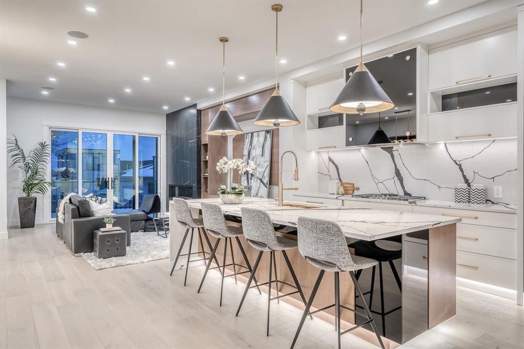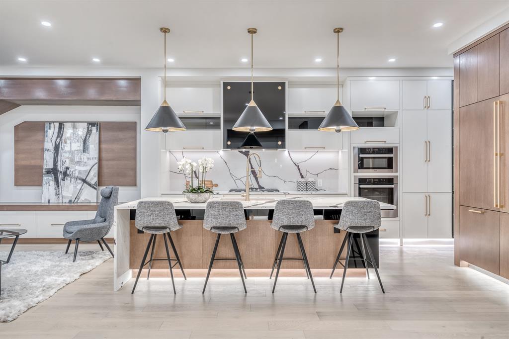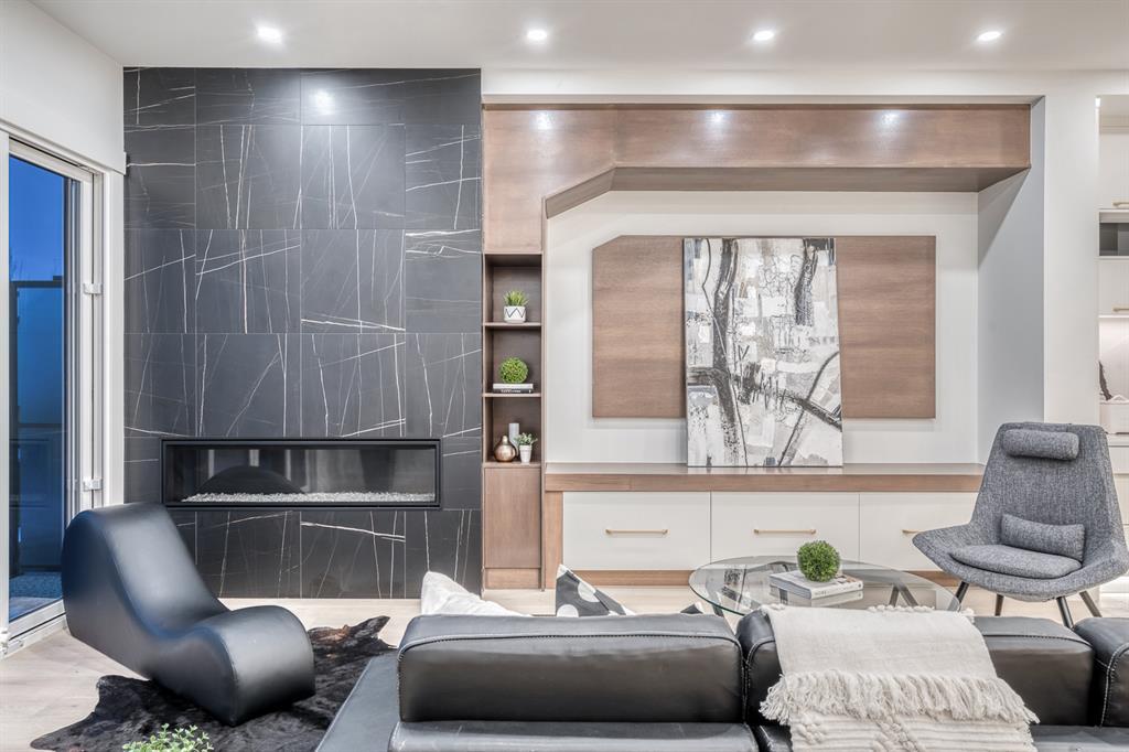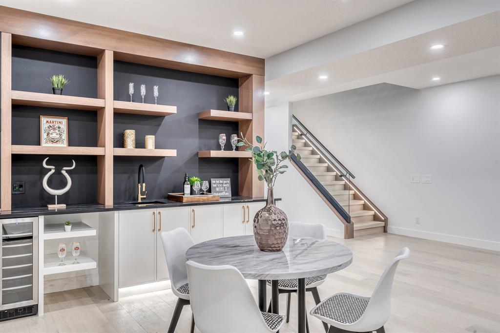 REDUCED 100K! 4 BED | 4.5 BATH | 4,253 SQFT OF DEVELOPED SPACE | This ONE OF A KIND luxury home is nestled on one of the most desirable streets in Winston Heights. This property is POWERFUL! From the sleek, moody exterior with exaggerated peaks&custom finishings and abundant upgrades throughout that are not seen in other builds will be sure to capture your attention! From the moment you walk in you are greeted by a spacious entry way with sleek built-in storage. The wide plank hardwood floors ground the modern space and flow throughout all 3 levels of the home. All the elegant features, millwork and staircases are illuminated by ambient lighting features that elevate every room. The modern open riser staircase is a focal point of the home and is set off to the side to maximize the space. The kitchen is an entertainers dream with seating for the whole family, concealed BOSCH Fridge with custom gold hardware and walkthrough pantry/coffee bar! The black glass features in the island and hoodvent create a dimension to the space not often seen. The main floor is finished off by a sleek & moody powder room, Massive mudroom with custom built-ins and storage, open dining/living/entertaining area and an expansive deck off the back of the home with 2 separate access points. The open Dining/ Breakfast nook/ dry bar area can be used for multiple uses! This floorpan truly caters to every need. As you head upstairs, you will be greeted by a bonus living/loft area with dramatic Vaulted ceilings that steal the show with a show stopping open to below feature for added visual impact. Each bedroom upstairs has a designated ensuite and walk-in closet, NO MORE SHARING! The Primary bedroom is a true oasis away from the rest of the home with gorgeous peaked ceilings, cozy gas fireplace, elegant yet modern design with a free standing soaker tub, double vanity, steam shower with built-in bench for comfort and a closed in water closet. The cozy-in floor heating combats those chilly winter mor nings for ultimate comfort. The basement is fully finished with cozy IN FLOOR HEATING, 4th bedroom and full bath as well as an entertaining/ Tv viewing area and additional finished storage/utility room with room for a Large safe. There is also a handy second laundry hookup in the basement as well, so no more hauling laundry throughout every level. The double attached garage has in floor heating to keep your vehicles warm year round, no more pre-heating your vehicle! The garage was built to allow enough room for a lift for our car enthusiasts. This home has it all! You will not find another home with the upgrades and features that are offered here, it is truly a one of a kind opportunity to live in a home that leaves a lasting impression. Contact your favourite realtor and schedule a showing today! (id:22211)