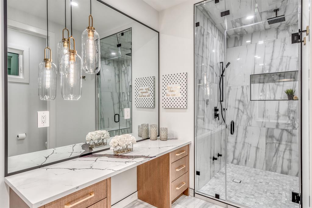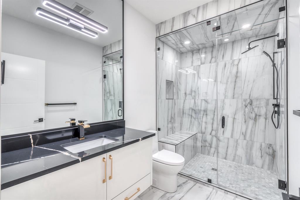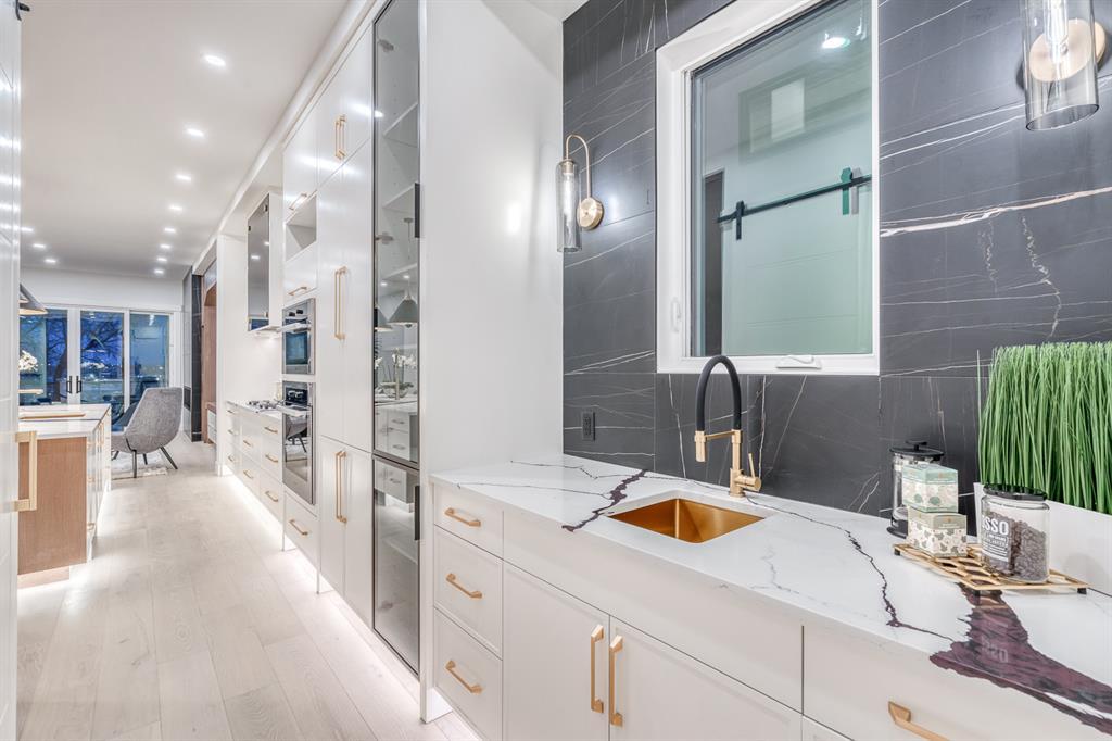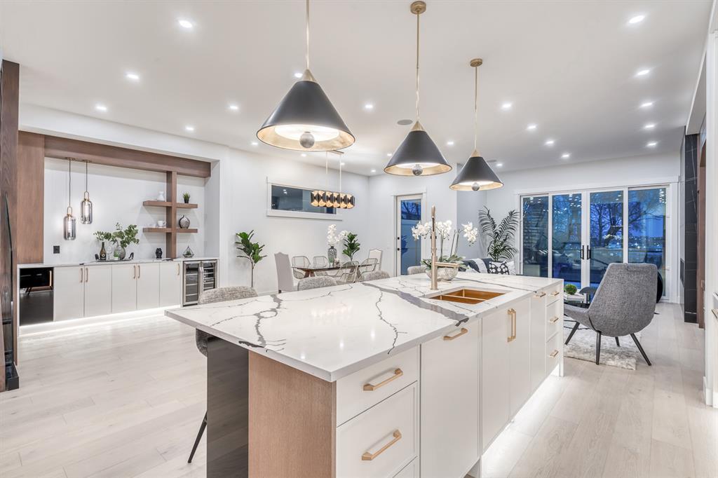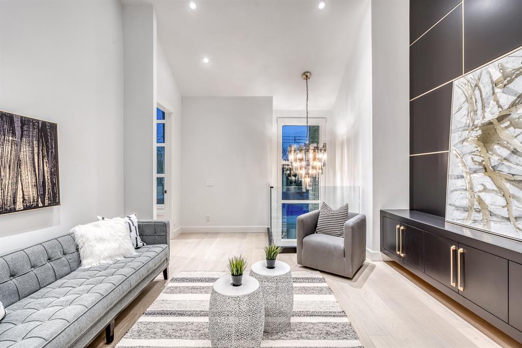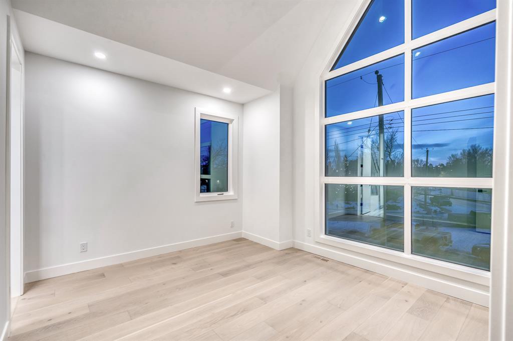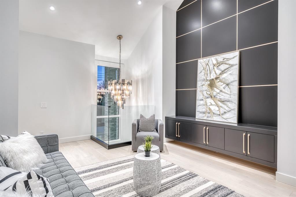 REDUCED 100K! 4 BED | 4.5 BATH | 4,253 SQFT OF DEVELOPED SPACE | This ONE OF A KIND luxury home is nestled on one of the most desirable streets in Winston Heights. This property is POWERFUL! From the sleek, moody exterior with exaggerated peaks&custom finishings and abundant upgrades throughout that are not seen in other builds will be sure to capture your attention! From the moment you walk in you are greeted by a spacious entry way with sleek built-in storage. The wide plank hardwood floors ground the modern space and flow throughout all 3 levels of the home. All the elegant features, millwork and staircases are illuminated by ambient lighting features that elevate every room. The modern open riser staircase is a focal point of the home and is set off to the side to maximize the space. The kitchen is an entertainers dream with seating for the whole family, concealed BOSCH Fridge with custom gold hardware and walkthrough pantry/coffee bar! The black glass features in the island and hoodvent create a dimension to the space not often seen. The main floor is finished off by a sleek & moody powder room, Massive mudroom with custom built-ins and storage, open dining/living/entertaining area and an expansive deck off the back of the home with 2 separate access points. The open Dining/ Breakfast nook/ dry bar area can be used for multiple uses! This floorpan truly caters to every need. As you head upstairs, you will be greeted by a bonus living/loft area with dramatic Vaulted ceilings that steal the show with a show stopping open to below feature for added visual impact. Each bedroom upstairs has a designated ensuite and walk-in closet, NO MORE SHARING! The Primary bedroom is a true oasis away from the rest of the home with gorgeous peaked ceilings, cozy gas fireplace, elegant yet modern design with a free standing soaker tub, double vanity, steam shower with built-in bench for comfort and a closed in water closet. The cozy-in floor heating combats those chilly winter mor nings for ultimate comfort. The basement is fully finished with cozy IN FLOOR HEATING, 4th bedroom and full bath as well as an entertaining/ Tv viewing area and additional finished storage/utility room with room for a Large safe. There is also a handy second laundry hookup in the basement as well, so no more hauling laundry throughout every level. The double attached garage has in floor heating to keep your vehicles warm year round, no more pre-heating your vehicle! The garage was built to allow enough room for a lift for our car enthusiasts. This home has it all! You will not find another home with the upgrades and features that are offered here, it is truly a one of a kind opportunity to live in a home that leaves a lasting impression. Contact your favourite realtor and schedule a showing today! (id:22211)