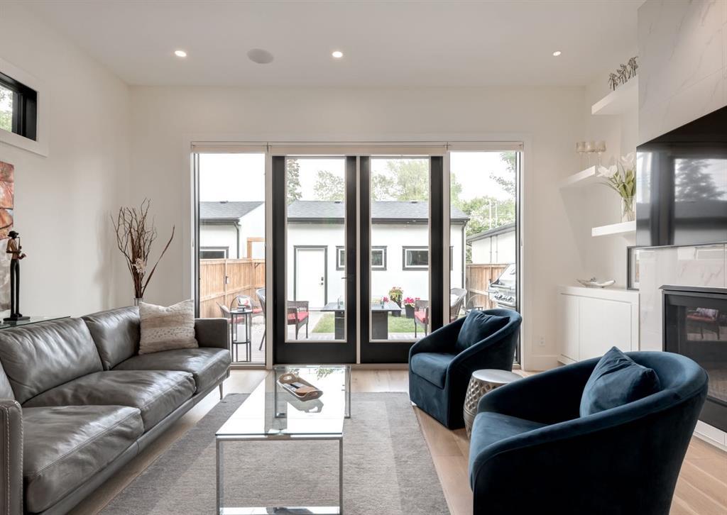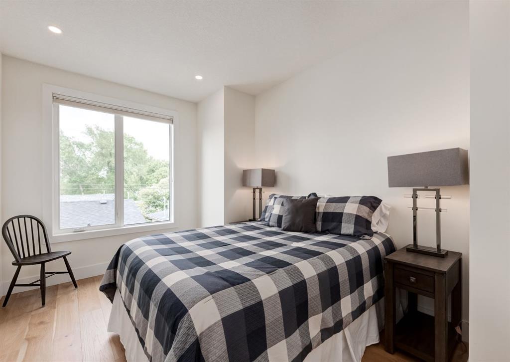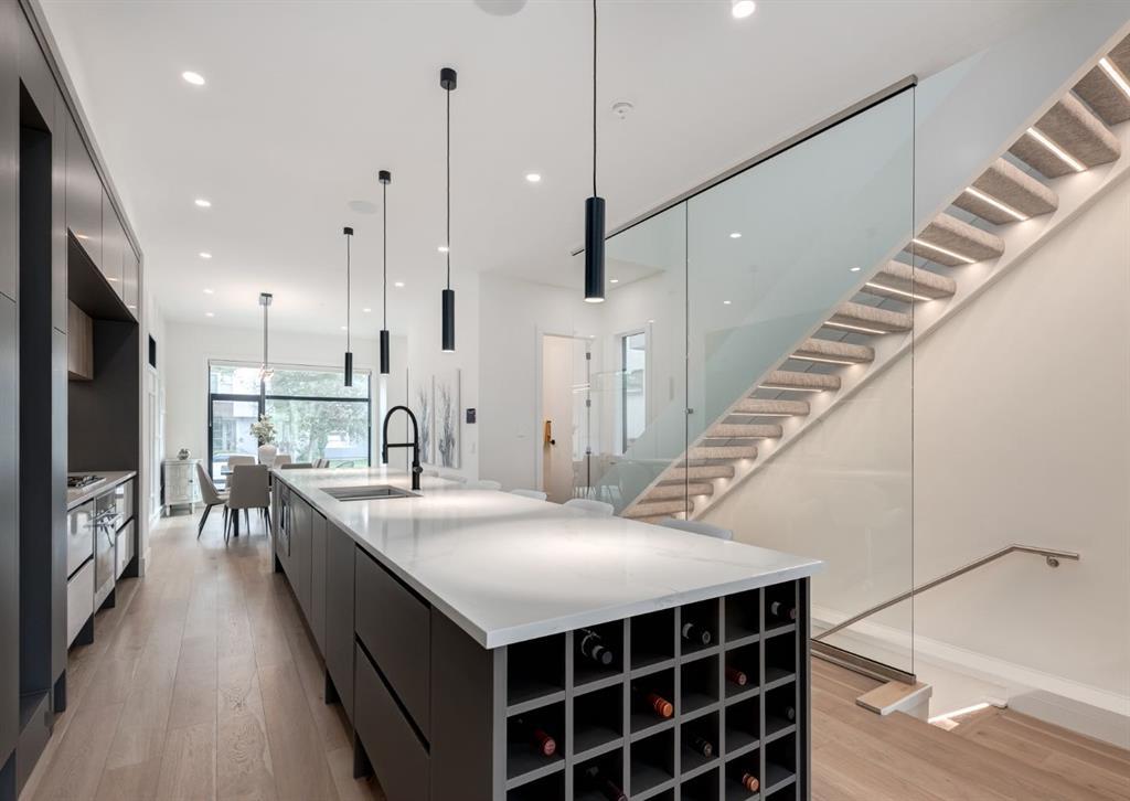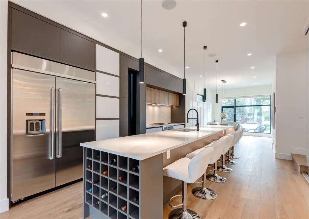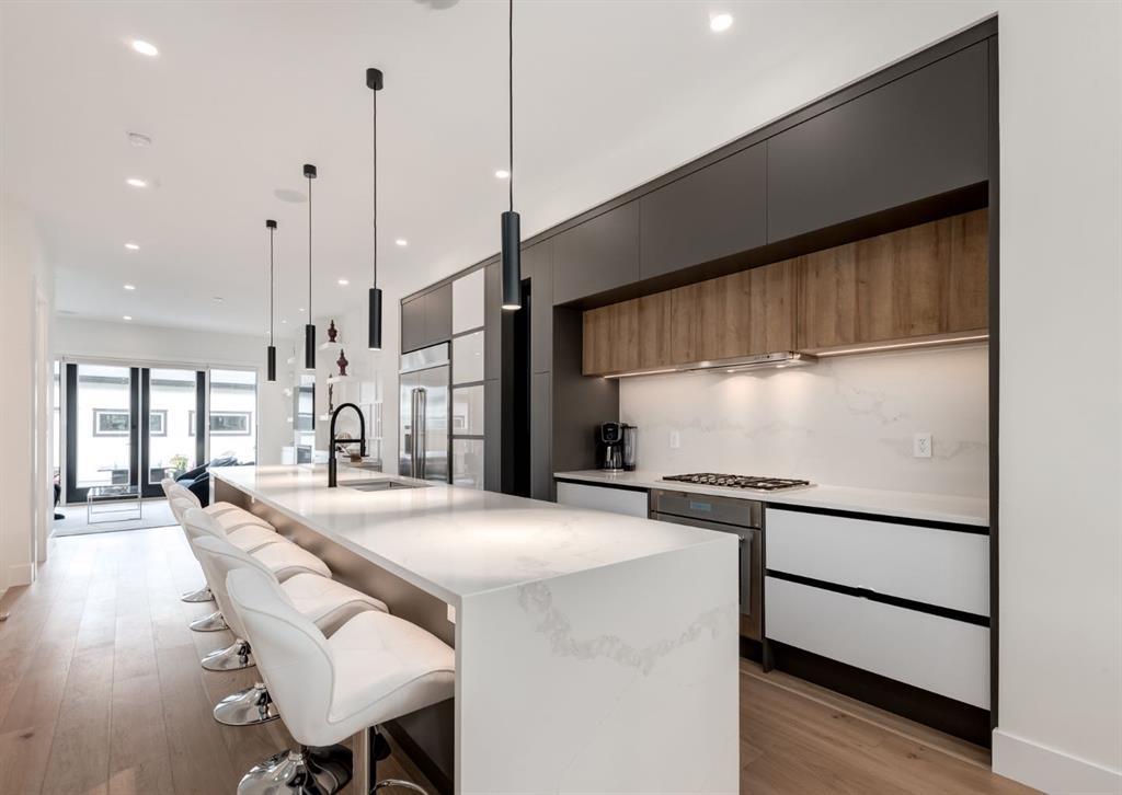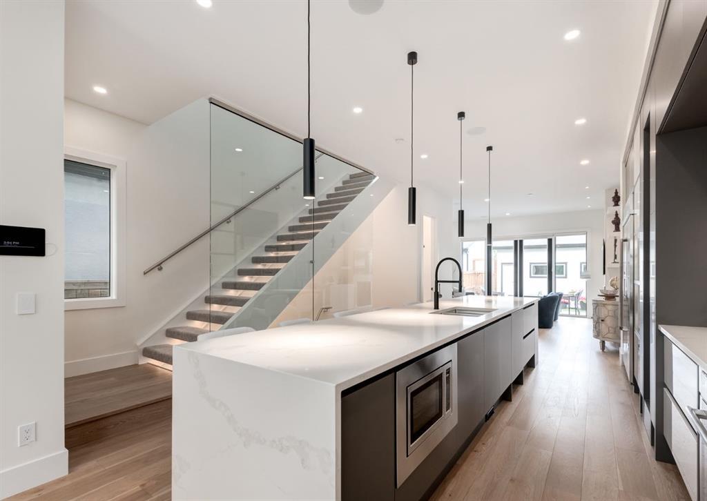Stunning luxury home in the popular community of Renfrew, right in the heart of Calgary! This property built by Libra Homes offers over 2800 square feet of living space, and is the perfect combination of modern, luxury and comfort. Featuring 4 bedrooms, 3.5 baths with an incredible SMART home system, including temperature control, sound system, security and alarm. The home has been designed with exquisite detail, including many feature walls and custom mill work throughout. The main level boasts an open floor plan with 10 foot ceilings and gorgeous engineered hardwood floors. The large Lux windows allow for an impressive sun-filled entry complimented by the modern glass feature wall. The stunning kitchen is the heart of the home and guaranteed to wow anyone who enters! Features include premium stainless steel appliances, quartz countertops, and a stunning oversize 16ft island with wine storage. This home is an entertainer’s dream! Moving into the living room, you have a second custom feature wall, fireplace and French doors leading you to the back yard and spacious deck. On the second floor you will find the master retreat showcasing the views of downtown Calgary, vaulted ceilings and walk in closet. The ensuite bathroom features in floor heating, soaker tub and a luxury steam shower complete with quartz bench, body jets and dual shower heads. Upstairs you will find two more generous size bedrooms, full bath, and laundry room with sink. Walking down your beautiful lit stairs to the lower level, you are greeted with the perfect family entertainment room, complete with wet bar and fridge. Combined with a fourth bedroom, full bath and storage to complete this stunning home. The basement has been roughed in for surround sound and in floor heating. Located just minutes from downtown Calgary, with all the surrounding amenities, schools and parks, this is the perfect opportunity for Luxury living in Calgary! Call your realtor today and be one if the first to view this amaz ing home! (id:22211)
