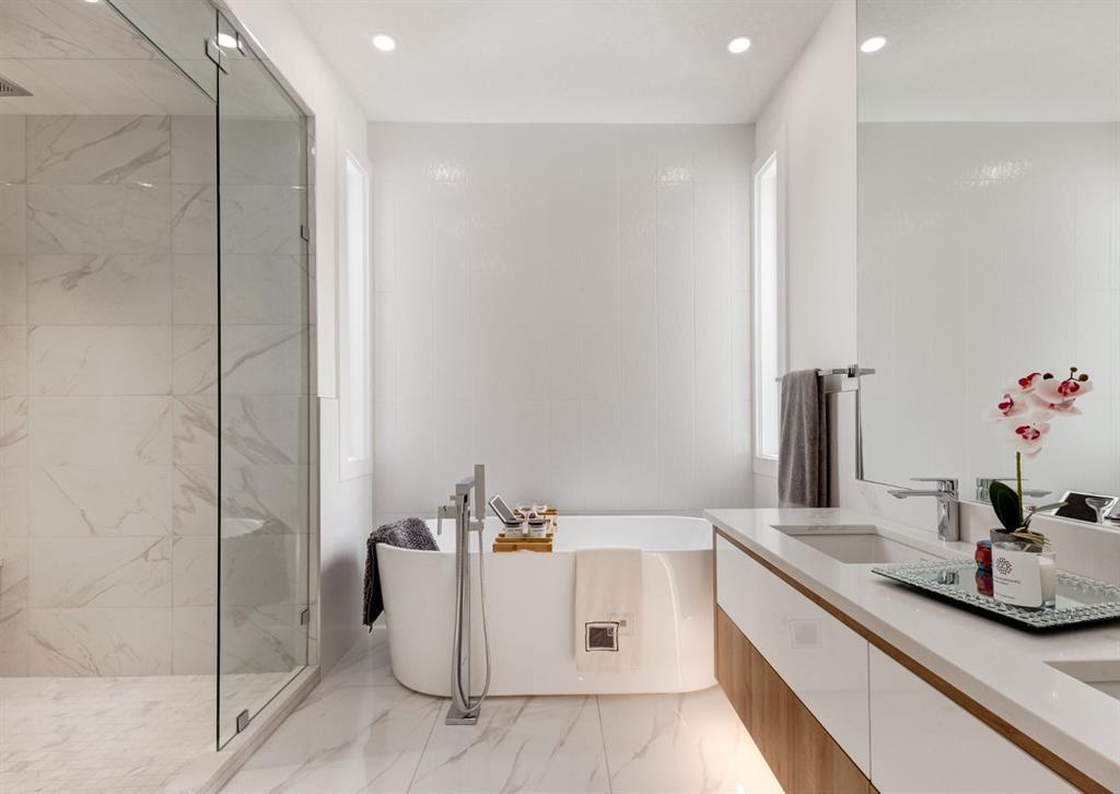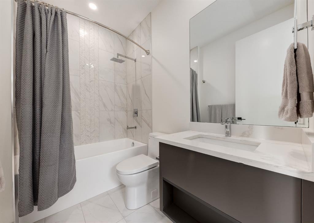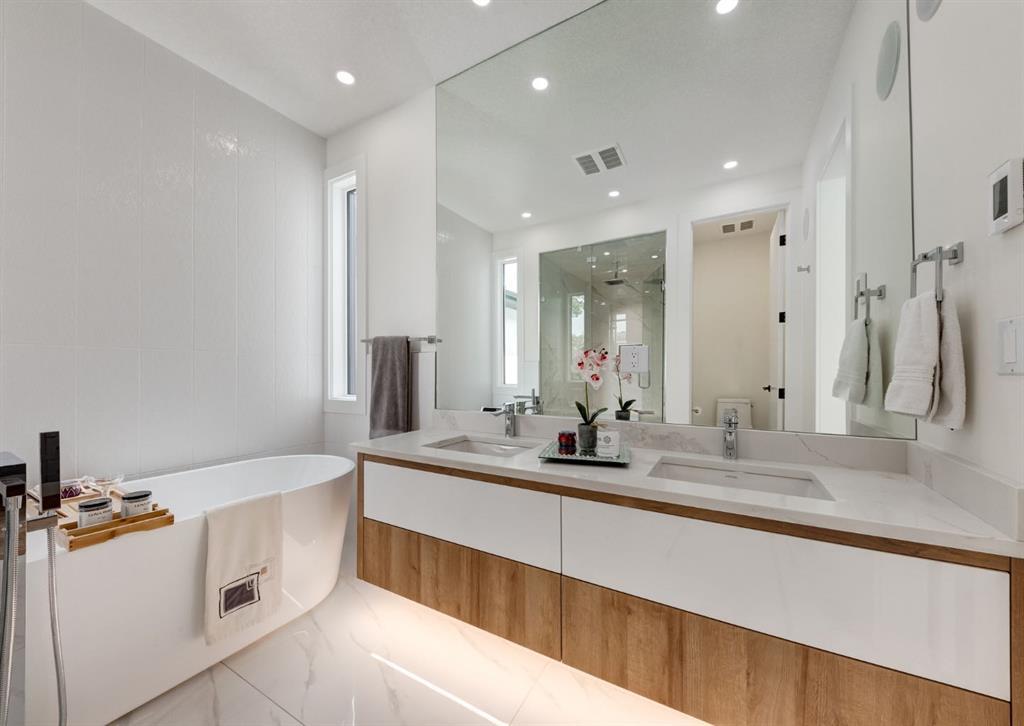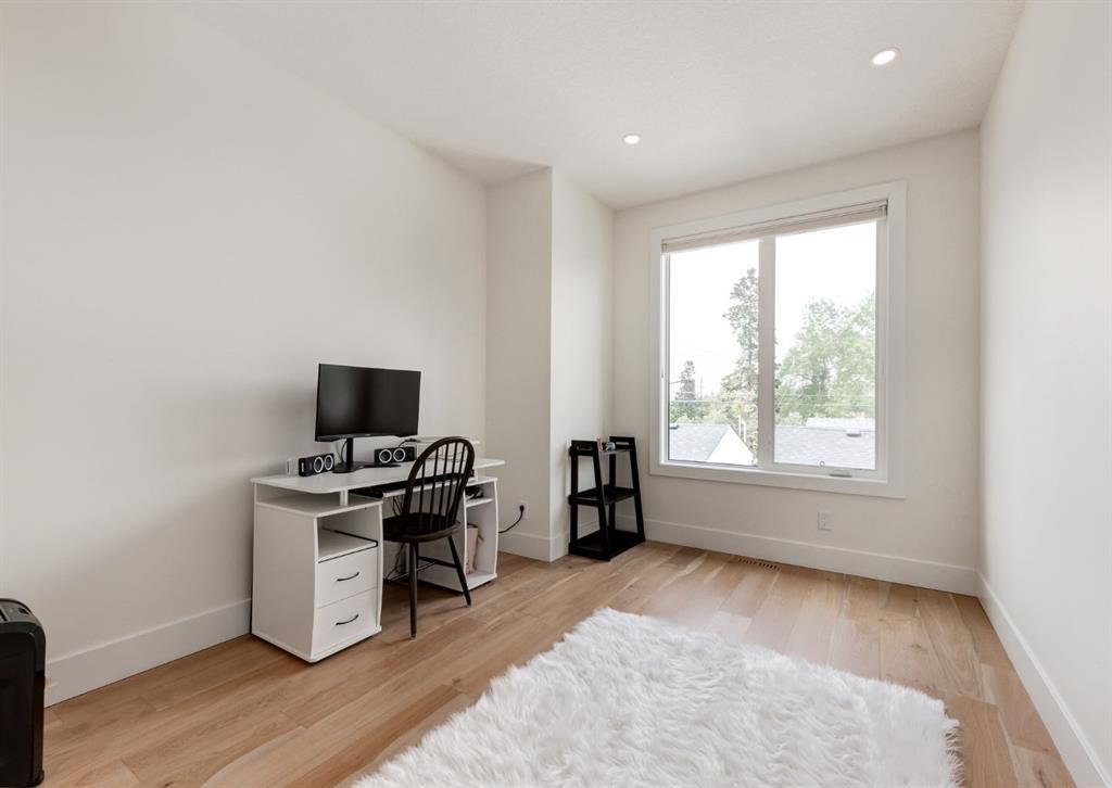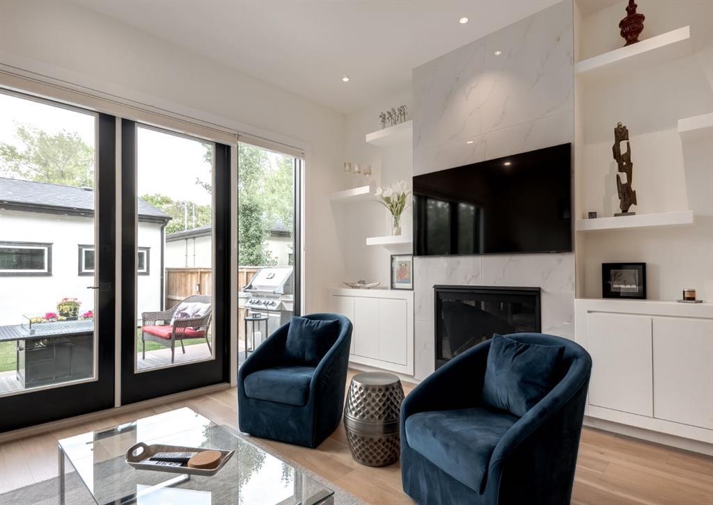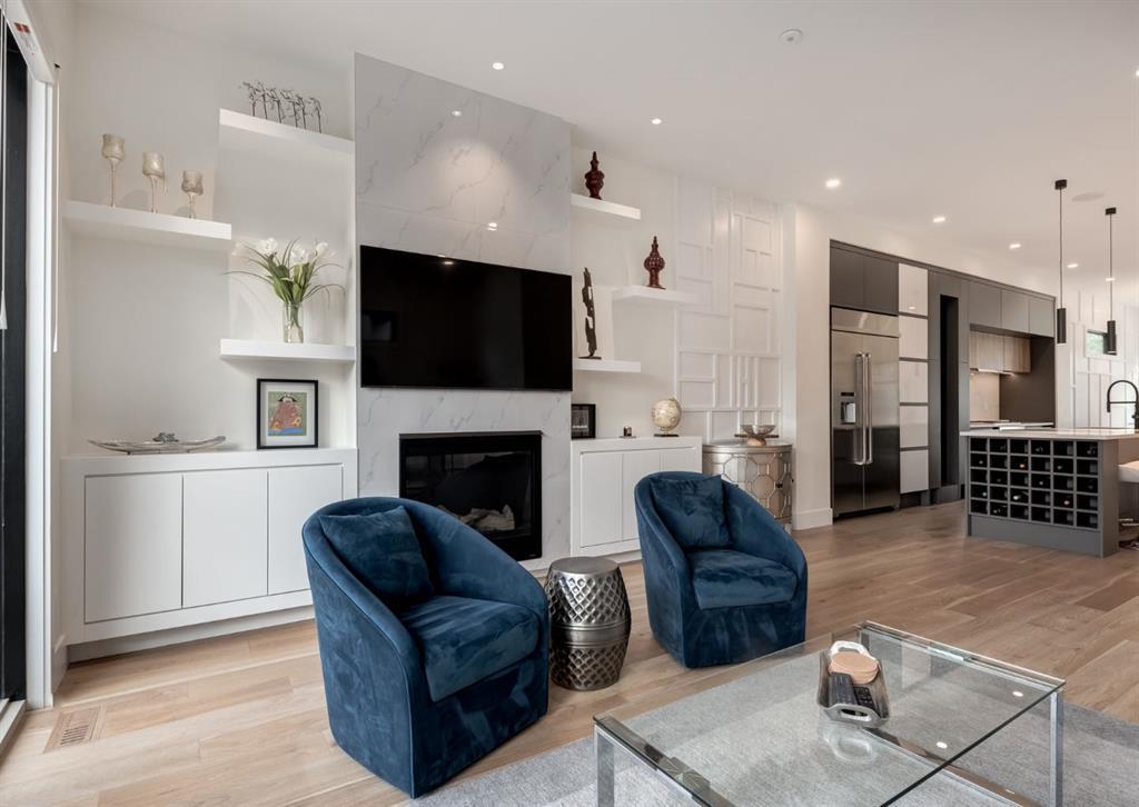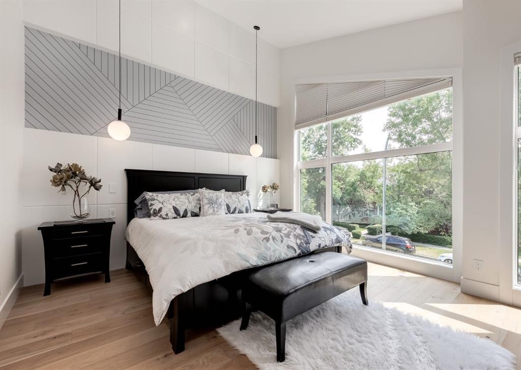 Stunning luxury home in the popular community of Renfrew, right in the heart of Calgary! This property built by Libra Homes offers over 2800 square feet of living space, and is the perfect combination of modern, luxury and comfort. Featuring 4 bedrooms, 3.5 baths with an incredible SMART home system, including temperature control, sound system, security and alarm. The home has been designed with exquisite detail, including many feature walls and custom mill work throughout. The main level boasts an open floor plan with 10 foot ceilings and gorgeous engineered hardwood floors. The large Lux windows allow for an impressive sun-filled entry complimented by the modern glass feature wall. The stunning kitchen is the heart of the home and guaranteed to wow anyone who enters! Features include premium stainless steel appliances, quartz countertops, and a stunning oversize 16ft island with wine storage. This home is an entertainer’s dream! Moving into the living room, you have a second custom feature wall, fireplace and French doors leading you to the back yard and spacious deck. On the second floor you will find the master retreat showcasing the views of downtown Calgary, vaulted ceilings and walk in closet. The ensuite bathroom features in floor heating, soaker tub and a luxury steam shower complete with quartz bench, body jets and dual shower heads. Upstairs you will find two more generous size bedrooms, full bath, and laundry room with sink. Walking down your beautiful lit stairs to the lower level, you are greeted with the perfect family entertainment room, complete with wet bar and fridge. Combined with a fourth bedroom, full bath and storage to complete this stunning home. The basement has been roughed in for surround sound and in floor heating. Located just minutes from downtown Calgary, with all the surrounding amenities, schools and parks, this is the perfect opportunity for Luxury living in Calgary! Call your realtor today and be one if the first to view this amaz ing home! (id:22211)