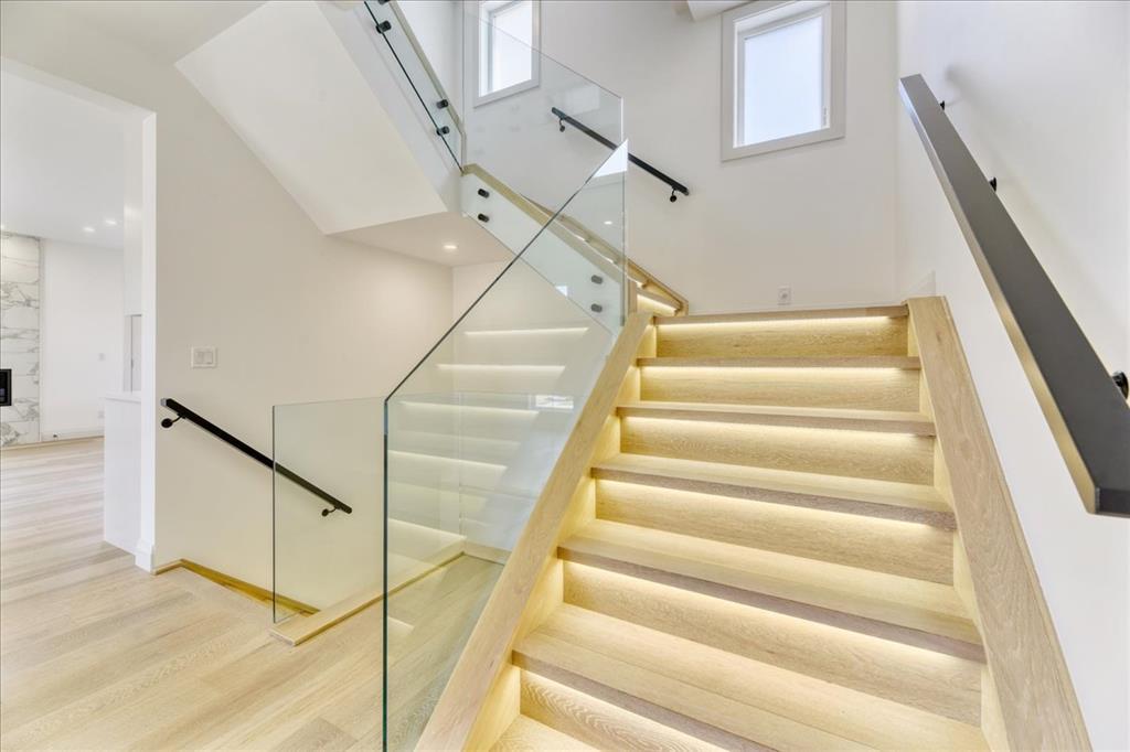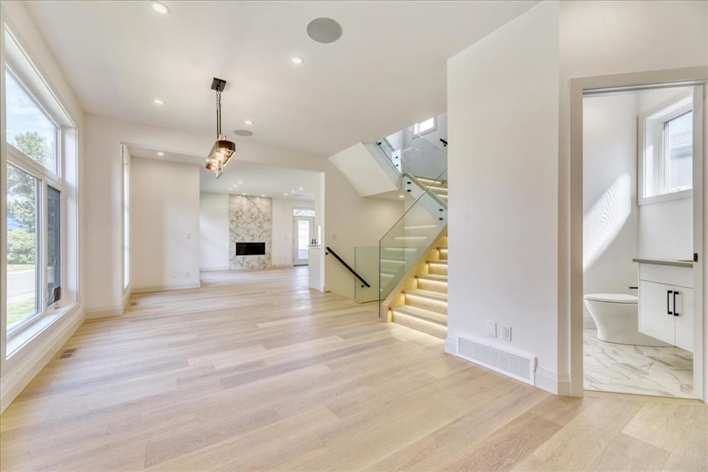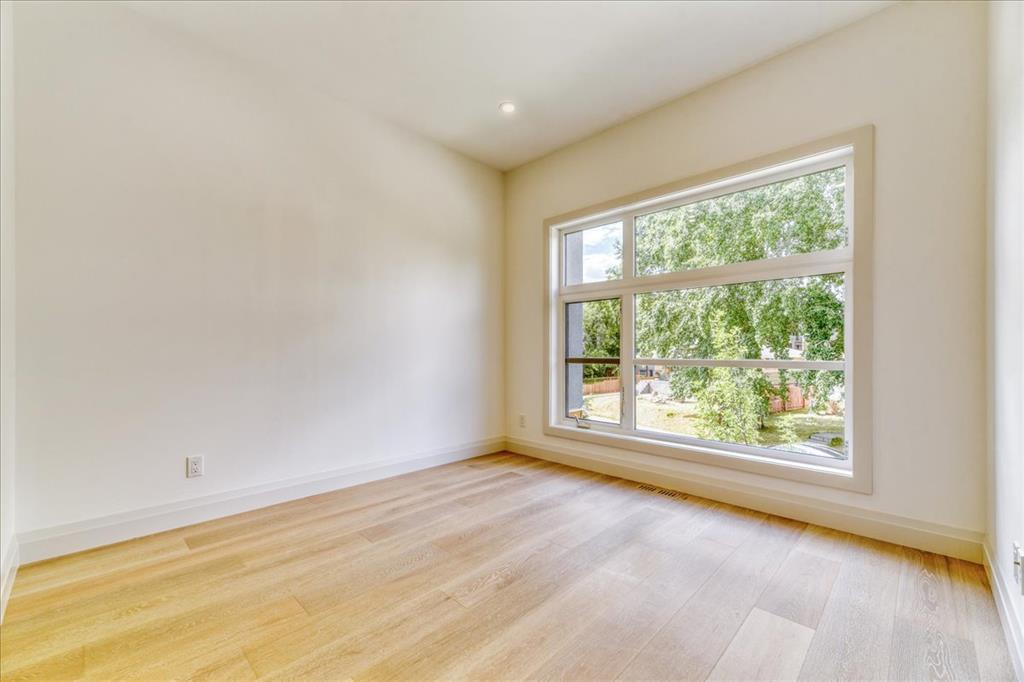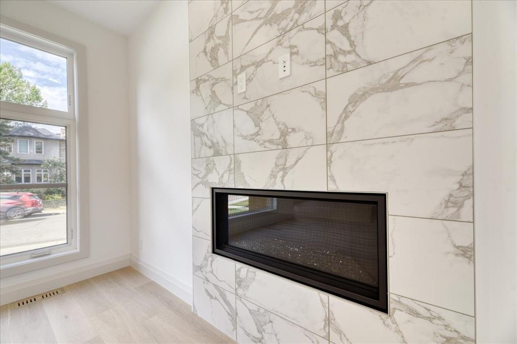 Welcome to the Parkdale5, a brand new, custom built development built by Goldmark Homes! This unit features over 2,089 sq. ft of living space on 4 levels & a total of 3 bedrooms. This is the largest unit of the development featuring an open and bright main floor plan with 9ft ceilings allowing ample natural light through the large, double pane windows, large principal rooms including a living room with gas fireplace & access to the side yard, backyard and double detached garage, gourmet kitchen with stainless steel appliance package, quartz countertops and custom cabinetry including soft close doors and drawers. Open dining area with ample space for large family gatherings. Additionally, there is a 2 piece main bath. The upper level with plush, luxurious carpet showcases 2 spacious bedrooms including the master suite with an oversized walk-in closet and 4 piece ensuite, full sized laundry room with a folding table, ample storage and sink, and 4 piece guest bath with deep soaker tub. The possibilities with the third loft are endless – it could be used as a home office, family room or even an additional bedroom with a private balcony, The fully developed lower level with 9ft ceilings includes a large recreation room with bar area, 2 piece guest bath plus ample storage space. Additional features include; private, fenced rear and side yard with garage access, engineered hardwood flooring, Ultra low VOC super plush carpet, Hepa air filter system, High efficiency furnace and 80 gallon hot water tank with a 5 year home builder warranty. Conveniently located less than a block to the Bow River pathway system - perfect for outdoor activities like walking, jogging, biking and rollerblading, a short walk to the Foothills Hospital, excellent schools, shopping and just a short commute to the core. This is a self managed complex, no condo or HOA fees. (id:22211)