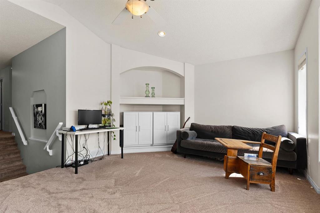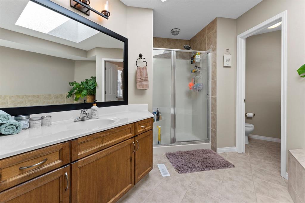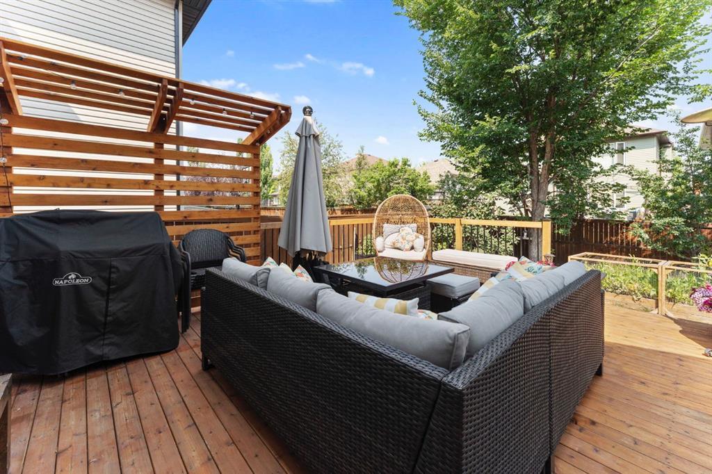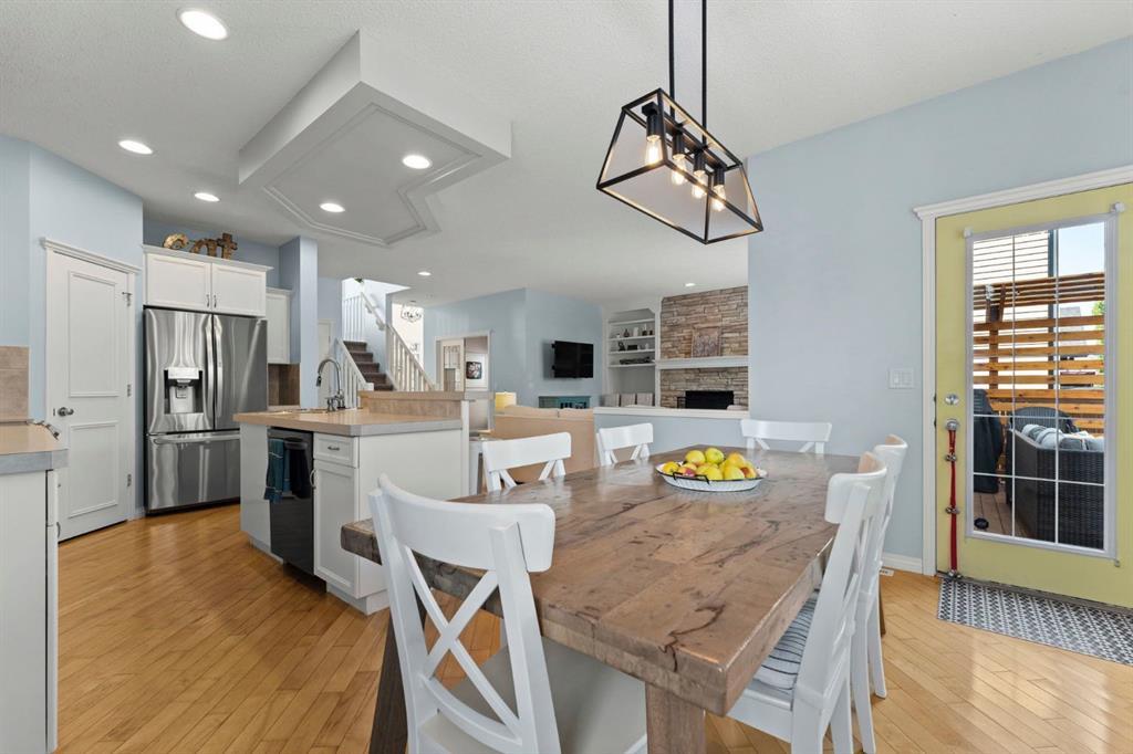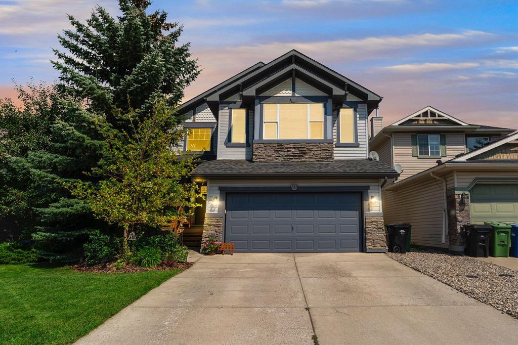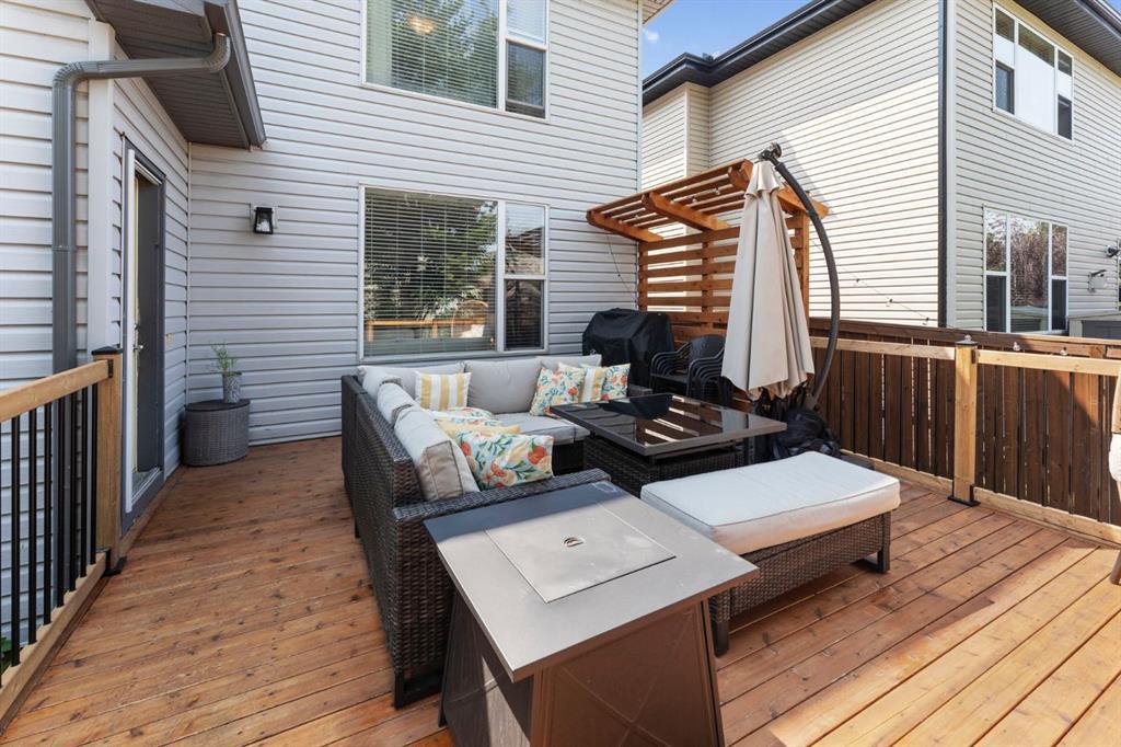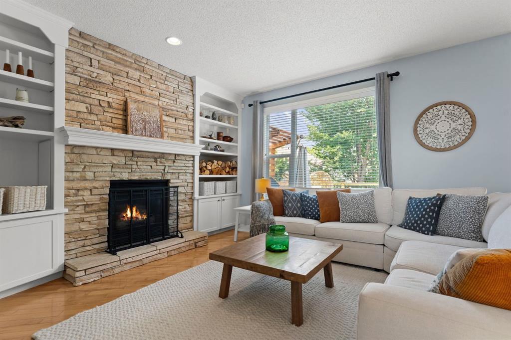 Step inside and experience the brightness and openness of the floor plan, enhanced by gleaming hardwood floors that exude elegance. The centerpiece of the living area is a captivating stone-faced natural gas fireplace with a custom built-in, creating a cozy and inviting atmosphere. On the main floor, you'll find a convenient den, perfect for a home office or study space. The large kitchen overlooks the room, ensuring that cooking and entertaining blend seamlessly. Adjacent to the kitchen, an eat-in nook leads to a deck and a fully landscaped, fenced yard, providing a delightful outdoor retreat. As you ascend to the upper level, a huge bonus room awaits, boasting vaulted ceilings and a charming window seat. The deluxe master ensuite, complete with a skylight, offers a luxurious sanctuary for relaxation. This home comes equipped with air conditioning and an irrigation system, adding convenience and comfort to your lifestyle. The front porch adds a touch of charm to the facade, welcoming you home each day. Additionally, the basement offers an additional bedroom and cozy living space providing a perfect place to relax. Located in a wonderful lake community, this property is ideal for families seeking a great place to call home. Don't miss the chance to make this beautiful dwelling your own! (id:22211)