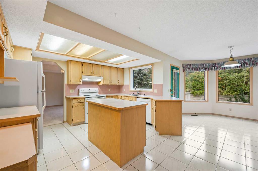 Prime opportunity to own in one of the most sought after areas of Edgemont! Rarely do homes come up in this prestigious EdgeValley area. This large 4 bedroom family home sits on a quiet cul-de-sac on a large lot backing onto greenspace and walking trails. Featuring over 2450 sq ft above grade this home is waiting for its new family to make it their own. As you enter the property you are welcomed by the grand foyer with soaring open ceilings and tile flooring. To your left is the spacious formal living room with a bay window letting in tons of natural light. Which steps up to the formal dining area with a hutch inset. Good sized kitchen with plenty of cabinetry and counter space with the center island. Open to the breakfast nook with big bright windows and garden door out to the deck. Huge family room with custom built-ins and cozy wood burning fireplace with log lighter. A 2-piece powder room and laundry with sink complete the main floor. Head upstairs to the huge master suite with double “his and her” closets and ensuite bathroom with jetted tub and separate shower. This floorplan is perfect for a larger family with another three good sized bedrooms and another full 4-piece bathroom. The basement is awaiting your design to make the perfect man cave, recreation area or additional bedrooms and bathroom. Beautiful backyard with big trees and mature landscaping with steps out the back to the peaceful greenspace and endless walking trails through the ravine. Other upgrades include newer roof, some newer windows, and newer hot water tank. All located within blocks to bus stop and highly rated schools. And close proximity to Nose Hill Park and Edgemont Ravine. Surrounded by greenspaces, parks, community center and quick access to main roads and out to the mountains. Located on a quiet street with great neighbors, don’t miss out on this opportunity! (id:22211)