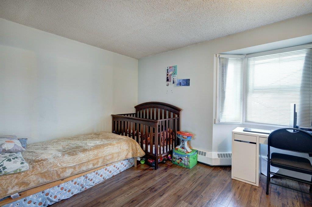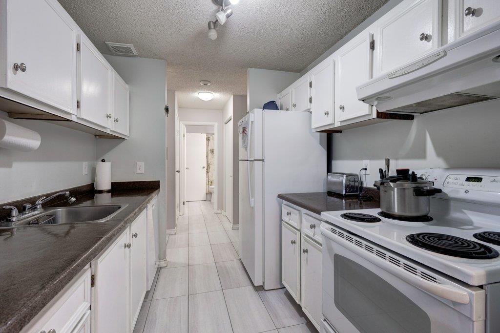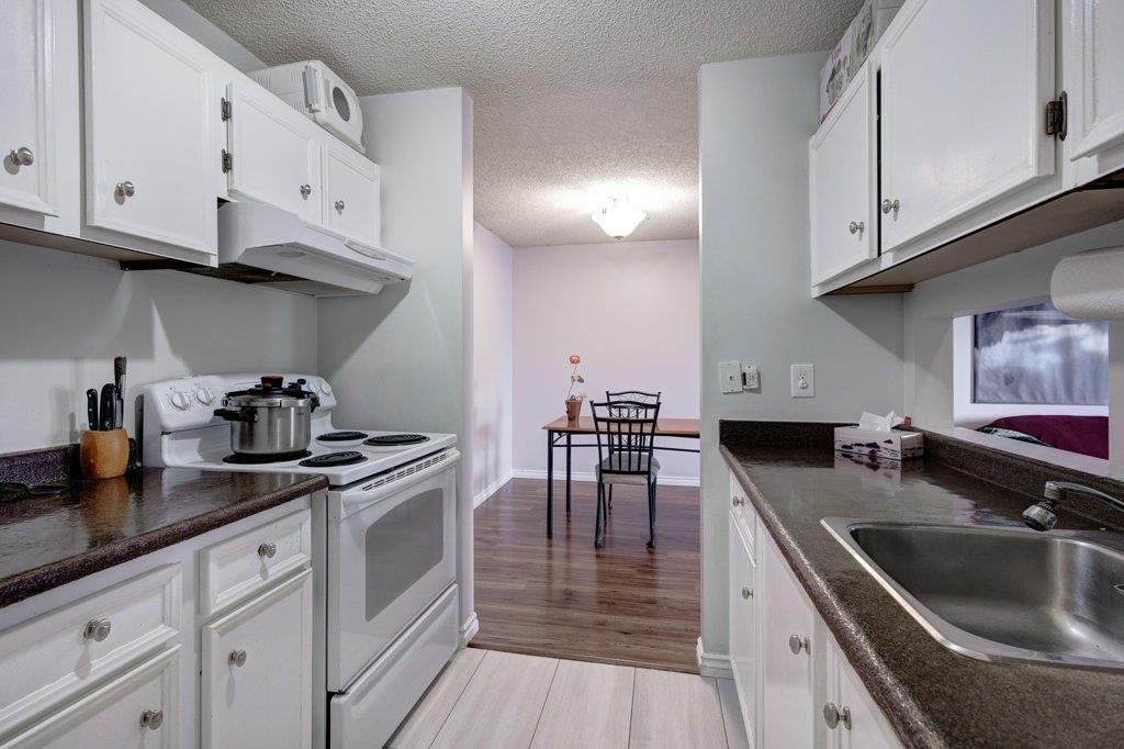 This lovingly maintained top floor corner unit in Sandhurst Village has broad appeal for your stylistic vision. Highlights include ceramic and laminate flooring, bright white kitchen, spacious in suite storage, and balcony with gorgeous east exposure with views. You will notice that both bedrooms feature charming bay windows, adding additional dimension to each space. The large master boasts a convenient walk through closet and access to an ensuite with a cheater door to the hall/main living area. The recent renovations include a redone bathtub, replaced toilet and a dishwasher. The building itself is also experiencing a facelift, with newer windows and doors, as well as updated siding. The building offers a gym, a massive laundry room, a covered parking stall and plenty of visitor parking. The complex itself is steps away from the 45th st. LRT station, Shaganappi golf course and Westbrook mall. Take advantage of living in the Westgate community, where you can easily access parts of Calgary’s nature scene in Edworthy Park and Strathcona’s off-leash paths. (id:22211)