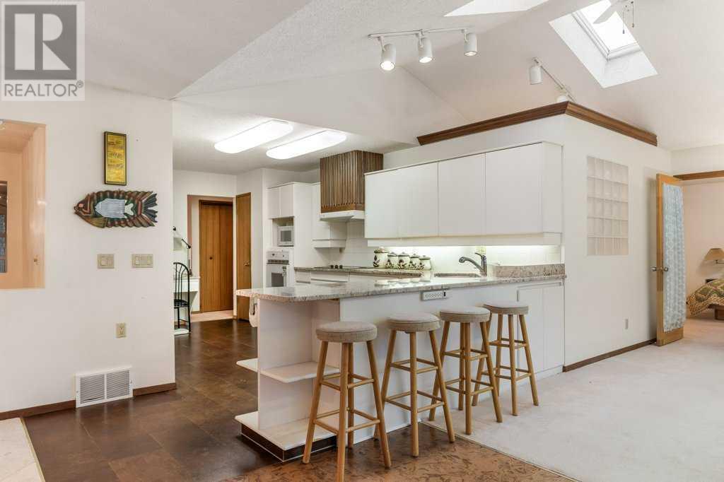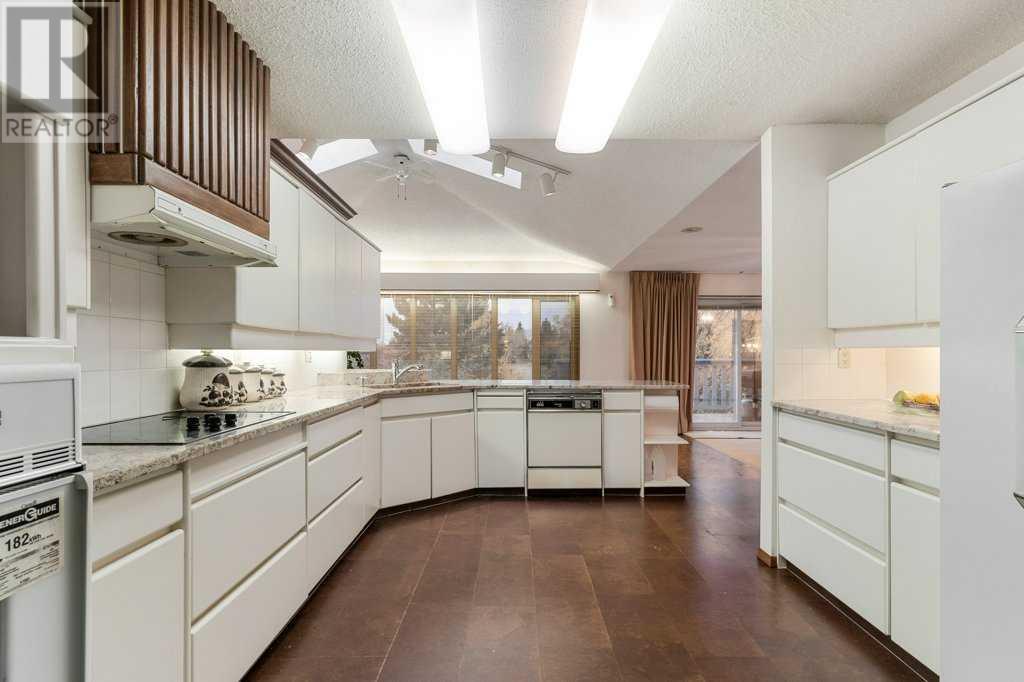 Unique bi-level, ready for your personal touch located in the desirable established community of Silver Springs NW! Extensive addition done to home by original owner, offers you additional space and an extra-large footprint. Enter in to the large airy front foyer, and head upstairs to the spacious living room with a wood-burning fireplace. Make your way through the formal dining room, in to the rear family room with sliding glass doors out to the raised deck. The kitchen features granite counter tops, loads of cupboard and counter space, a corner pantry, wall oven, electric cooktop, fridge and dishwasher. Finishing off the upper level is 3 bedrooms and 2 full bathrooms, including the incredible Primary bedroom which features an en-suite bathroom and a huge dressing room style closet with 2 full walls of closet space. The second bathroom upstairs features a handi-cap accessible walk-in shower. In the basement you will find a recreation room with a second wood-burning fireplace, 2 bedrooms, 2 full bathrooms, a kitchenette and an office/workshop off of the garage. Also in the basement is the laundry, and 2 separate entry doors to the back yard. The fully fenced yard is landscaped and level, with a parking pad off of the back lane for additional vehicles or smaller trailer. The oversized driveway leads to the attached double garage, to offer plenty of parking! Solar Panels are installed to offer efficiency (small monthly payment required). This home offers loads of square footage and is waiting for your upgrades and personal touch to make this awesome property in to YOUR dream home! (id:22211)