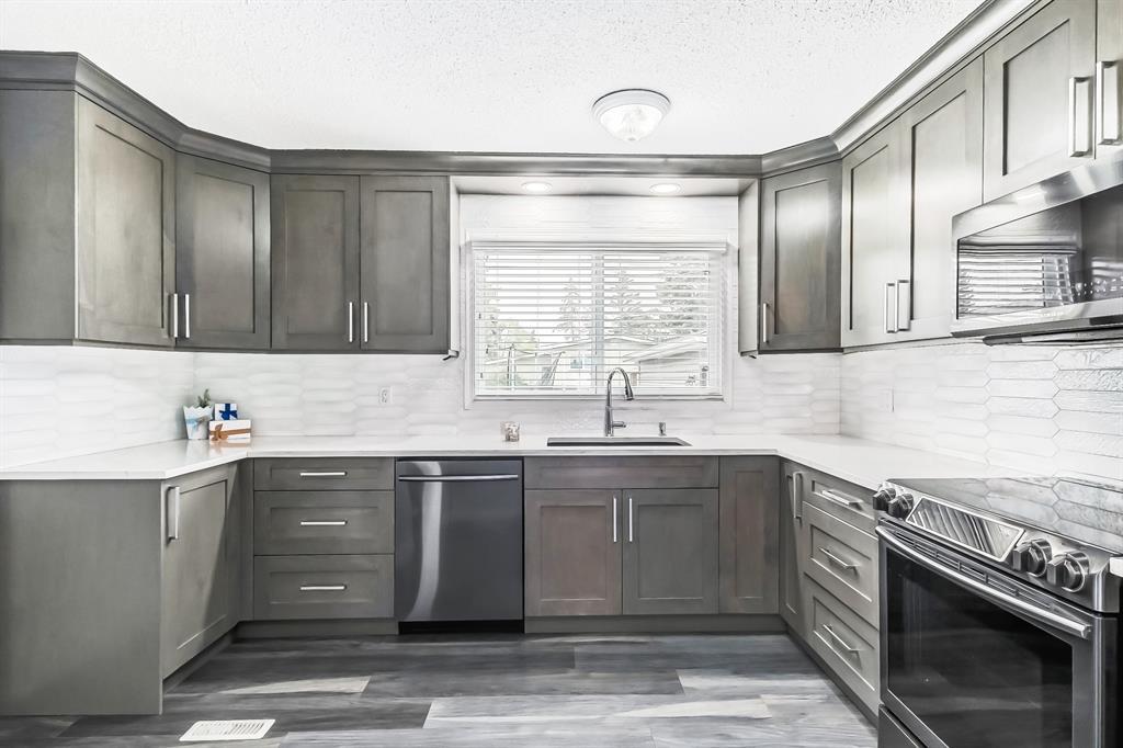 All you need to do is pack up and move right in! This fully updated home is move in ready. From outside, appreciate the hardie board siding and stone work in the front, with vinyl siding going around the rest of the home and double garage out back! Head on in and you are welcomed by a large living room and dining area. Make your way to the newly updated kitchen with quartz counters and soft close cabinets and drawers. Down the hall you will find a large 4 piece bathroom as well as 2 very good sized bedrooms. And to wrap up the main floor, is the primary bedroom, with a lovely custom built closet and 2 piece ensuite. Head on down to the basement suite (illegal) where you will find a bedroom and den (can be used a bedroom), large living room, kitchen and another 4 piece bathroom. Wrap up the basement with a storage room and an absolutely massive laundry/mechanical room! Newer windows, as well as a newer roof, this home is perfect for anyone that does not want to do any work! Enjoy summer nights in the large backyard, with a concrete patio, grass area and a double detached garage! Close to schools, shopping, restaurants and main roads, this home is located perfectly for anyone on the go. (id:22211)