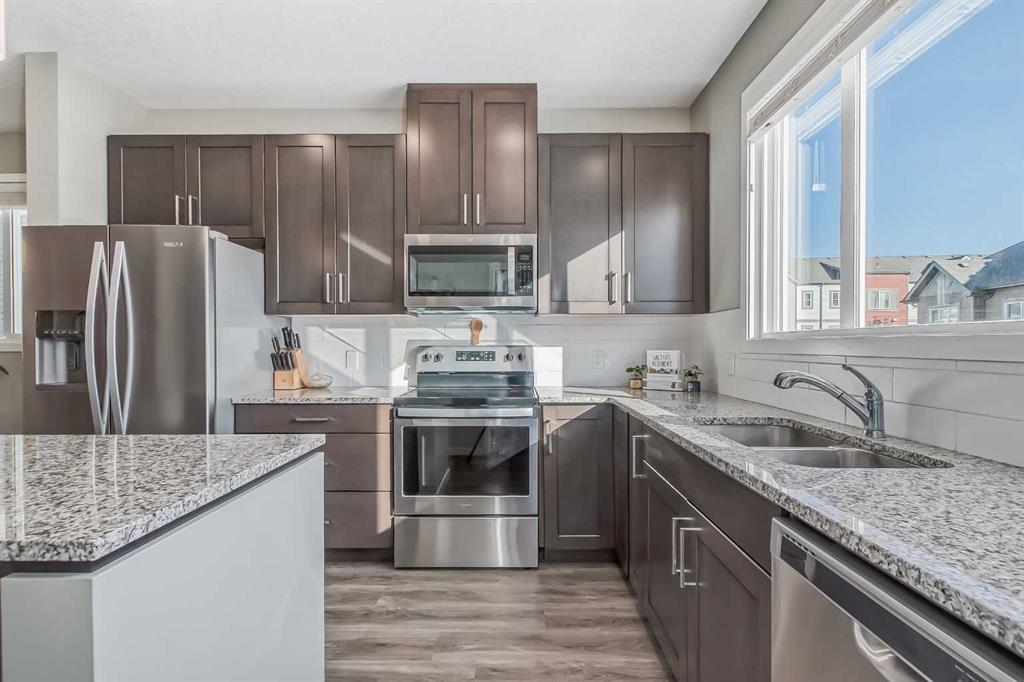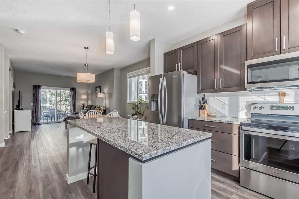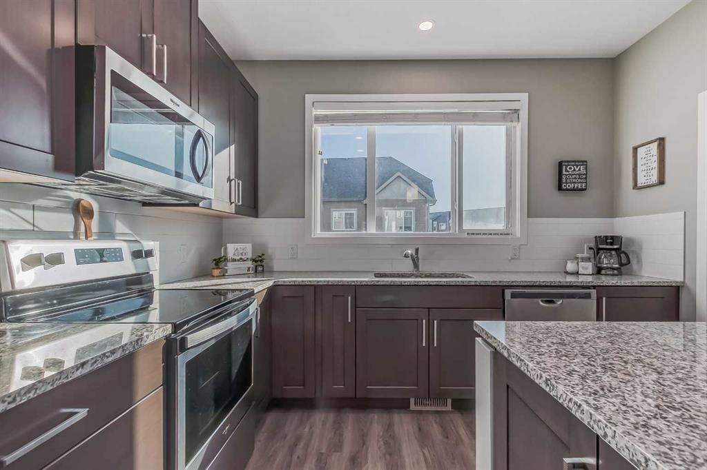 Welcome to this immaculate end unit townhome in Copperstone Villas! The wonderful main floor features a modern floor plan with 9’ ceilings, an abundance of natural light, half bathroom, and main floor office! The L-shaped kitchen has a generous walk-in pantry, tons of storage, and large kitchen island with seating for two. Upstairs you will find 2 spacious master bedrooms with full baths and large walk-in closets, as well as upstairs laundry! Upgrades include luxury vinyl plank flooring installed in 2022, 42” kitchen cabinets, granite countertops, and upgraded carpet underlay. Enjoy your outdoor space with both a ground floor patio and a balcony off the main living area which has a natural gas hook up for your BBQ. Parking for 2 is available with plenty of room in the driveway in front of the single garage. This stunning home is located close to schools, walking paths, a large greenspace with playground, shopping, and more! Come see for yourself what this beautiful end unit has to offer! (id:22211)