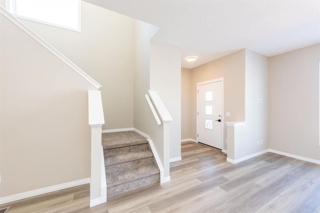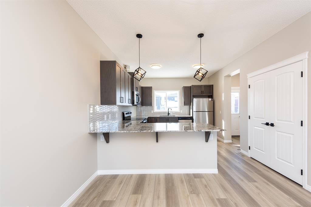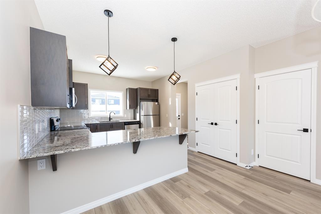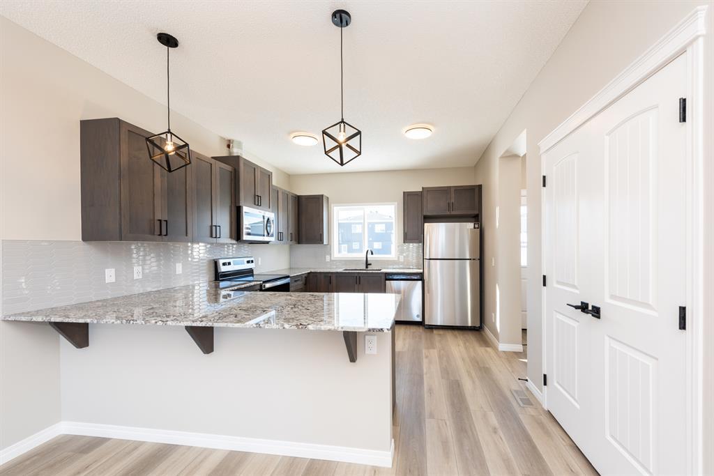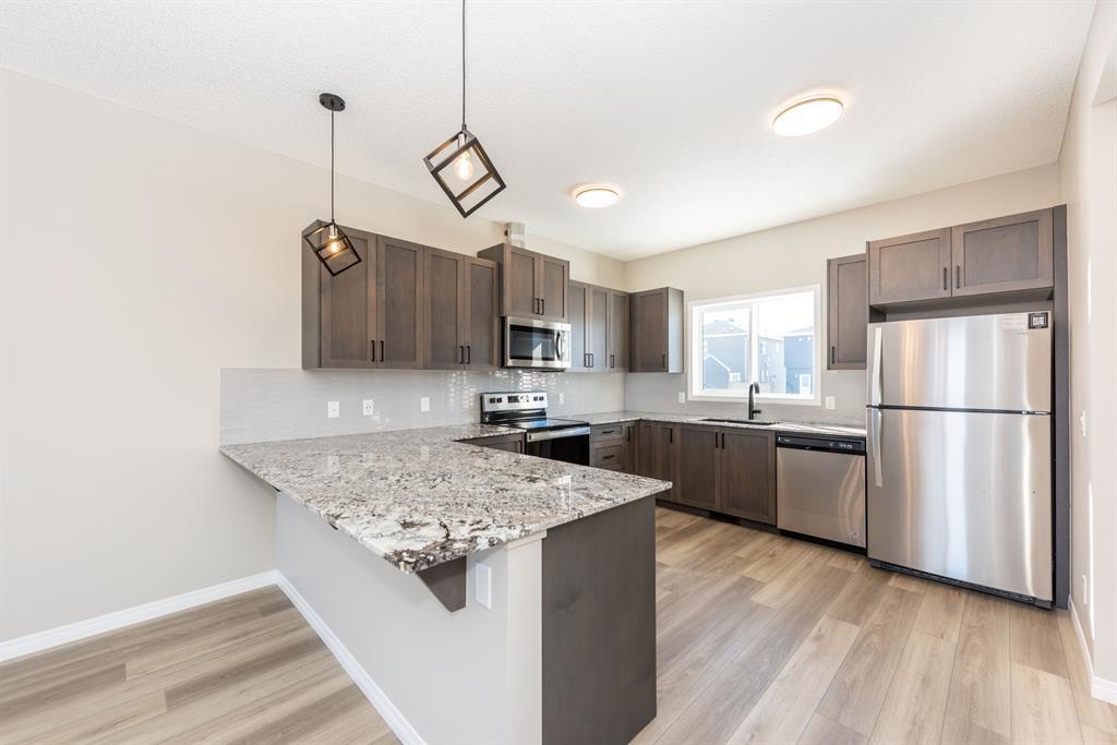 ** Back in the Market due to customer financing did not approved. Welcome to this beautiful East Facing Two story house with all modern touches excellent home in the most favorite north east community of CORNERSTONE. This attractive open floor plan home comes with lot of features and up grades. The main entrance leads to the very big front facing living room. The gorgeous modern kitchen overlooks both the dining room and living room with a very wide and bright window. Kitchen features with beautiful centre island , Espresso cabinets, stainless steel appliances, beautiful big pantry. Access the deck and backyard through the mud area right beside the kitchen. Also you will find powder room next to the back entrance. Very nice stylish stairs lead you to the upper floor which consists of three good size bedrooms. Primary bed with 3 pc ensuite and walk in closet and an other common bath complete this wonderful upper floor plan of this gorgeous two story Laned home. Basement side entrance ,roughing and two good size windows waiting for new owner ideas. (id:22211)