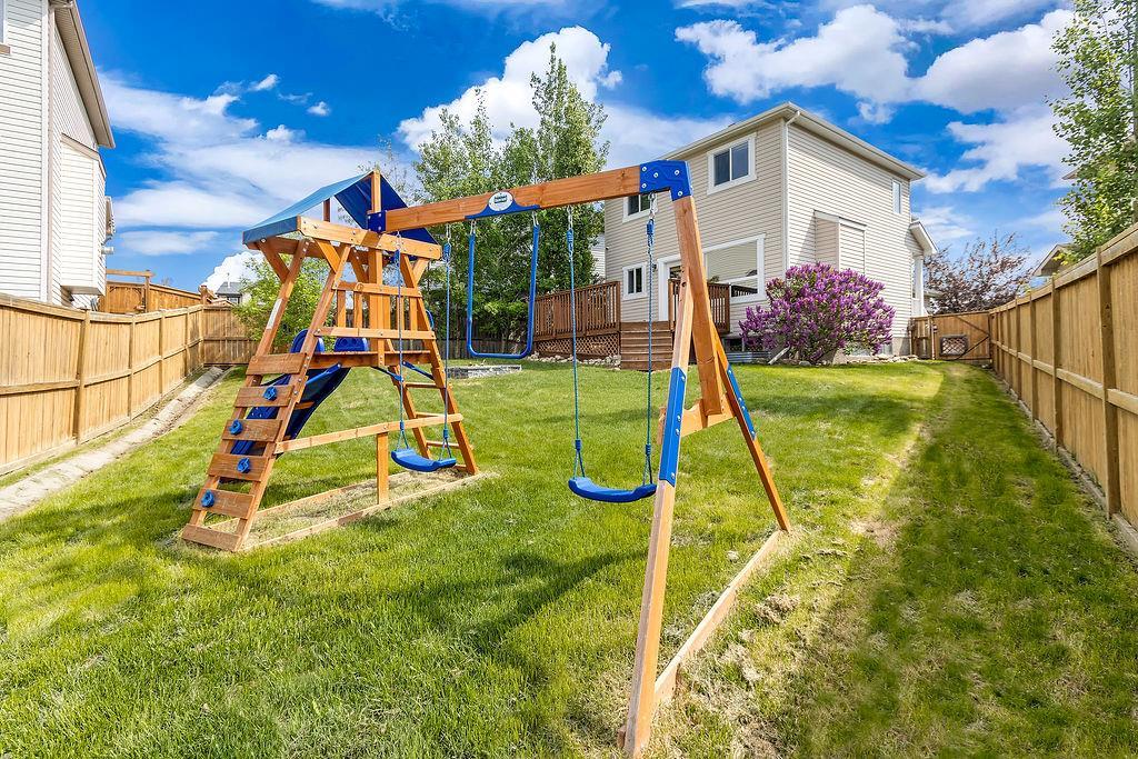 Back on Market! This one checks all the boxes! Shingles replaced in 2020 plus upgraded insulation in the attic, Double attached garage, finished basement, 3 bedrooms up + a bonus room, large deck off the kitchen overlooking your huge West backyard that has direct access onto the picturesque Coventry Hills Park! Prepare to be amazed as you step into this charming home, conveniently located just steps away from Nose Creek School 4-9 and a short walk to Coventry Hills School K-3. As you enter, you'll notice the abundance of natural light and open layout, seamlessly combining the living room, complete with a cozy fireplace, the elegant dining room, and the well-appointed kitchen. This expansive space is perfect for both entertaining friends and family gatherings or keeping a watchful eye on your little ones as they play in the back. Venturing upstairs, you'll be greeted by a spacious bonus room adorned with beautiful hardwood floors, offering endless possibilities for your personal touch. The master bedroom is a tranquil retreat, boasting a walk-in closet to cater to your storage needs. Two additional bedrooms share a pristine 4-piece bath featuring heated floors, adding a touch of luxury to your everyday routine. The basement is finished, providing a large rec room and plenty of storage space. Stepping into the backyard, you'll be bathed in sunlight, thanks to its coveted West exposure. Worried about the scorching summer heat Fear not, as this home is equipped with air conditioning to keep you cool and comfortable year-round. Be sure to click the floor plan + more info icons below for additional photos and information. (id:22211)