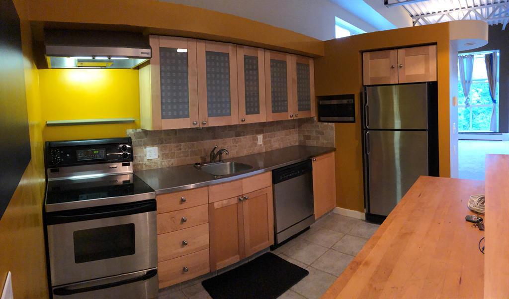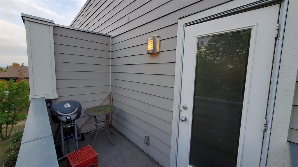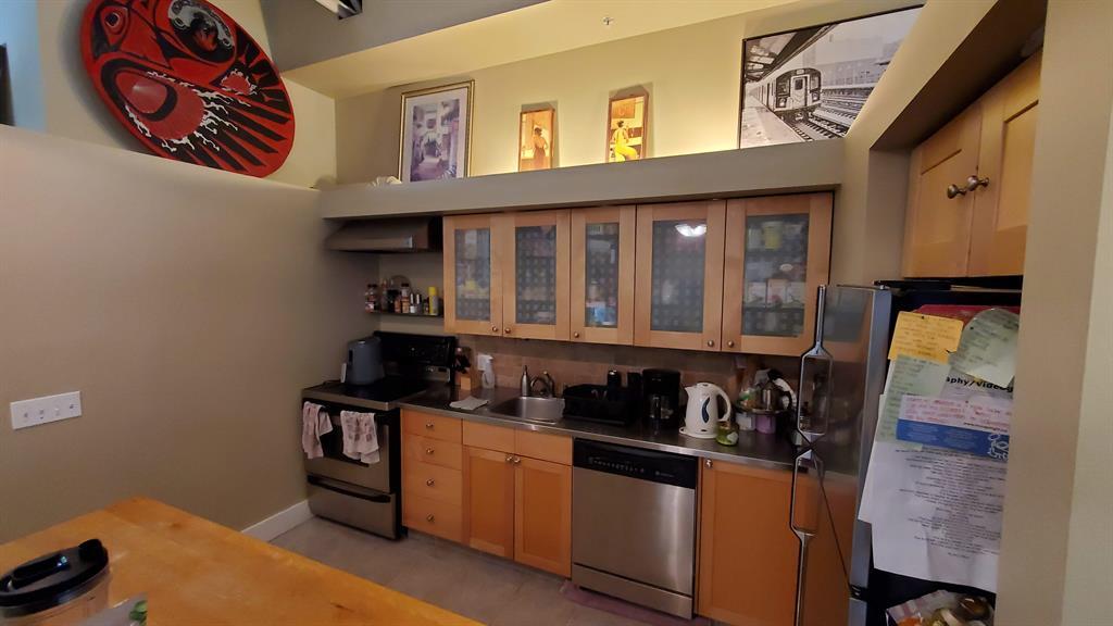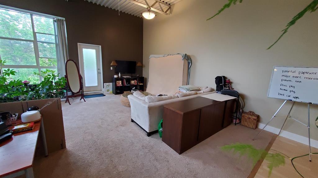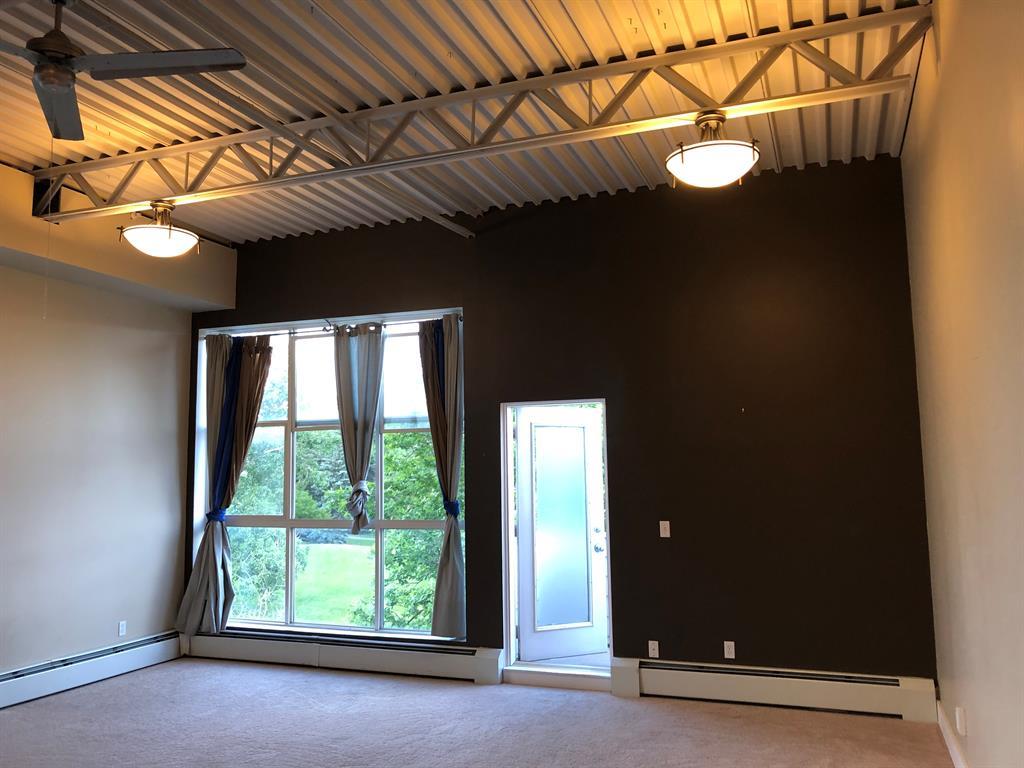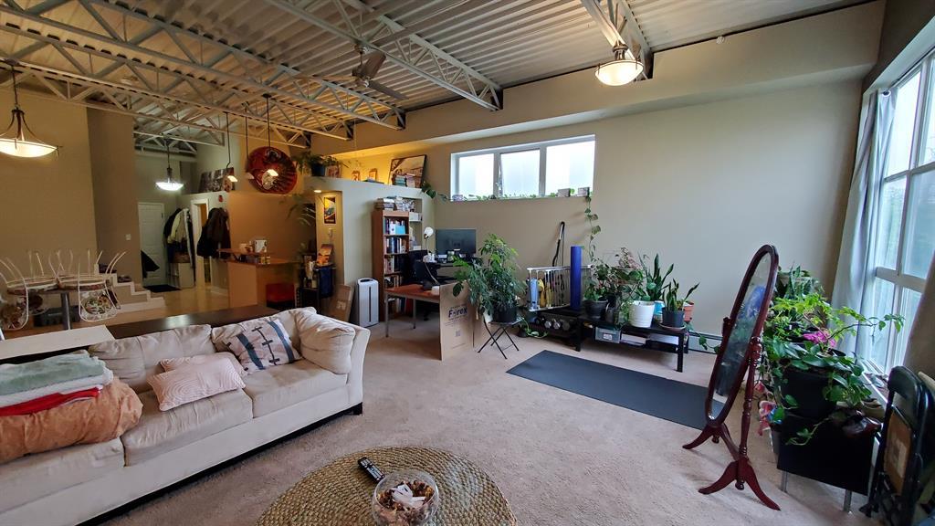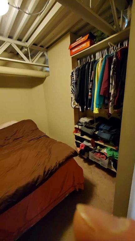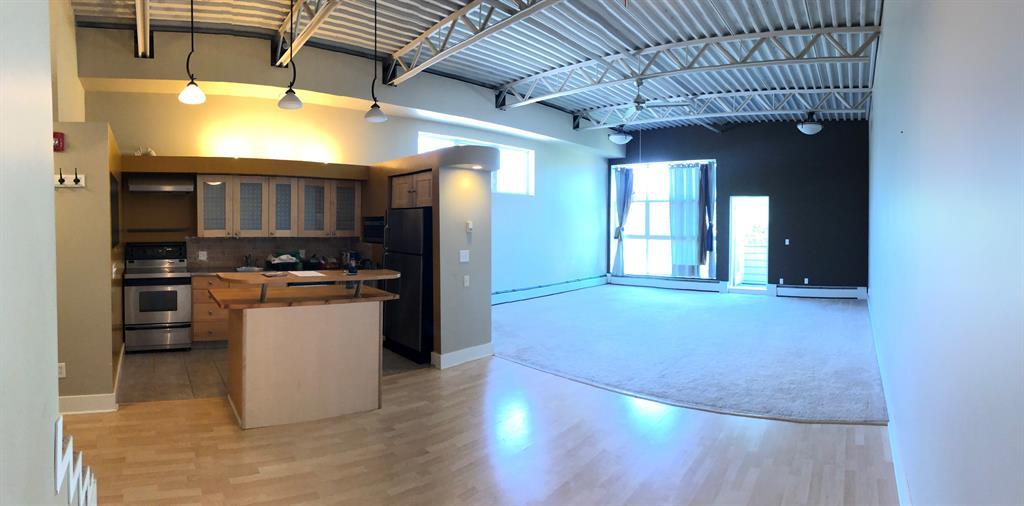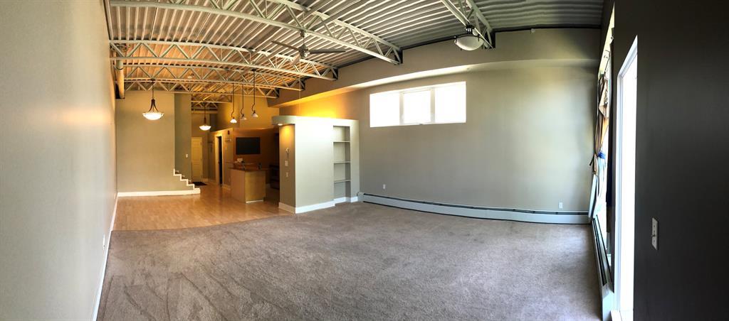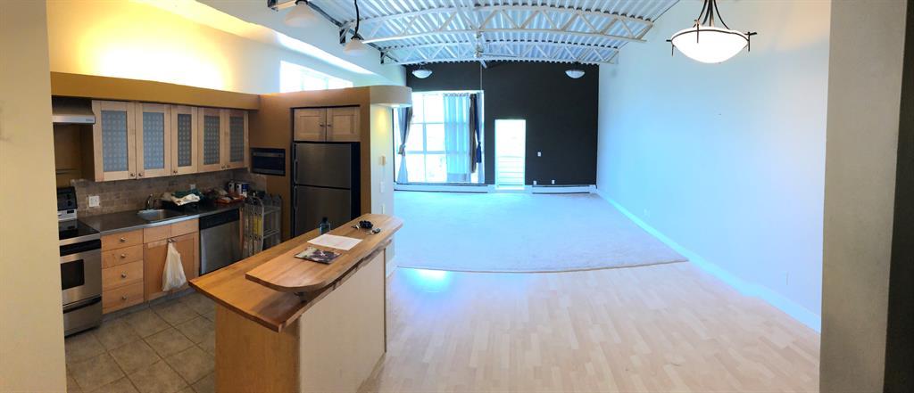 Investor Special - Wow, what a unique opportunity for a loft style open layout condo. This corner unit on the TOP floor boast TALL 12ft beamed ceilings with large bright windows and a great balcony. Has laminate flooring in the kitchen , entrance and dining area and carpet in the massive living room and bedroom. The kitchen has not only stainless steal appliances, but also a large stainless steel counter top for easy and germ free cleaning and living. The large and open living space with berber carpeting, high ceiling and track lighting is an ideal oasis for relaxing or entertaining. The In unit washer and dryer are located in the large bathroom. The raised private bedroom has a built in closet and a dresser area and offers ample in-unit storage underneath. This unit also boasts a private balcony facing a quiet street with room for your BBQ. This loft unit is perfectly located walking to distance to great shopping and dinning (Westhills Shopping Centre) as well as being very close to Mount Royal University, Grey Eagle Casino, parks and only a 15 min drive to downtown. It is also located with great access to get out to the mountains quickly and easily. Don't miss out on this great investment opportunity. Note: Tenant in place until July 31st 2024. (id:22211)