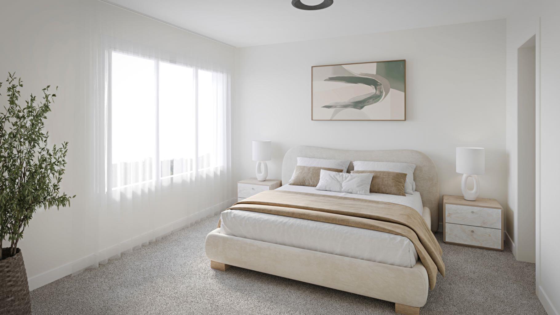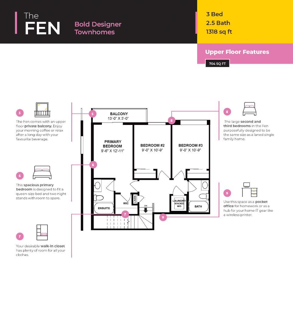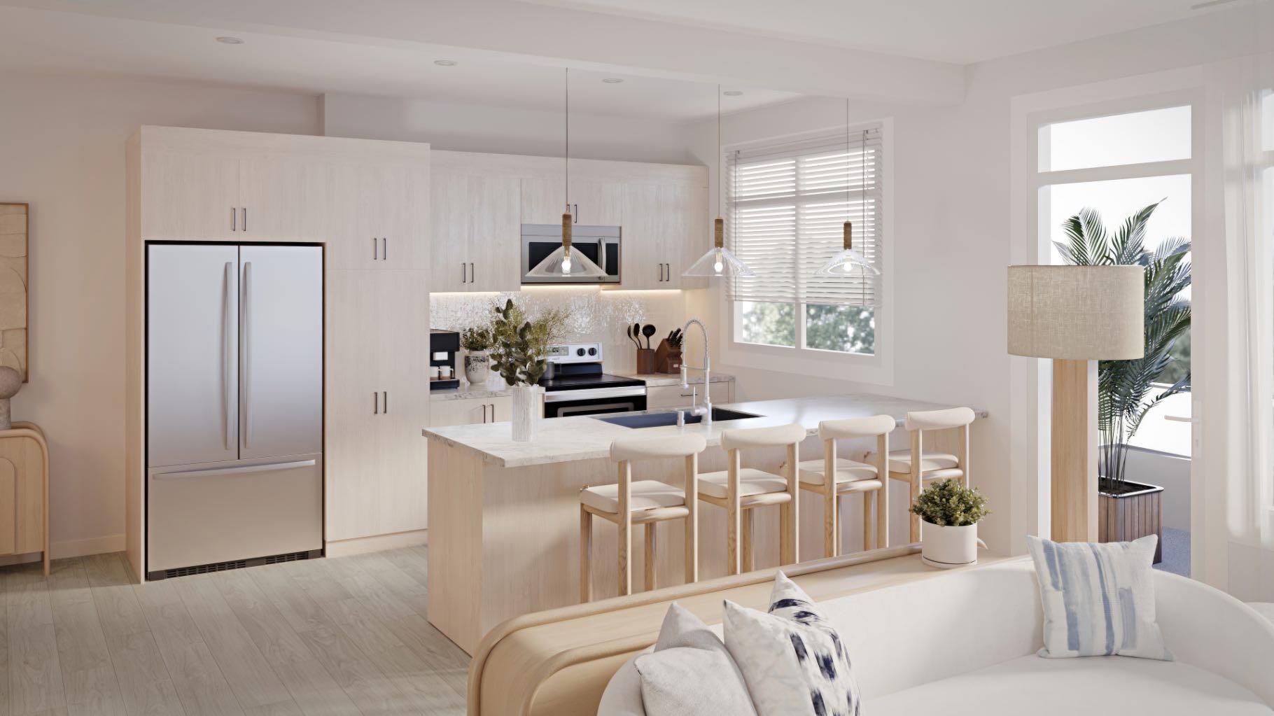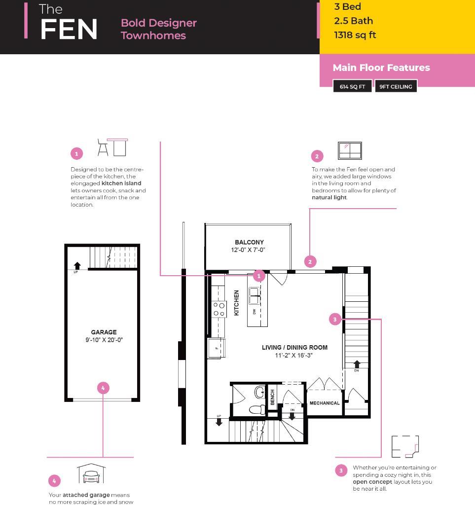 The "FEN" floor plan with 3 bed/2.5 bath + Flex space by 'Rohit Homes' - an award winning home builder for over 35 years. FEATURING: | SINGLE GARAGE | 2 BALCONIES | 1,317 SQ FT (3 bed/2.5 bath + flex) | LOW CONDO FEES | NEW DESIGN INTERIOR 'ETHEREAL ZEN' BY 'LOUIS DUNCAN HE' | All in SE Calgary's 'SETON' - a vibrant, master-planned community known for its modern amenities, healthcare facilities, retail options, and recreational spaces, making it a desirable place for both living and working. This brand new townhome offers desirable features making a top choice to live. Main floor features open layout that connects kitchen, dining and living space ensuring everyone is connected and not to mention leaving the unit feeling bigger. The kitchen features: Boutique lighting, quartz counters, SS appliances, beautiful cabinetry, large eating island w/ place for stools, storage space. The main floor is completed with half bath as well as large windows that have window coverings included, as well as a balcony with gas line. Upstairs has 3 bedrooms, 2 full baths, another balcony, laundry room and small flex space (for study). The primary room is good size, with an ensuite that has vanity, bath/shower combo with both shower wand and rain head. Single garage is on the entrance level. This unit comes with both window coverings, and washer/dryer- meaning you can just move in and enjoy living. This is a complex with monthly condo fees just over $200, and pet friendly (no size restrictions 2 pets), making it an ideal place to consider in a fantastic location. Click the 3D tour link to see complete tour of the same model, different finishings. Book your viewing today before... its gone.
