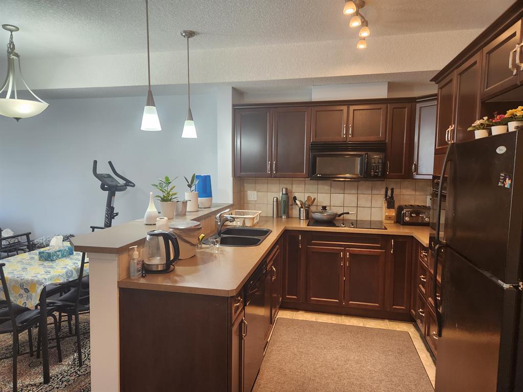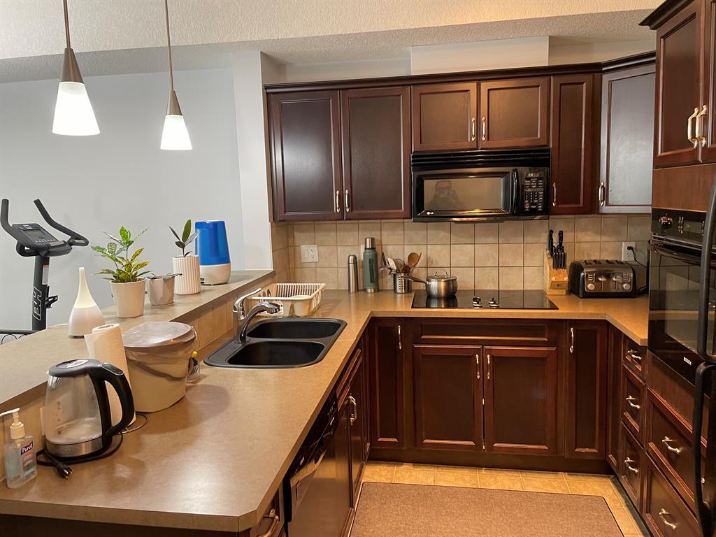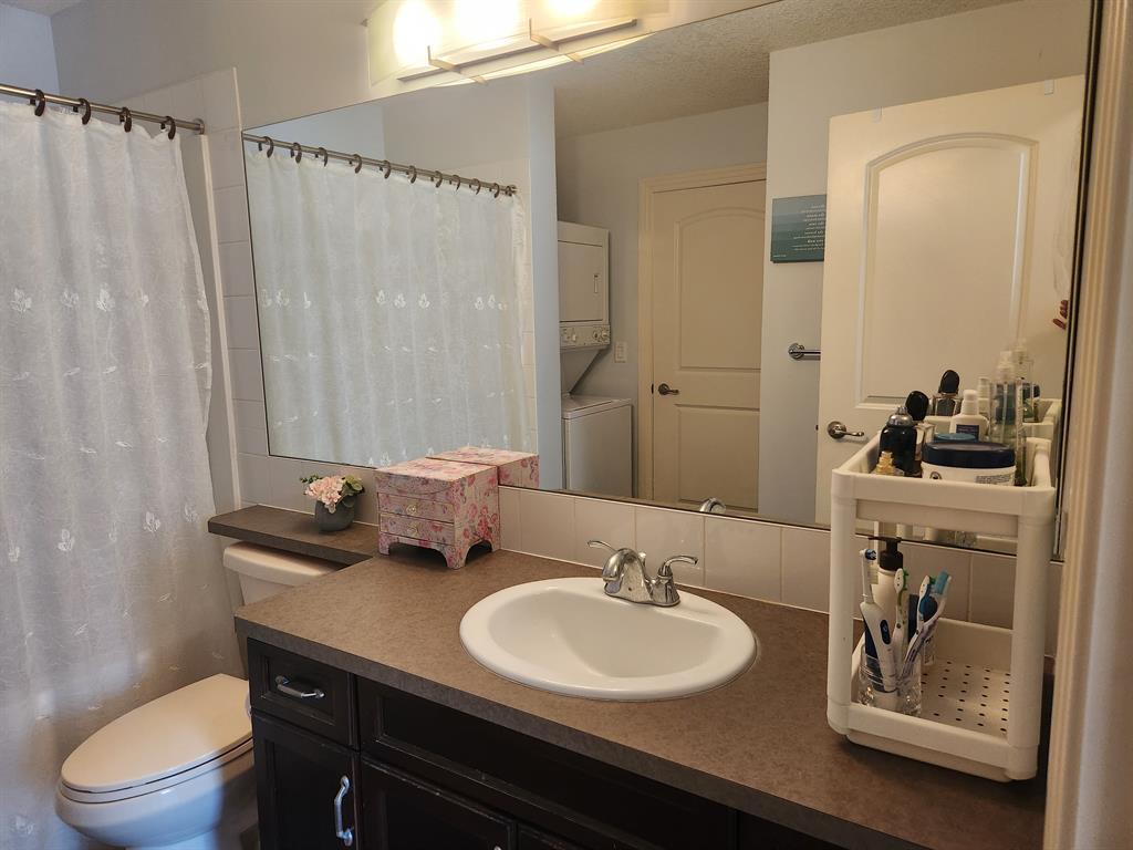 Modern and classy top floor unit for sale in the desirable Red Haus complex. Bright living room area next to a kitchen eat-up bar with an open layout concept. Living room leads into the sunny balcony perfect for summer time BBQ's. Lots of light in the bedroom and it comes with a walk-in closet, entrance to a full bath and an in-suite laundry. Condo complex offers all the amenities you need including a multi-purpose club house and exercise room. Unit comes with one titled underground parking stall and a titled storage space. Only minutes from shopping centres, restaurants, public transportation station and major highways. Parking Stall Number #240, storage locker #313. Condo fee: $374.61. Book your showing today! (id:22211)