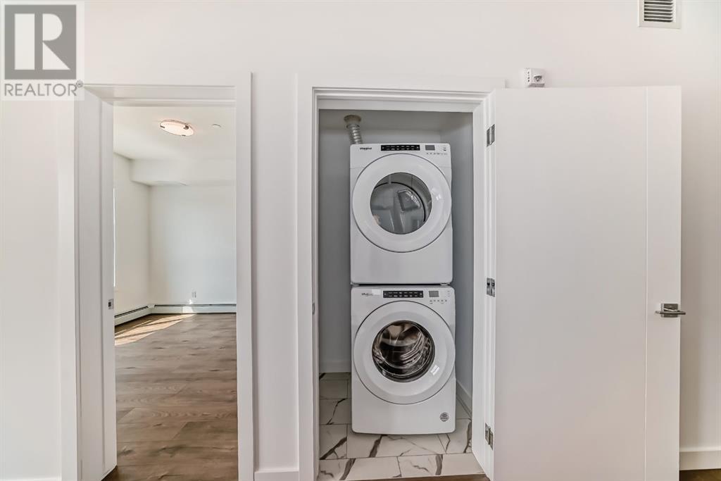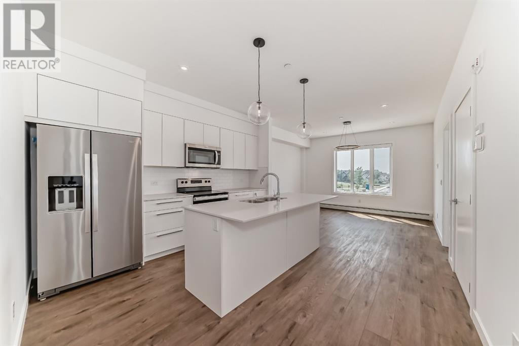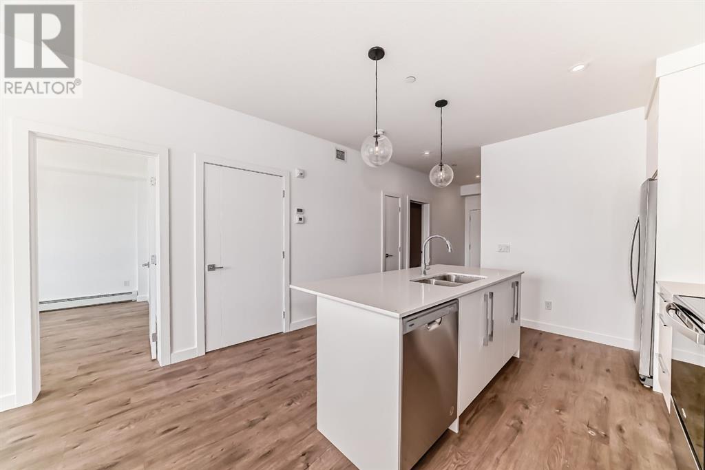 Skyview North by TRUMAN introduces an exceptional fifth-floor unit offering a bright and airy 1-bedroom, 1-bathroom layout in the well-established Skyview Ranch community, complete with a titled underground parking stall. Experience elevated living with luxury vinyl plank flooring and a designer lighting package throughout. The custom, chef-inspired kitchen features stainless steel appliances, soft-close cabinetry, and elegant quartz countertops. The primary bedroom boasts a spacious walk-in closet. Further conveniences include a 4-piece bathroom, in-suite washer and dryer, window coverings, and a balcony off the living room, perfect for relaxing. Skyview North is ideally situated near amenities like shopping at Sky Point Landing, green spaces, and extensive playgrounds. With easy access to Stoney and Deerfoot Trails, commuting is a breeze. Schedule your showing today to experience exceptional living at Skyview North! *Photo Gallery of a similar unit* (id:22211)