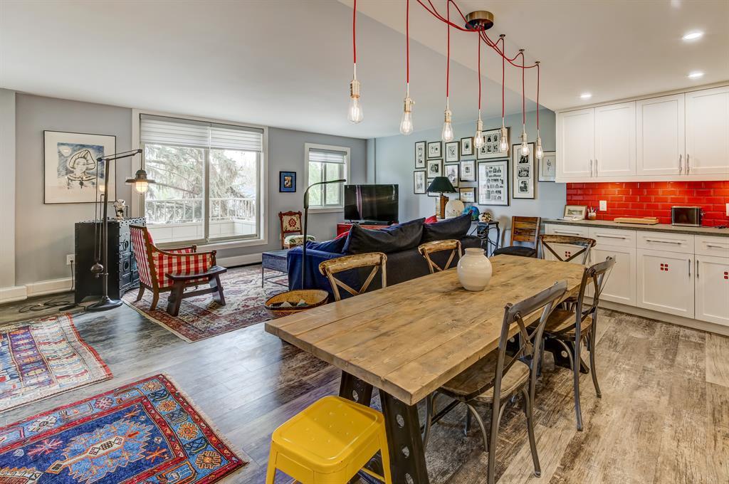 Captivating describes this one-of-a-kind condo!!! Completely inspired by Charles Rennie Mackintosh (Scottish architect/designer/artist) plus architecturally and professionally renovated to meet this design! Attention to detail has been paramount in the complete renovation of this fabulous condo. This unit offers 1088 sq.ft. of functional and well laid out rooms. Bright and inviting living room with access to a large private balcony offering fantastic views of the downtown skylight. Complimentary kitchen with ample raised cabinets, storage, full Bosch appliance package, Integrated refrigerator, induction cooktop, under mount cabinet lighting, apron sink and quartz counters. Two bedrooms have been converted to one stunning primary bedroom with dressing room, built-ins and impressive 3PC ensuite. Main 3PC bathroom with a true and timeless cast iron soaker tub. The list goes on.. Luxury vinyl plank floors, Triple pane Lux windows, silhouette window coverings, large extra storage room (3'x10') on 2nd floor, assigned underground parking stall (#6 ). Common laundry available on each floor. Well maintained and managed building. Pets allowed with board approval. (id:22211)
