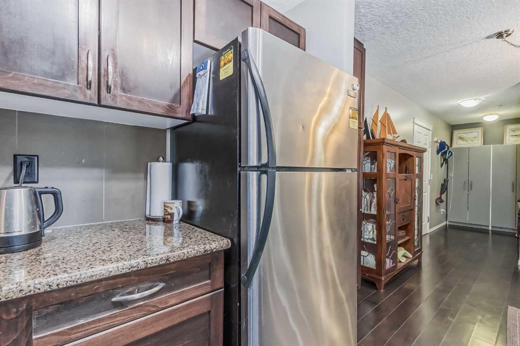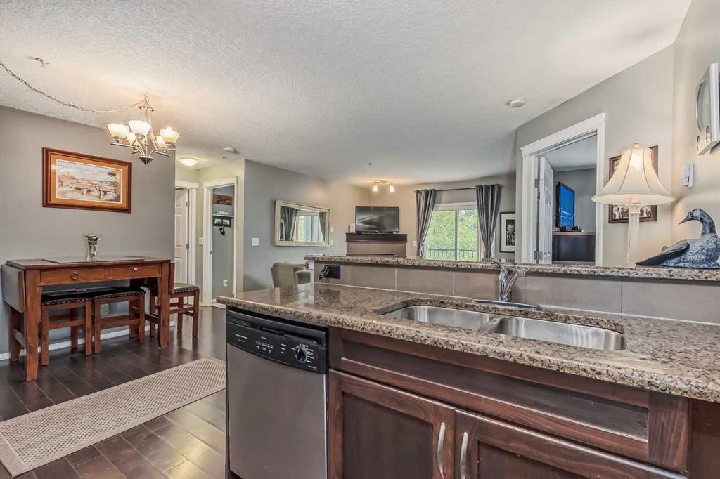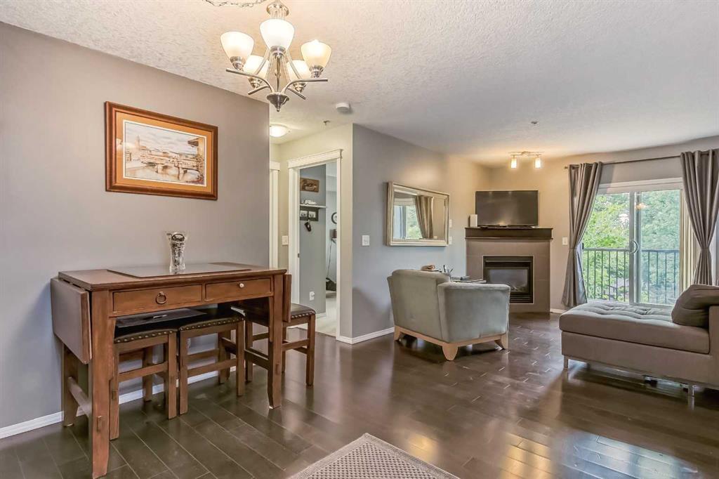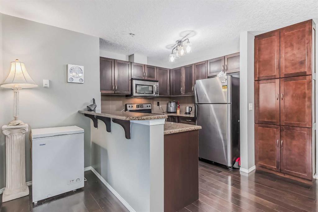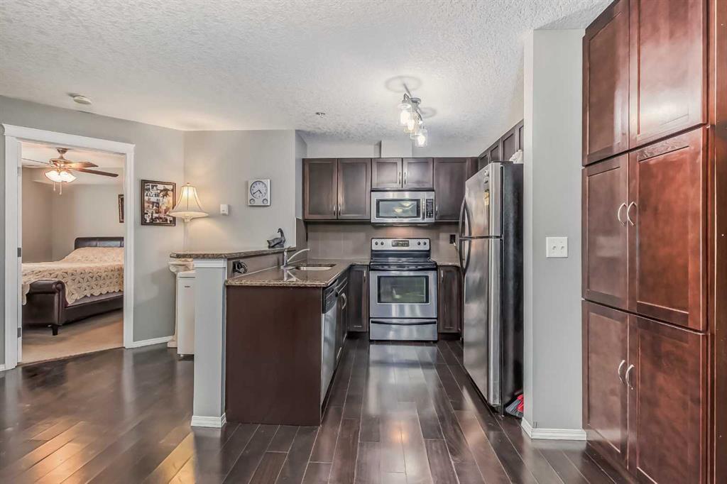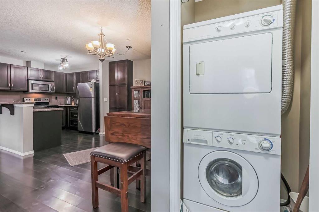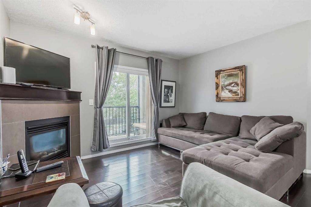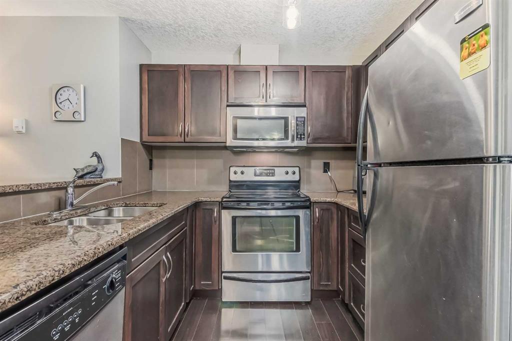 Welcome to the beautiful sought after community of Ranchlands. Ranchview Vistas by "Cardel Lifestyles" is a fresh and modern building in a mature neighborhood. This beautiful condo has dark hardwood flooring, granite kitchen countertops, dark cabinetry, in suite laundry as well as a corner gas fireplace to stay cozy during those cold winter months. This condo is spacious with 2 nice sized bedrooms and main 4 piece bath. The master comes equipped with a 4 piece ensuite and spacious walk-in closet.Stainless steel appliances, granite countertops and upgraded cabinetry complete the open kitchen. The Balcony provides a quiet space to overlook the mountains, the greenery of mature trees, breeze of fresh air as well as our gorgeous Alberta blue skies.There is a secure underground parking space adjacent to the entrance door creating the luxury of keeping your car warmer in those colder months as well as cooler in the hot summer months. Wondering where you will store any extra belongings, well not to worry as this unit comes with secure storage in the parkade. This condo is conveniently located in front of the bus route, 10 minutes walk from the Crowfoot LRT station in addition to shopping & amenities. This lovely Condo has been loved and cared for and it is ready for its new owners. Book your showing today and make this "YOUR" new home. (id:22211)