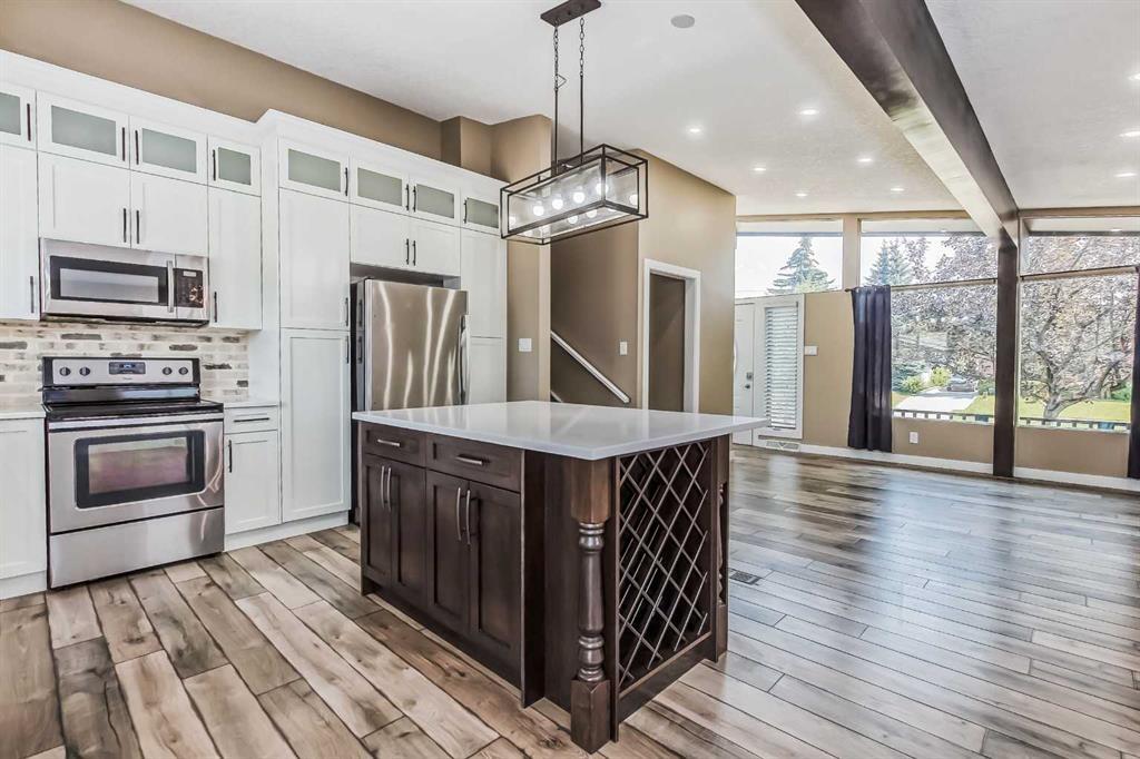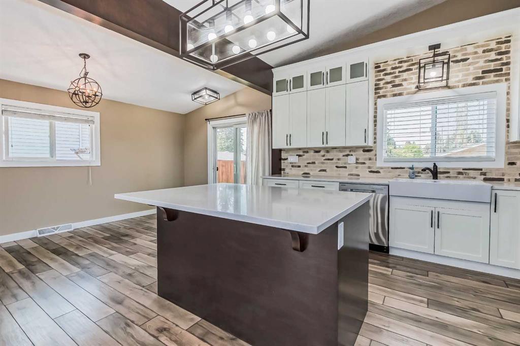This BEAUTIFUL 4 level split had undergone a complete renovation a few yeas ago located in in Willow Park with extra large lot with lots of mature trees along the street. It has easy access to major highways, shopping center, schools, library. The main floor has VAULTED CEILINGS graced with ESPRESSO STAINED BEAMS with a lots of big windows makes it bright all day long. GEORGEOUS WHITE KITCHEN with a HUGE ISLAND, MADISON RUSTIC BRICK BACKSPLASH, QUARTZ COUNTERTOP, and STAINLESS STEEL APPLIANCES offering tons of counter space, cabinet space and extra seating!! there are 3 bedrooms, 2 full baths in the up level and another bedroom and full bath in the 3rd level to accommodate all family members and gusts. There is a wet bar and big family room to create a comfort space for gathering and entertaining. In the huge west facing backyard with two steps down to a flat deck excellent for summer parties and friends meet. The extra large double garage with high celling with back lane access will certainly be a car lovers/handy man's dream. The back yard is large enough and have tons of space to open the fence to accommodate a RV parking in the future. There is already carriage house along the back lane so might be potential rent unit to be built on top of garage. Hurry up, this house will not last long . (id:22211)