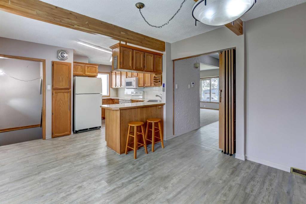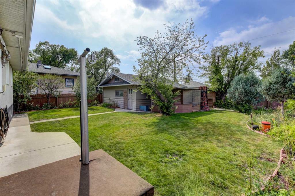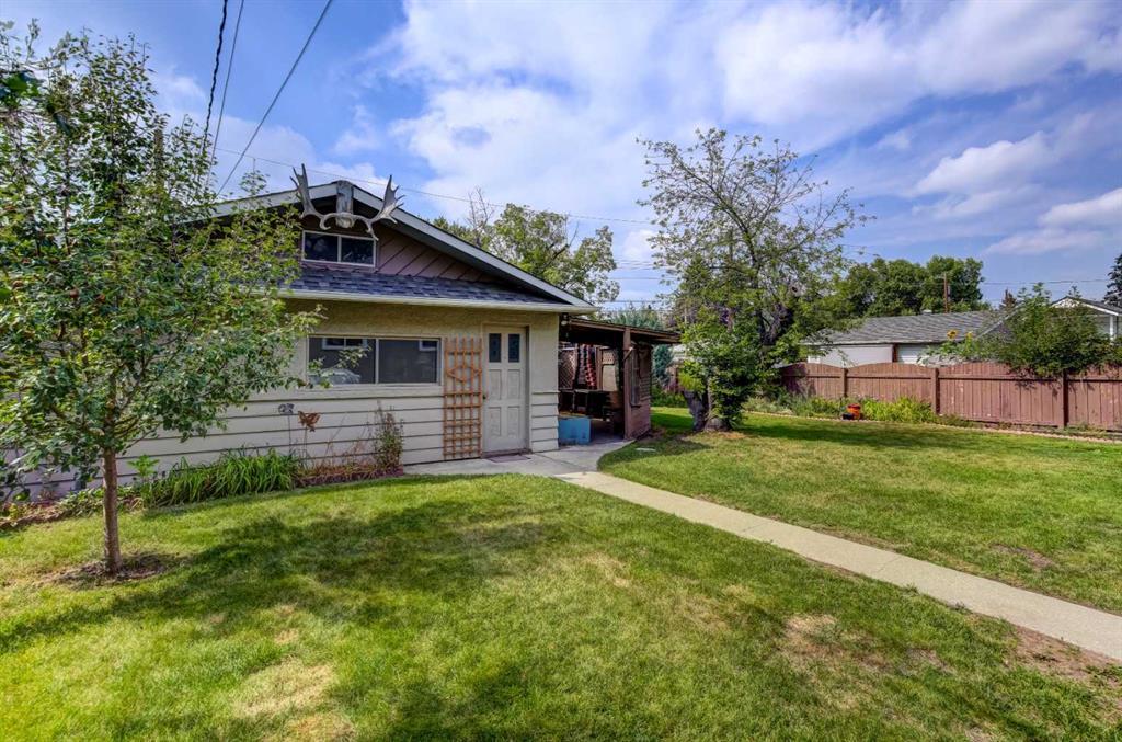 OPEN HOUSE SAT SEPT 16 AT 2-4PM. First time on market! This lovingly maintained home that raised up kids, grandkids, and entertained friends and neighbour's over decades is now ready for the next family to build your own precious memories! With 1171 sq. ft. on the main level and a fully finished basement, there is plenty of room for everyone. Three bedrooms on the main level and one huge bedroom downstairs, plus a big rec room and second bathroom. The main bathroom was updated with a full size shower with a glass door and there is another 3 piece bath in the basement. Abundant cabinets and countertops in the kitchen with a spacious dining room and the windows overlook the west backyard. Huge living room with a bow window and a built-in cabinet. The basement features a recreation room with a wet bar with built-in shelving and the shuffleboard table is included for tons of fun and entertainment! The fourth bedroom could be a great flex room or den as well, with three windows for lots of natural light. Lots of tidy storage and shelving to keep games, crafts, Christmas decor and all the practical things you need well organized. There is also a spacious laundry room in the furnace/utility room with more storage under the stairs. The oversized double garage is 23'5 x 21'10 and insulated and drywalled. Enjoy a beautiful west backyard with a covered patio complete with firepit for outdoor living in every season. The yard is fully fenced and features many perennial flower beds and your own apple tree. There is also a good sized front porch with maintenance free composite decking and metal railings. The roof shingles were replaced within the past 8-10 years, some windows have been replaced, with everything well maintained, with central air-conditioning, and the furnace/ducts were just cleaned before this listing. Walking distance to three schools K-9, the community hall, pool, and arena, and the community garden, the neighbourhood drugstore, medical offices a nd a cafe. The Bow River pathways, tennis courts, and dog parks are all close by also. Easy access in all directions with close proximity to the downtown, Foothills Industrial, Chinook Centre, Costco, the future Greenline LRT, and so much more! (id:22211)