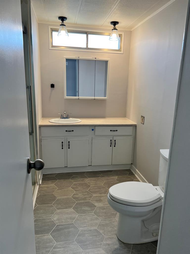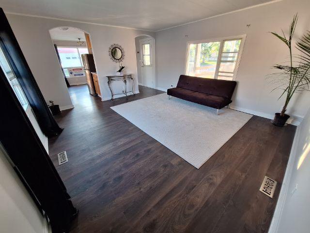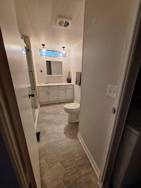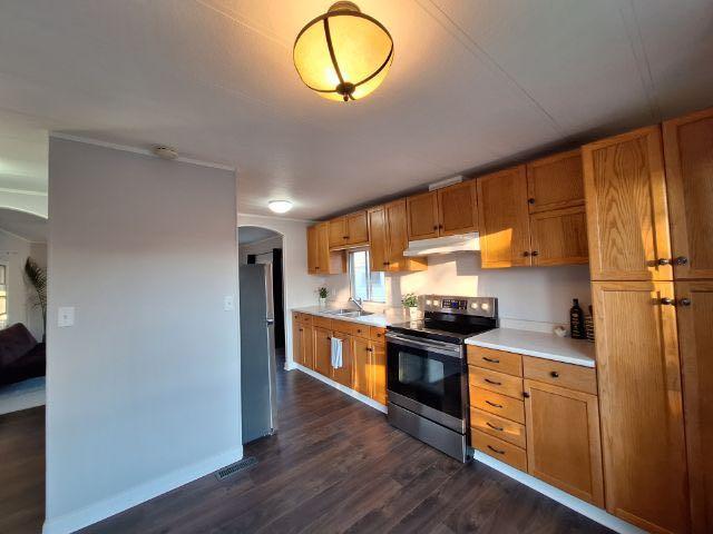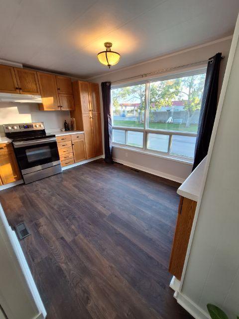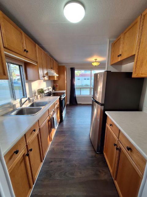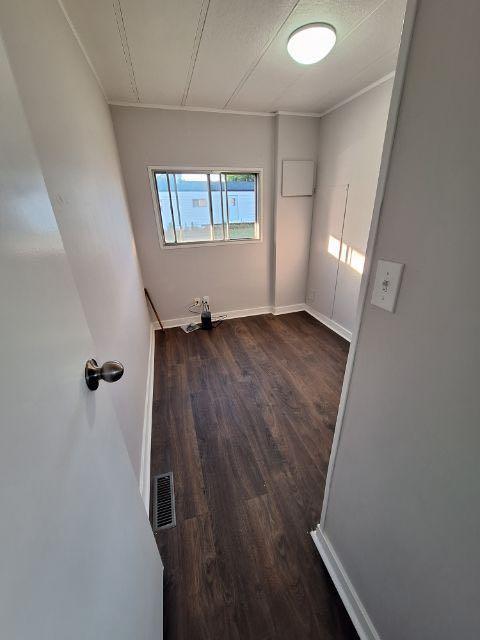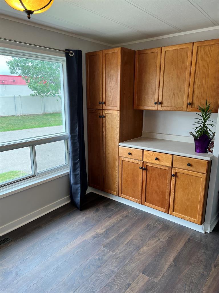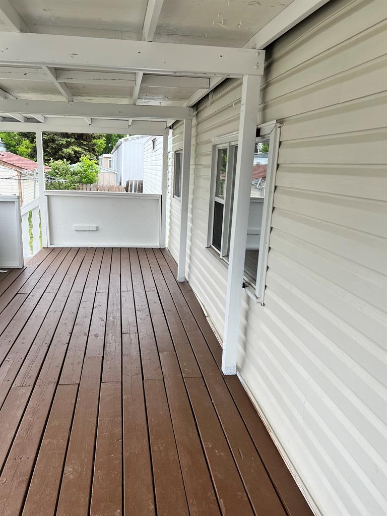 Welcome to this lovely 3 bedroom, 1 bathroom, renovated mobile home. As you enter the home you will find bright open space, a cottage style large eat in kitchen, and a large living room. Down the hall you will find 2 decent size bedrooms, a large bathroom and beautiful, bright huge primary bedroom. Your laundry is conveniently located in the hallway. the home has brand new laminate flooring, and has been freshly painted. For all your outside entertainment you have a huge covered deck and yard. you have ample storage space with 2 large sheds and driveway with more than enough room for 2 vehicles.The home is situated in the 18plus side of Mountview Estates, lot rent is $825 monthly and includes water, sewage and garbage pickup. Park approval is required. (id:22211)