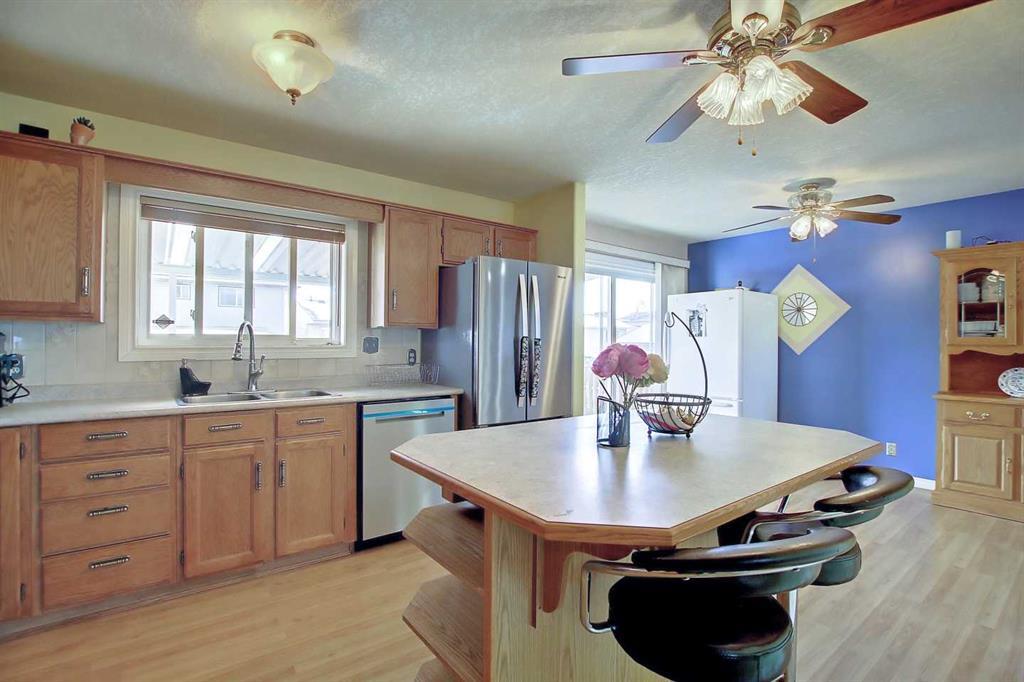 Welcome to 6795 Temple Drive NE, a meticulously maintained 4-level split nestled in the heart of Temple. Step inside to discover a generously sized living room adorned with bay windows, a spacious kitchen complete with an inviting eat-in island and brand new stainless steel appliances, as well as an adjacent dining room. Ascend to the upper level where you'll find a large master bedroom boasting a private 3-piece bathroom, along with two more roomy bedrooms and a renovated 3-piece bathroom. Journey down to the lower level, where a cozy family room awaits, complete with a gas fireplace and wet bar, accompanied by a fourth bedroom and another convenient 3-piece bathroom. Notably, the lower level also features a walk-up entry from the rear. Descend further into the basement to discover a sizable recreation room, offering additional space for leisure activities. This remarkable home boasts several upgrades, including newer vinyl windows, recently replaced appliances, renovated bathrooms, a high-efficiency furnace, a newer hot water tank, a built-in vacuum system, a sump pump, and a transition from copper plumbing to modern PEX pipes. On the exterior, the property boasts a fully fenced yard, a covered rear deck, and a paved back alley. Moreover, this desirable residence is conveniently located within walking distance to shopping centers, public transportation, and schools. Don't let this opportunity slip away, as this home is sure to attract significant interest. (id:22211)