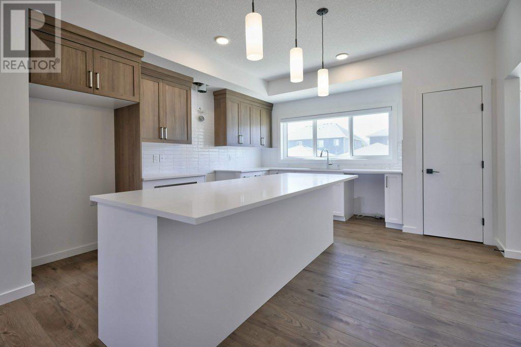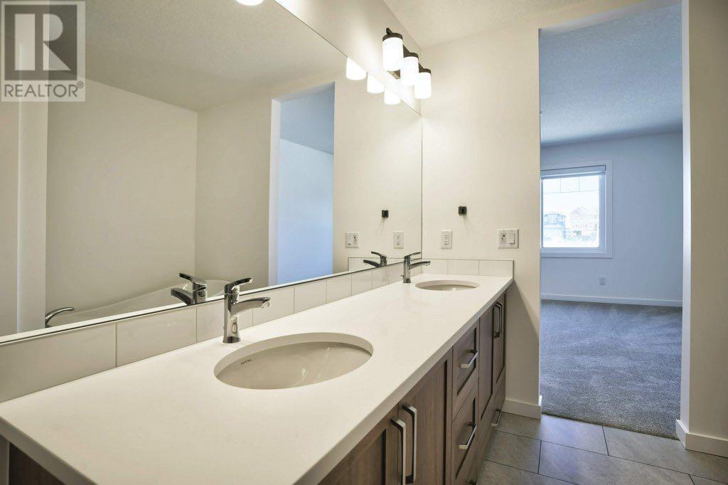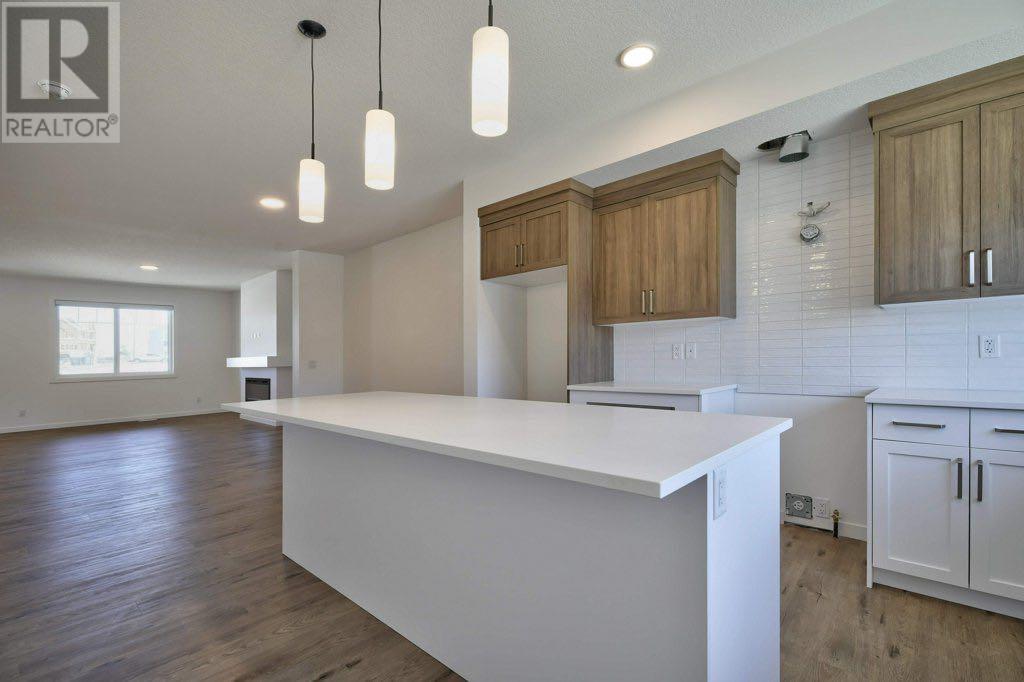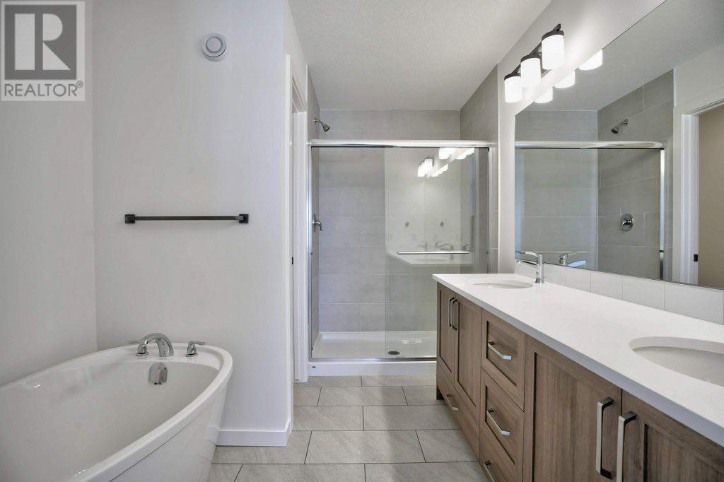 *LOOK MASTER BUILDER - CALGARY'S # 1 "QUICK POSSESSION" BUILDER PRESENTS THE PINNACLE MODEL. 1755 SQUARE FEET - OPEN FLOOR PLAN - HAS SIDE ENTRY - UPGRADED SPECIFICATIONS - Attractive PRAIRIE styled front elevation complete with a full width front veranda! Upon entering the home you'll feel the amazing craftsmanship! From the high ceilings to the upgraded luxury wide plank flooring to the elegant fireplace with wrap around mantle! You'll also see elegant metal railing running up the staircase to the upper floor. The dining room can accommodate a large table - perfect for a large family or when you're entertaining friends! The kitchen design is gorgeous and functional and has a huge island with eating bar, pantry, quartz counters, undermount silgranit sink, soft close cabinet doors and drawers, pots and pans drawers, slim-line lighting and pendant lighting! The large primary bedroom has an amazing ensuite that has a tiled shower, freestanding tub, double sinks and beautiful vinyl tiled floors. The primary also has a large walk in closet! The 2 spare bedrooms are located at the rear of the home. The main bathroom has a tub/shower combination. The laundry room is conveniently located on the upper floor! The basement with it's 9 ft. high foundation walls is unfinished but has plumbing rough-ins for a kitchen sink, a bathroom and laundry facilities. RMS measurements taken from Builder's blueprints. (id:22211)