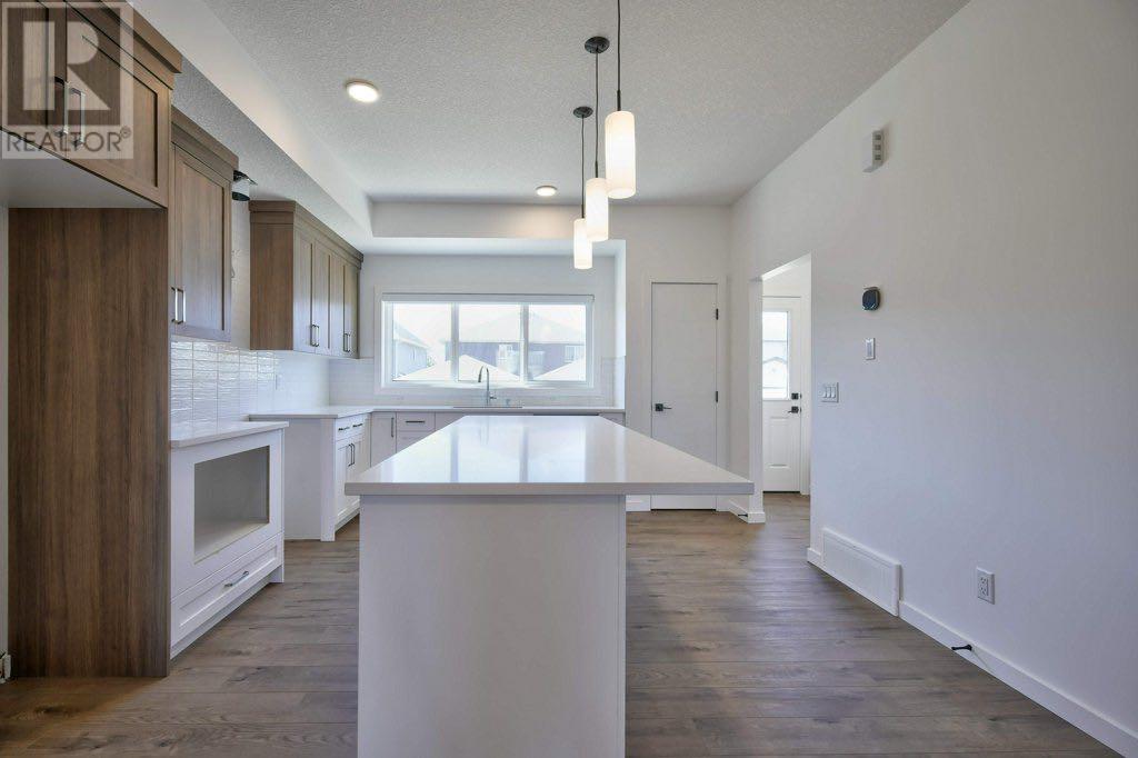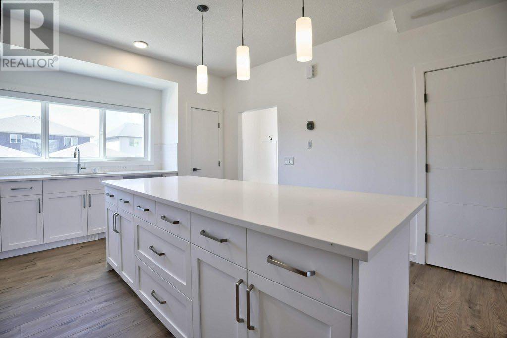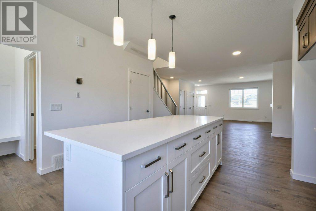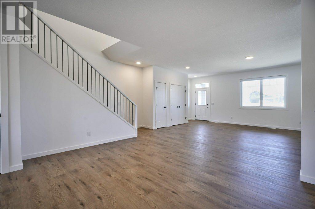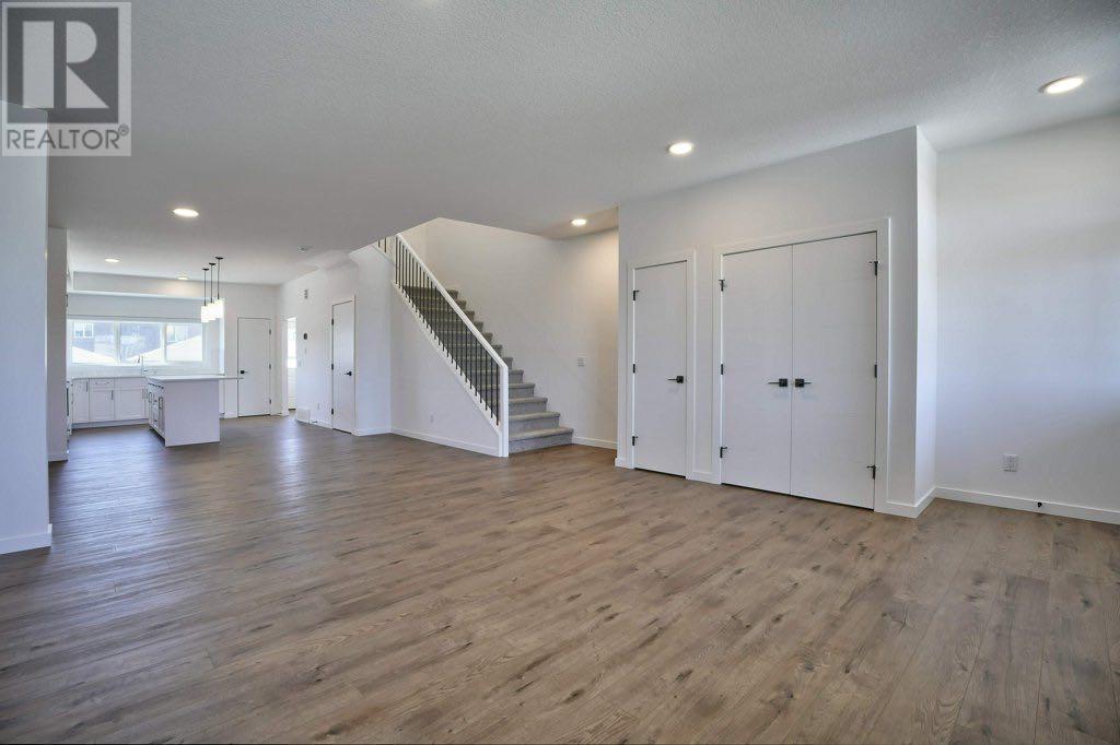 *LOOK MASTER BUILDER - CALGARY'S # 1 "QUICK POSSESSION" BUILDER PRESENTS THE PINNACLE MODEL. 1755 SQUARE FEET - OPEN FLOOR PLAN - HAS SIDE ENTRY - UPGRADED SPECIFICATIONS - Attractive PRAIRIE styled front elevation complete with a full width front veranda! Upon entering the home you'll feel the amazing craftsmanship! From the high ceilings to the upgraded luxury wide plank flooring to the elegant fireplace with wrap around mantle! You'll also see elegant metal railing running up the staircase to the upper floor. The dining room can accommodate a large table - perfect for a large family or when you're entertaining friends! The kitchen design is gorgeous and functional and has a huge island with eating bar, pantry, quartz counters, undermount silgranit sink, soft close cabinet doors and drawers, pots and pans drawers, slim-line lighting and pendant lighting! The large primary bedroom has an amazing ensuite that has a tiled shower, freestanding tub, double sinks and beautiful vinyl tiled floors. The primary also has a large walk in closet! The 2 spare bedrooms are located at the rear of the home. The main bathroom has a tub/shower combination. The laundry room is conveniently located on the upper floor! The basement with it's 9 ft. high foundation walls is unfinished but has plumbing rough-ins for a kitchen sink, a bathroom and laundry facilities. RMS measurements taken from Builder's blueprints. (id:22211)