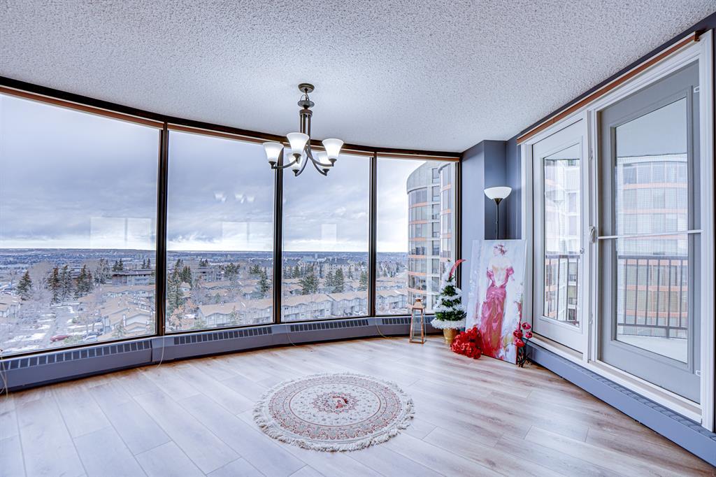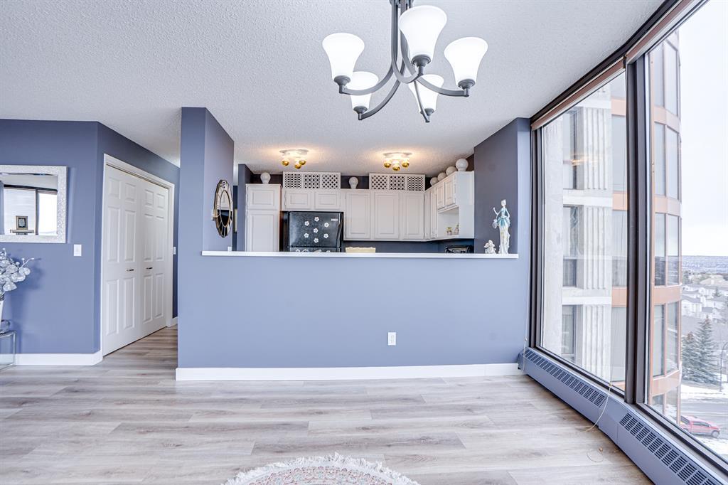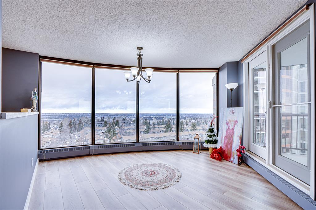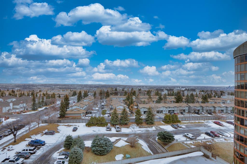 Welcome to this renovated the most unique condo complex with the fantastic panoramic mountain views on 10th floor in the architecturally stunning Odyssey Towers in Coach Hill. Excellent opportunity to move in to this beautiful lovely place . Only 4 units per floor, this is a quiet concrete building. This one bedroom plus den is updated with an excellent layout and mountain views. Spacious living room, open kitchen, informal dining room , generous sized bedroom. With in-suite laundry, an in-suite storage room plus ample sized outdoor patio. Two parking spots, underground parking one indoor and one outdoor. Lots of visitor parking . The building is very well maintained and has amenities including as access to the sauna, steam room as well as a guest suite, library and resident’s club. Drive downtown in less than 20 minutes or access the West C Train station less than 10 minutes away. Easy access to amenities , parks, shopping, restaurants and recreational amenities of Calgary’s prestigious West hill communities. you have all you need in a condo with personalized building management, you’ll enjoy fully maintenance free living in one of Calgary’s premier adult living (18+) communities. (id:22211)