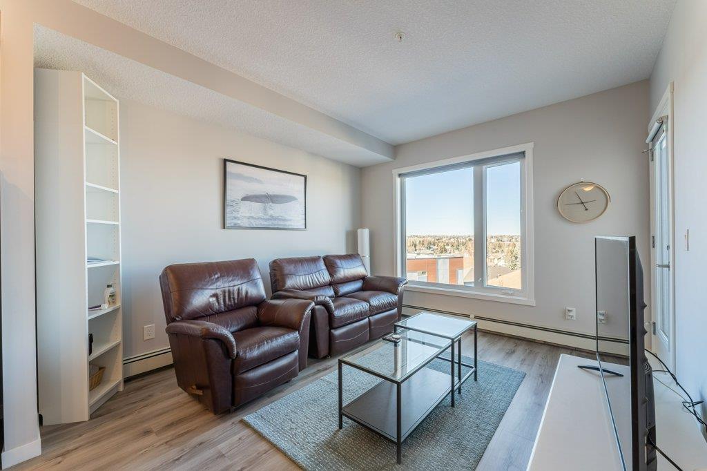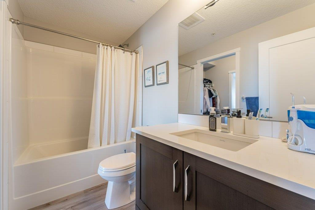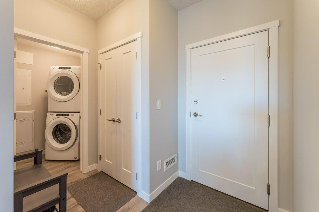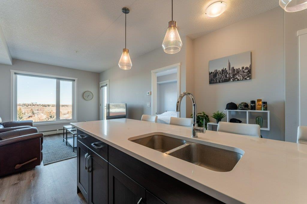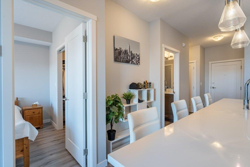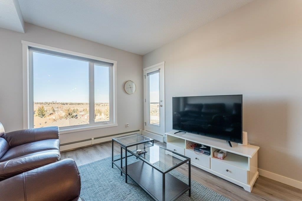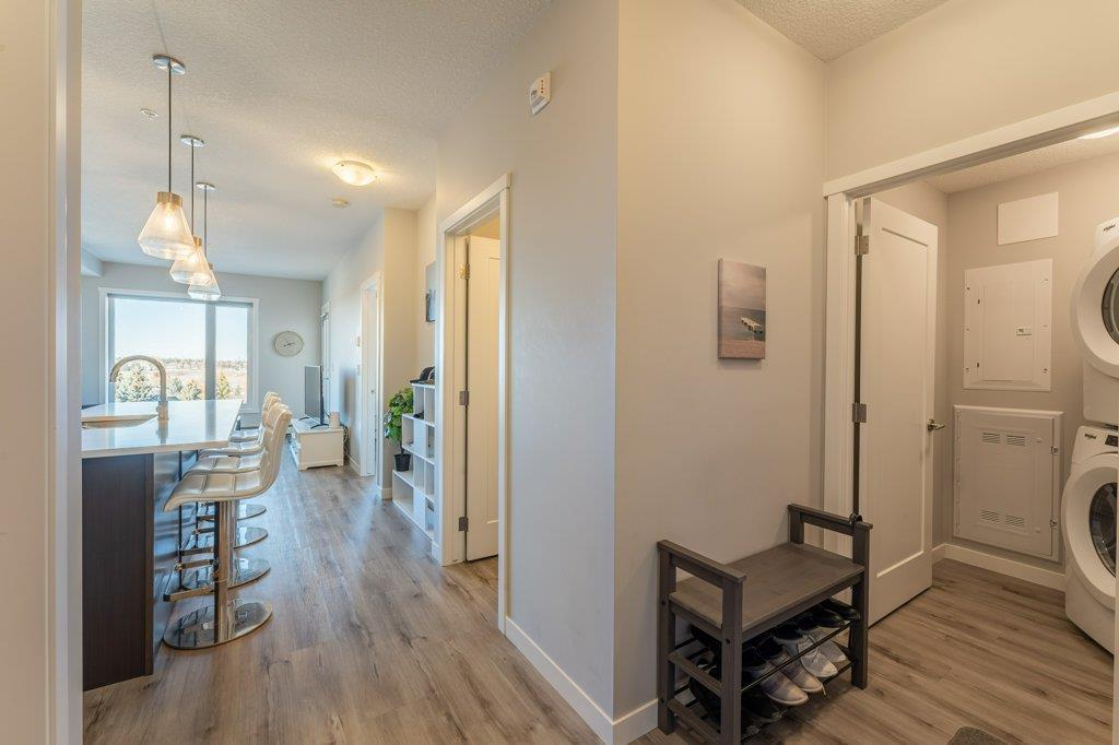 Luxurious & Modern 1 Bedroom PLUS Den apartment, steps from C-train access, Walk/bike in Fish Creek Park—this unit offers views of Fish Creek park & a peek of the mountains. The apartment has convenient underground TITLED parking w/remote access for added security, as well as secure bicycle storage, TITLED storage locker, even a Dog Wash. It features a large balcony & exterior glazing w/low-e glass, allowing you to enjoy the beautiful views in a comfortable and energy-efficient environment. Access to exterior amenity areas incl community gardens, outdoor common gathering area and community courtyard. Enjoy Shawnee Park Regional Pathway system w/links to community parks & Fish Creek Provincial Park, perfect for walkers, joggers and bikers interested in a modern new unit, with nature and access to easy commute (bus/c-train). Inside the apartment, you will find a professionally coordinated interior color palette. The apartment has a high-quality solid-core fire-rated entry door with designer hardware. The unit has 9' ceilings (approx.) with knockdown texture finish (no popcorn finish), giving the space an open & spacious feel. LUXURY vinyl plank flooring upgraded throughout. Stylish closet doors with designer series hardware. GOURMET kitchen features contemporary, designer-selected, Shaker-style cabinets, convenient island w/breakfast bar. Premium QUARTZ countertop with tile backsplash, under-mount stainless steel sink w/pull out single-lever faucet and integral vegetable sprayer, & Energy Star-rated stainless steel appliance package are perfect for those who enjoy cooking. The apartment comes with an over-the-range, exterior vented microwave oven/hood fan, LED lighting in kitchen & dining areas w/designer-selected pendant lights above kitchen islands, & pot light upgrade in kitchen and dining areas.The spa-inspired bathroom features a vanity to complement kitchen cabinet selection, including premium QUARTZ countertop, TILE backsplash, under-mount sink and single-le ver faucet, as well as contemporary low-flush toilets, exterior vented exhaust fan, full-width vanity mirror.The apartment offers enhanced safety and security, including a secure entry telecom system in the lobby vestibule and an electric fob-based access system at the main building entry point. The apartment is fully equipped with sprinkler fire protection. Builder size: 691 sqft, see photos and Virtual Tour for Details. Come and experience luxurious living at its best! Call your favorite agent to book a viewing today. (id:22211)