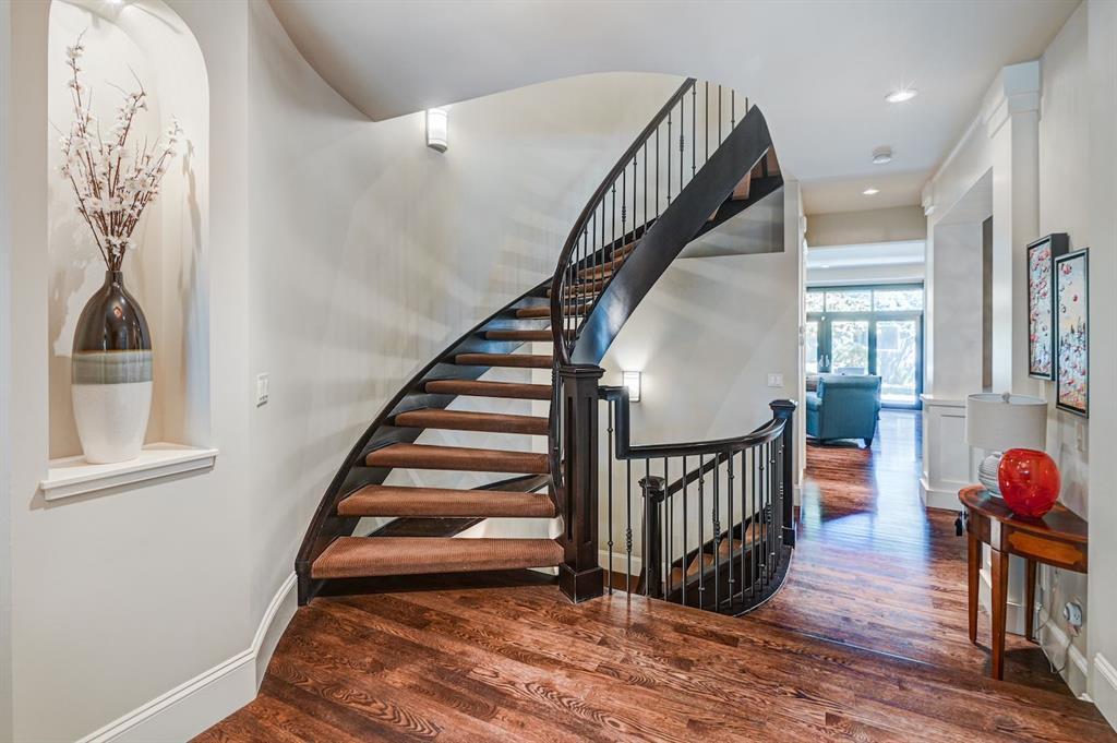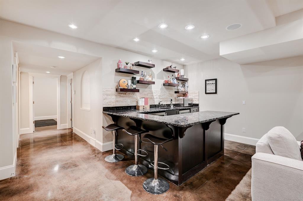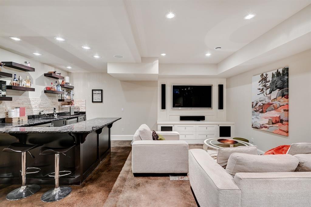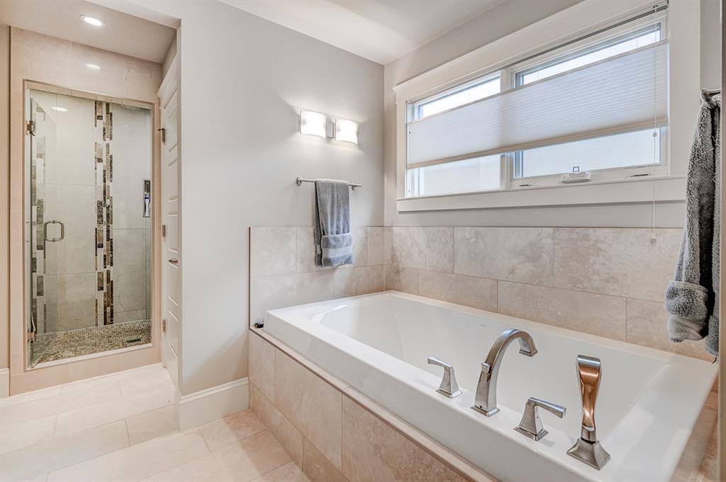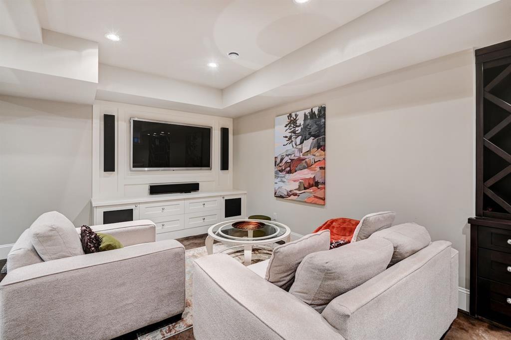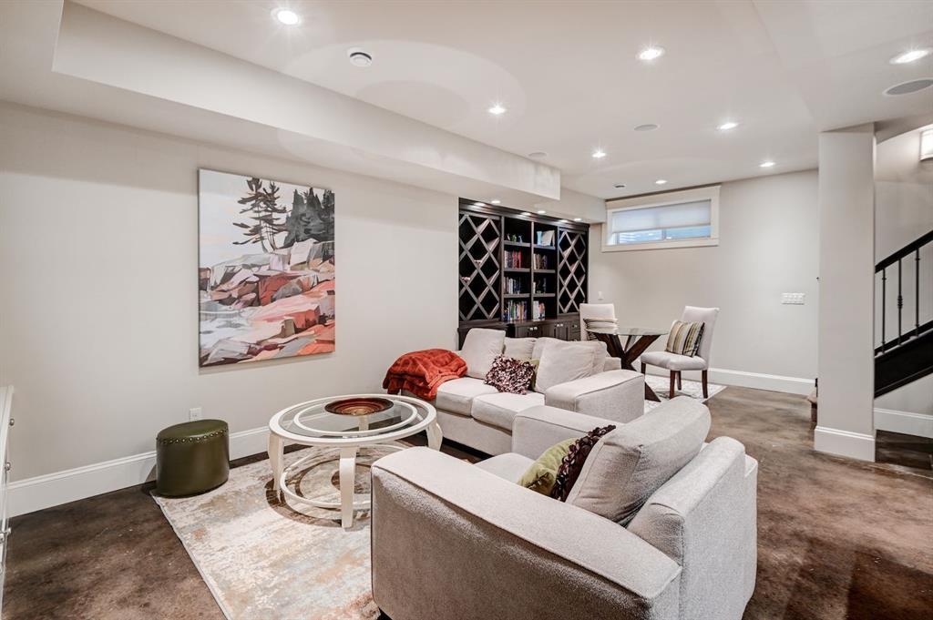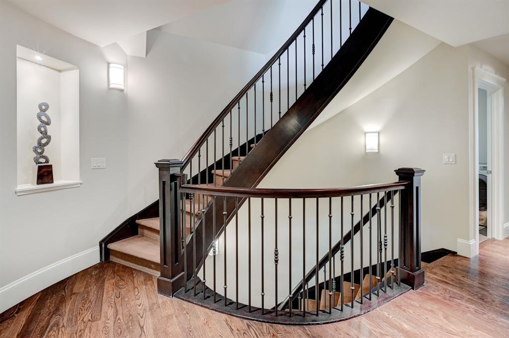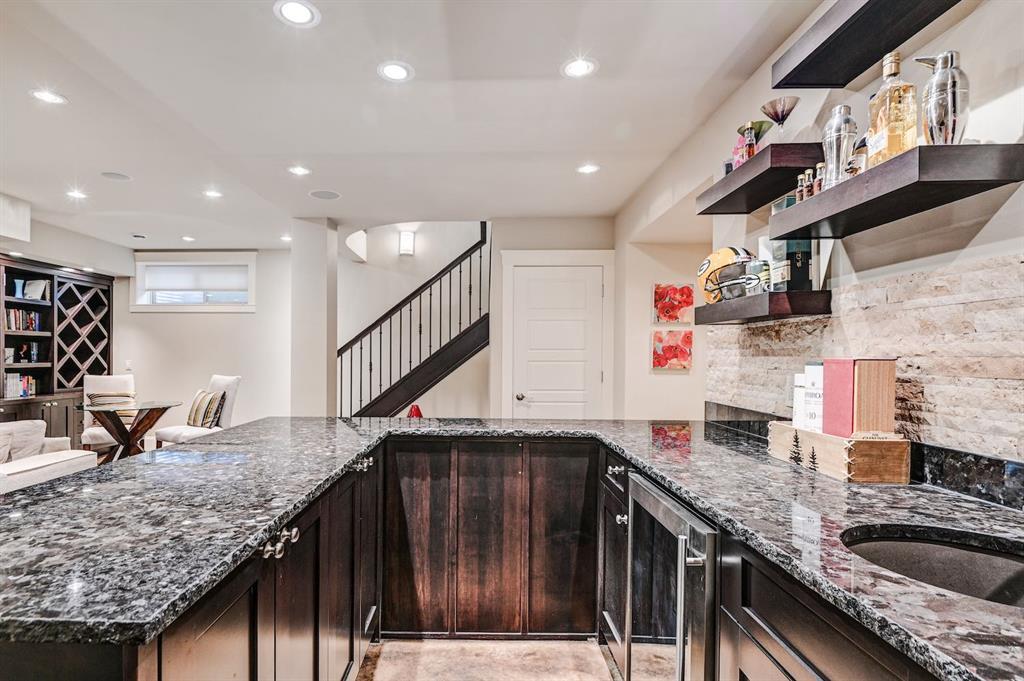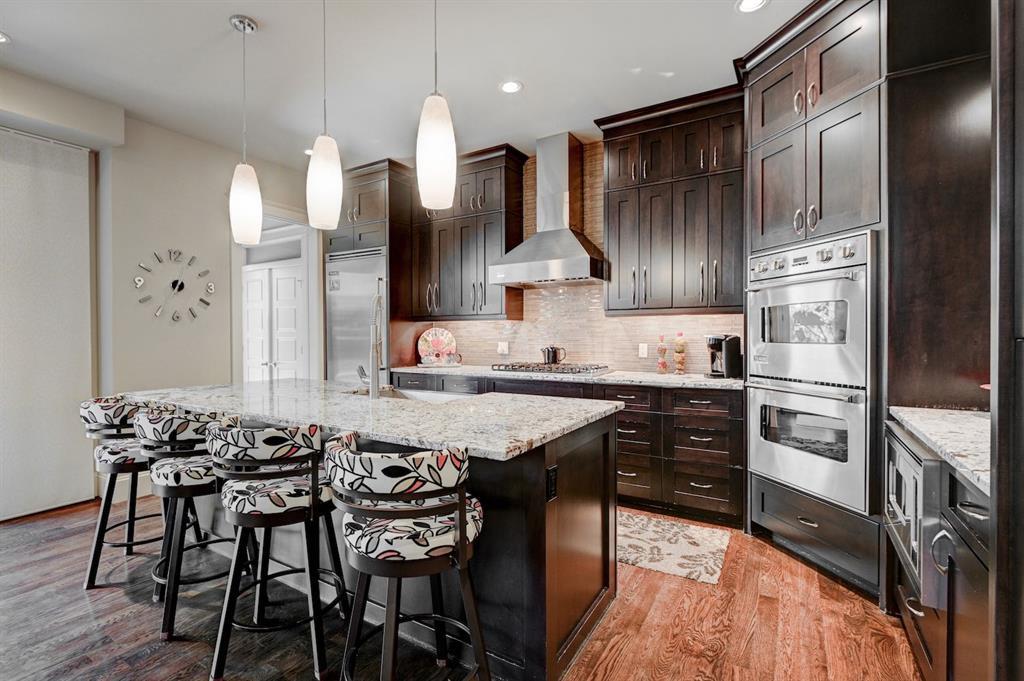 Ideally situated on a beautiful tree lined street, this immaculate and impressive home blends high-end finishes and exceptional millwork. A grand foyer welcomes you inside the home where you'll instantly notice the stunning hardwood floors. A front home office overlooks the street while gorgeous built-in shelving surrounds the two-way fireplace that is shared with the dining room. The family dining room features elegant wainscoting details, gorgeous architectural detailing on the ceilings, boasts a unique serving window to the chef's kitchen. Your inner chef will be inspired in this superior kitchen with espresso cabinetry, several pull-out drawers, large extensive eat-up island, and high-end Viking and Miele appliances. A dramatic open riser staircase leads up to the second level hosting a convenient laundry room and two gracious bedrooms, all suited with walk-in closets, including the master retreat. The serene master features large windows, a sitting area with access to the private south exposed balcony, and a luxurious 6pc ensuite with his/her sinks, soaker tub, and shower with body sprays. A quick trip up to the third level where you're greeted with a bright bonus room and third bedroom suite with a full ensuite. The fully finished basement is an entertainers delight with heated concrete floors, games are with custom shelving, family room and large wet bar. French doors open up into a cozy den while a massive fourth bedroom can ideally function as a home gym. The rear yard is treed and private, which makes it lovely for weekends and evenings spent outdoors and features and oversized double garage. Steps away is the Mount Pleasant Community Sportsplex and Outdoor Pool where you can enjoy year-round activities or take a short stroll over to the pathways of Confederation Park. This exemplary home is ready for your family and one you won't want to miss out on. (id:22211)
