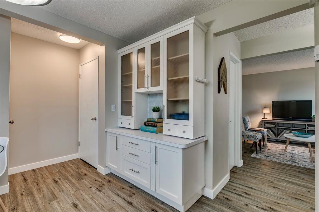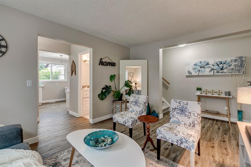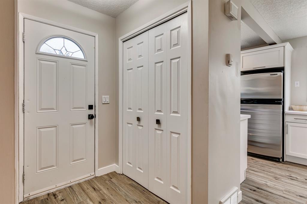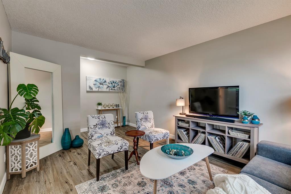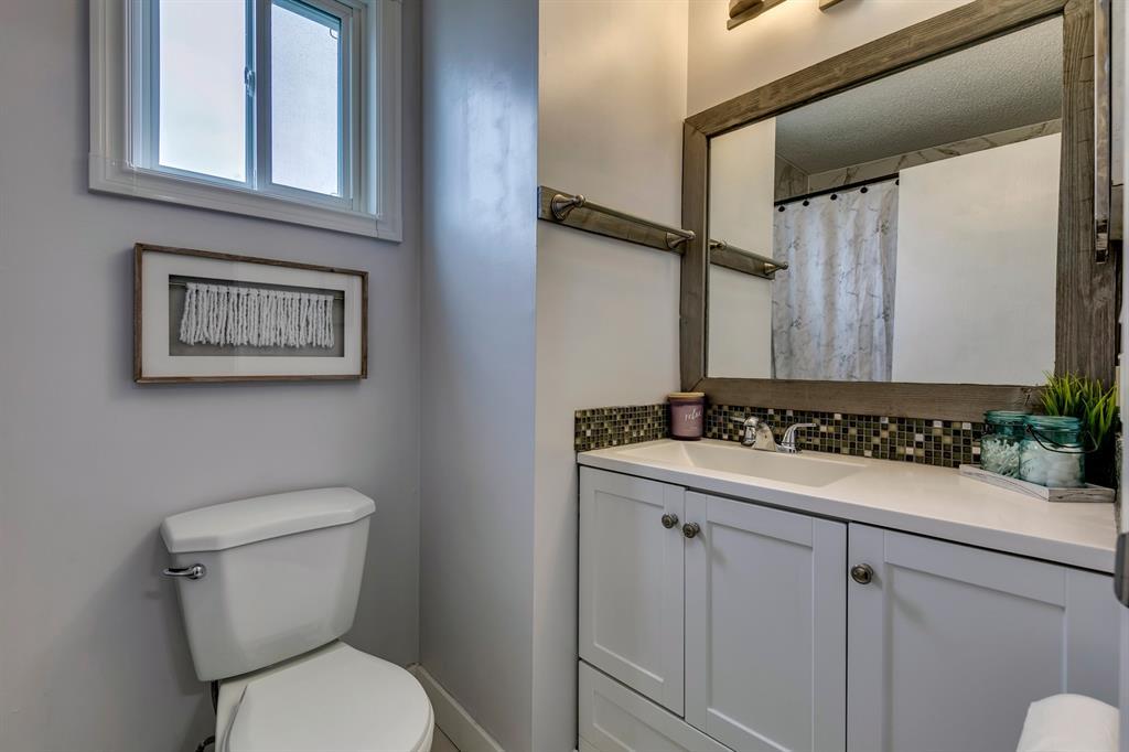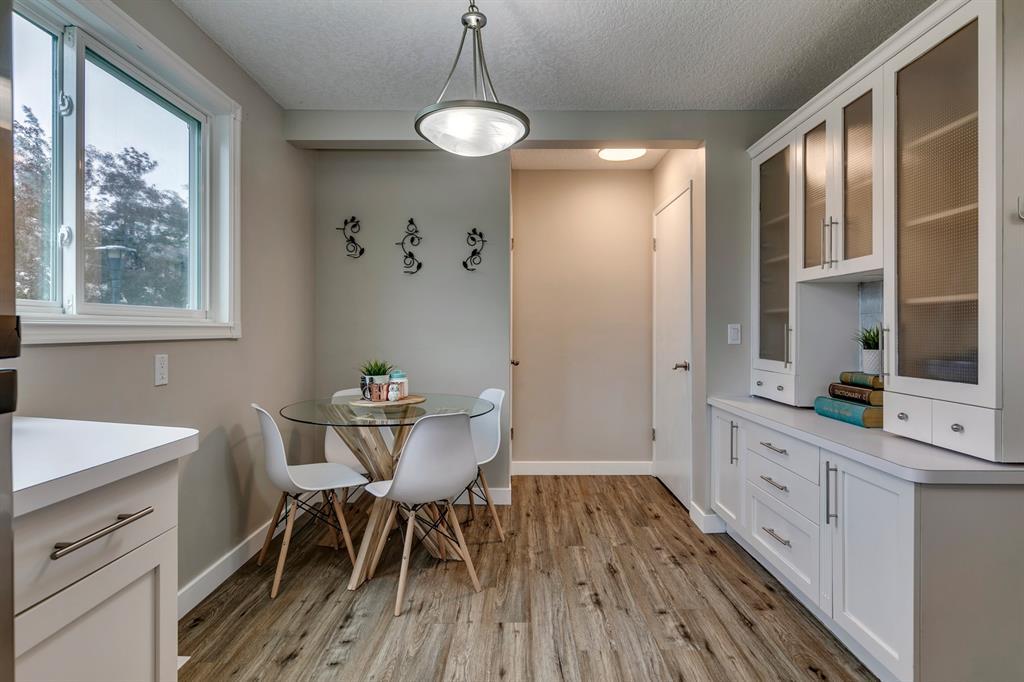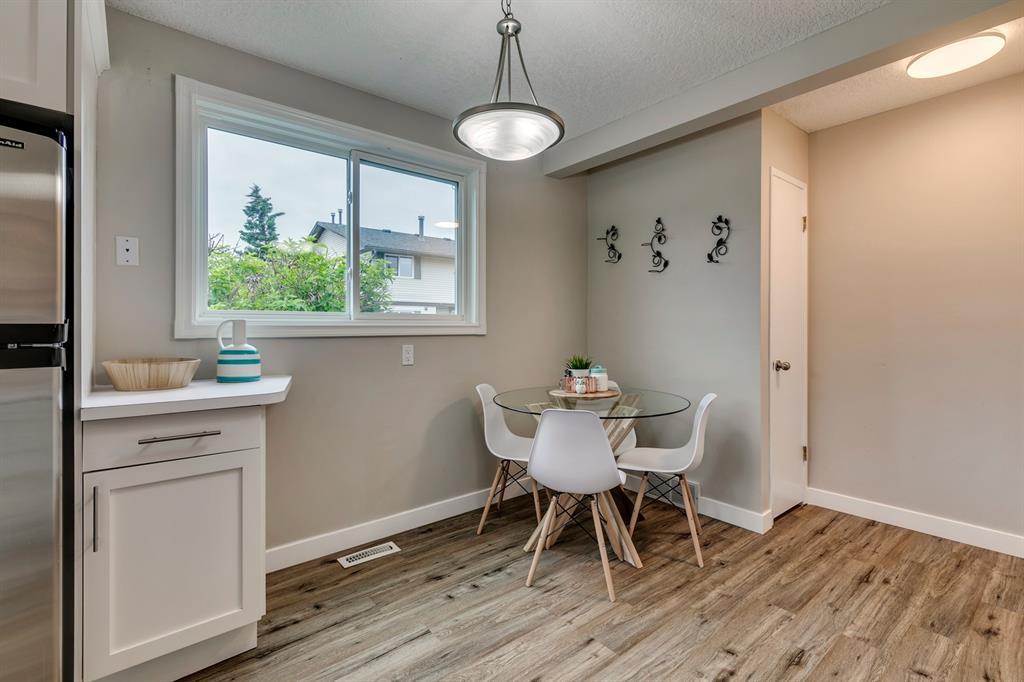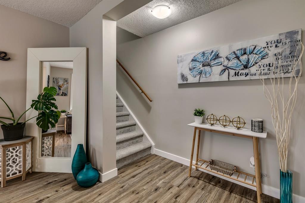 Nicely updated townhome in a pet-friendly complex in Braeside. This end-unit offers a spacious floor plan. You are greeted with a newly landscaped outdoor space with all new sod, gas hook up for BBQ, crush and fully fenced in (great for pets). You are greeted with a spacious foyer and new LVP flooring and knock down ceilings throughout the main floor. The eat-in kitchen features new countertops, stainless steel appliances, newly refinished white shaker door cabinetry including built-in hutch for necessary storage. A bright expansive living room is flooded with natural light and overlooks mature foliage. Main floor powder room is convenient and great for guests. Upstairs you will find a king-sized primary bedroom with walk-in closet, 2 generous bedrooms, updated 4-piece bathroom with new vanity, soaker tub with ceiling height marble tile. The lower level is fully developed with ample space for rec room + games area/play space, or home gym! Freshly painted home including doors, banisters and trim. Other recent upgrades: Carpet on second level, LVP flooring 2023, Hot water tank 2020. The complex has recently upgraded all vinyl fencing, windows (May 2023) and roof. This condo is move in ready and is steps away from local shopping complex, Braeside Park, and offers close proximity to all levels of schools, Southland Leisure Centre, Community Centre, Glenmore Reservoir, and ring road making the entire city easily accessible. (id:22211)