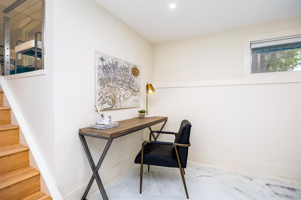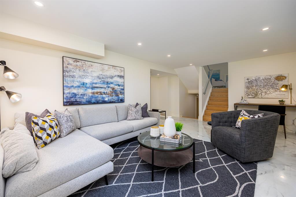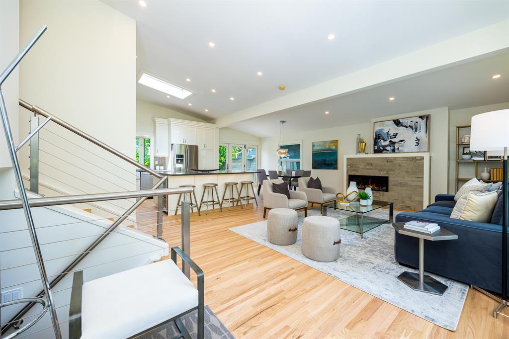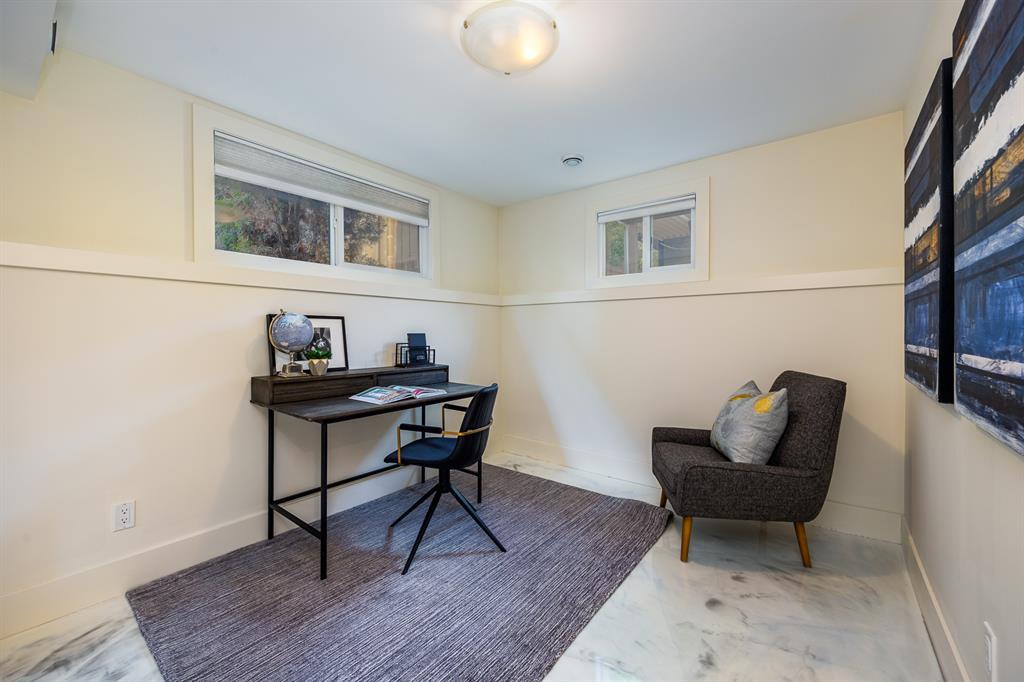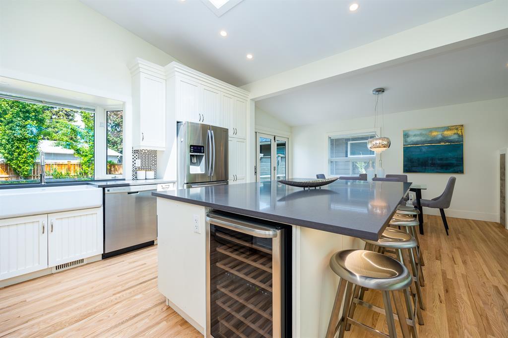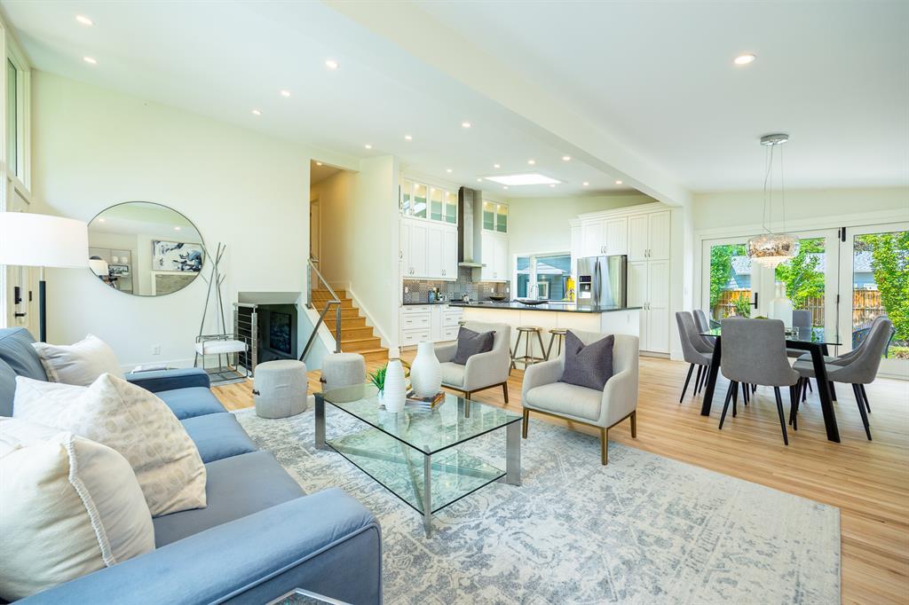 Modern and extensively updated, this bright and open (with over 2,400 sqft of developed space) four bedroom, four level split has it all. Sunlight pours in the huge windows and skylight (replaced in 2019) showcasing the vaulted ceilings and well appointed kitchen - enormous quartz island, extra under and in cupboard lighting, wine fridge and stainless steel appliances. Hardwood floors on the upper two levels, tile in the bathrooms (heated in the primary ensuite) and fabulously rich looking (and durable) polyurethane floors on the lower two levels. The dining area is complemented by a Tesoro folding door system so you can effectively blend indoors and outdoors. Major interior renovations in 2016 include two gas fireplaces with remotes, spray foam insulated vaulted ceiling with other component upgrades since - water softener (2017), HE furnace with DC motor & humidifier (2017), central A/C (quieter design), flooring refinish & painting (2023). Exterior updates in 2017 include Hardie board siding, Proslat wall trim in the garage, roof, eaves, and fencing (2018). Three full bathrooms - ensuite with dual sinks, bedrooms with closet organizers, and the lower floor rec room has another bar fridge plus a custom home gym area with a 10 mm glass door and rubber flooring. There's also a generous storage room so you have room for everything. Extra lighting in the soffits, front and rear, plus an oversized, insulated, and heated double garage (with 220V) round out the well landscaped backyard (two patio areas) with two gas lines. Full sprinkler system and paved back lane are a further bonus. Well loved by the community, there's a popular greenspace/dog park out front. This well cared for home is ready for it's next family, so book your private showing today. (id:22211)