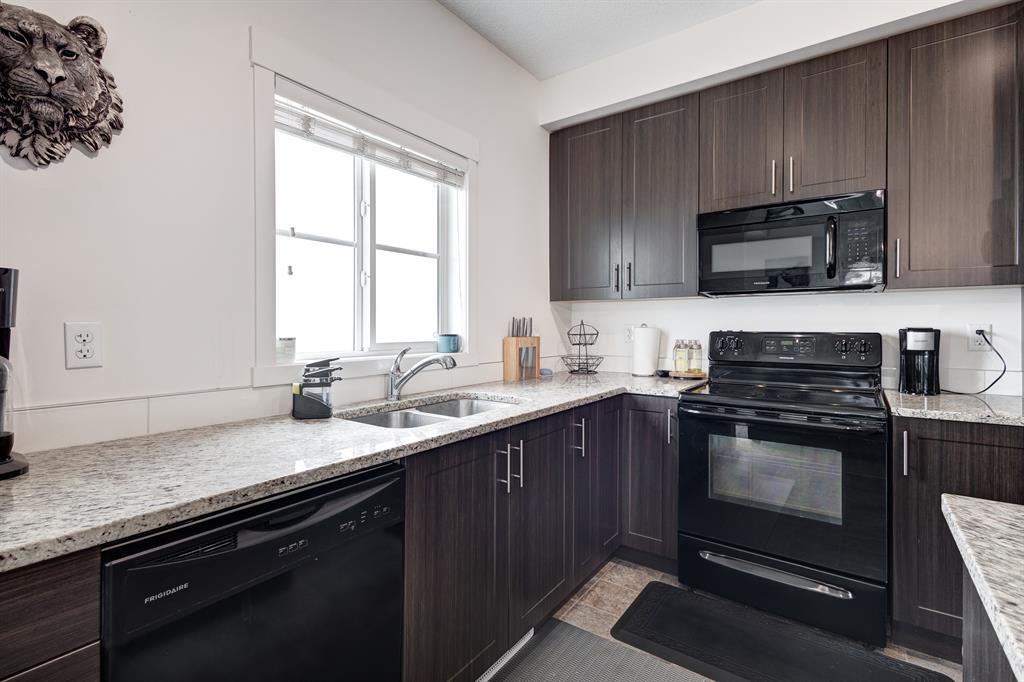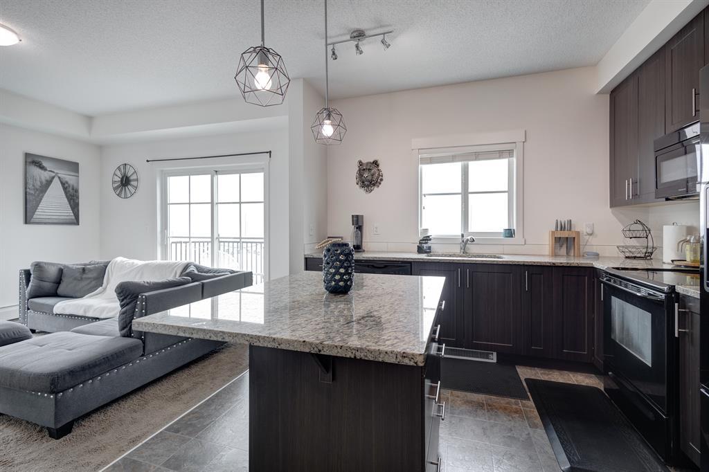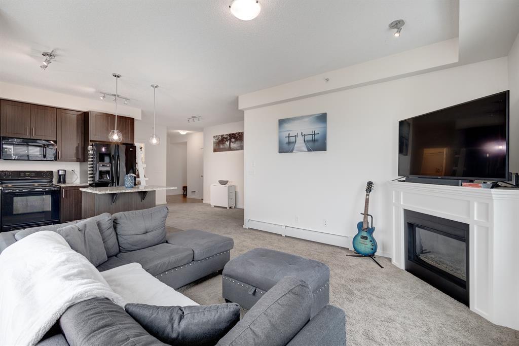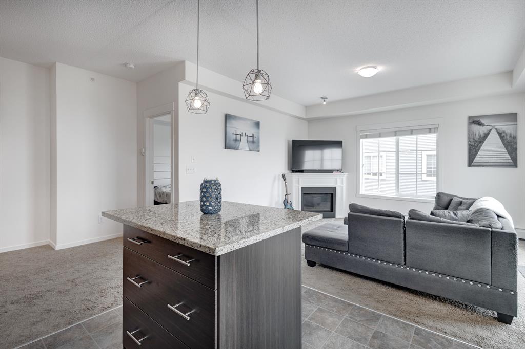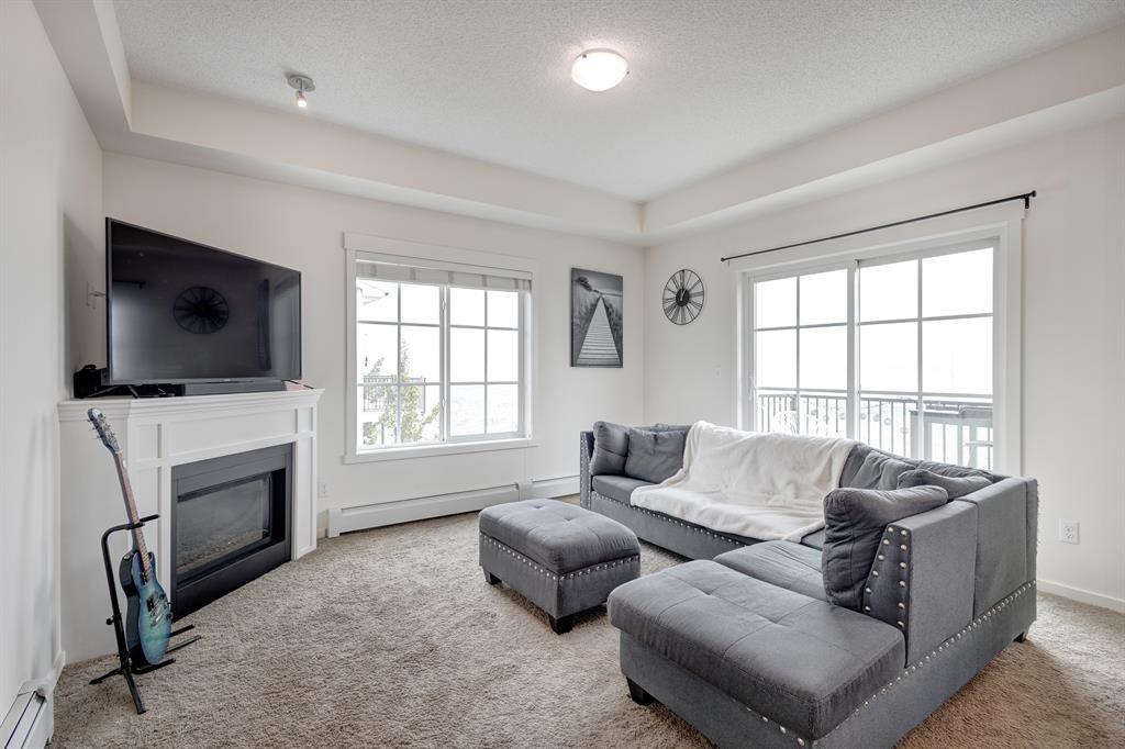 Beautiful views and maintenance-free living await in this gorgeous, move-in ready 2-bedroom, 2 bathroom 900+ sq. ft. TOP FLOOR, END UNIT. Classic brick exterior gives an immediate wow factor to the curb appeal. The stylishly decorated interior boasts Large windows and is flooded with natural light, designer details and a bright and airy open floor plan all kept cool by central air conditioning. Large windows on two sides flood the living room, dining room and kitchen with natural light. Culinary pursuits are inspired in the wide open kitchen with a plethora of full-height cabinets, granite counter tops and a centre island. Clear sightlines into the inviting living room and dining room allow for easy, unobstructed conversations with family and guests. Spend cool nights in front of the fireplace while extra windows that only a corner unit can provide, stream in sunshine throughout the day. Unwind on the adjacent balcony with your morning cup of joe or evening glass of wine with no back neighbours to spoil the view. The primary bedroom is also flooded with bright sunlight and features dual walk-through closets to your private ensuite. The 2nd bedroom is equally as impressive with easy access to the 4-piece main bathroom. In-suite laundry and one corner titled parking stall add to your comfort and convenience. Located in the wonderful community of Copperfield with skating rinks, tennis courts, an extremely active community centre with year-round events and activities, a copious number of parks, ponds and pathways and 2 neighbourhood shopping areas. When you do have to leave the community unlimited shopping and dining options are mere minutes away at South Trail Crossing and McKenzie Towne. Outdoor enthusiasts will love the close proximity to Fish Creek Park, Sicome Lake and a number of enviable golf courses. (id:22211)