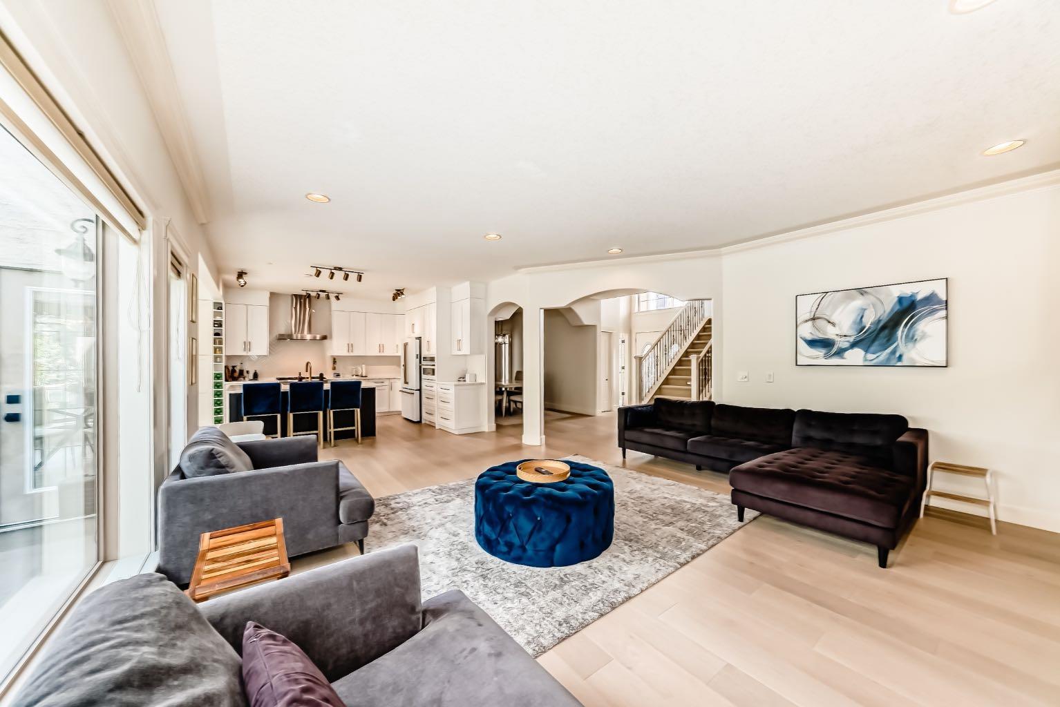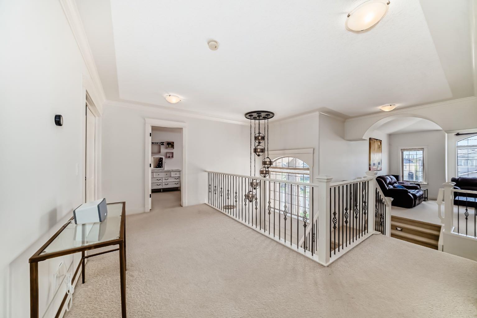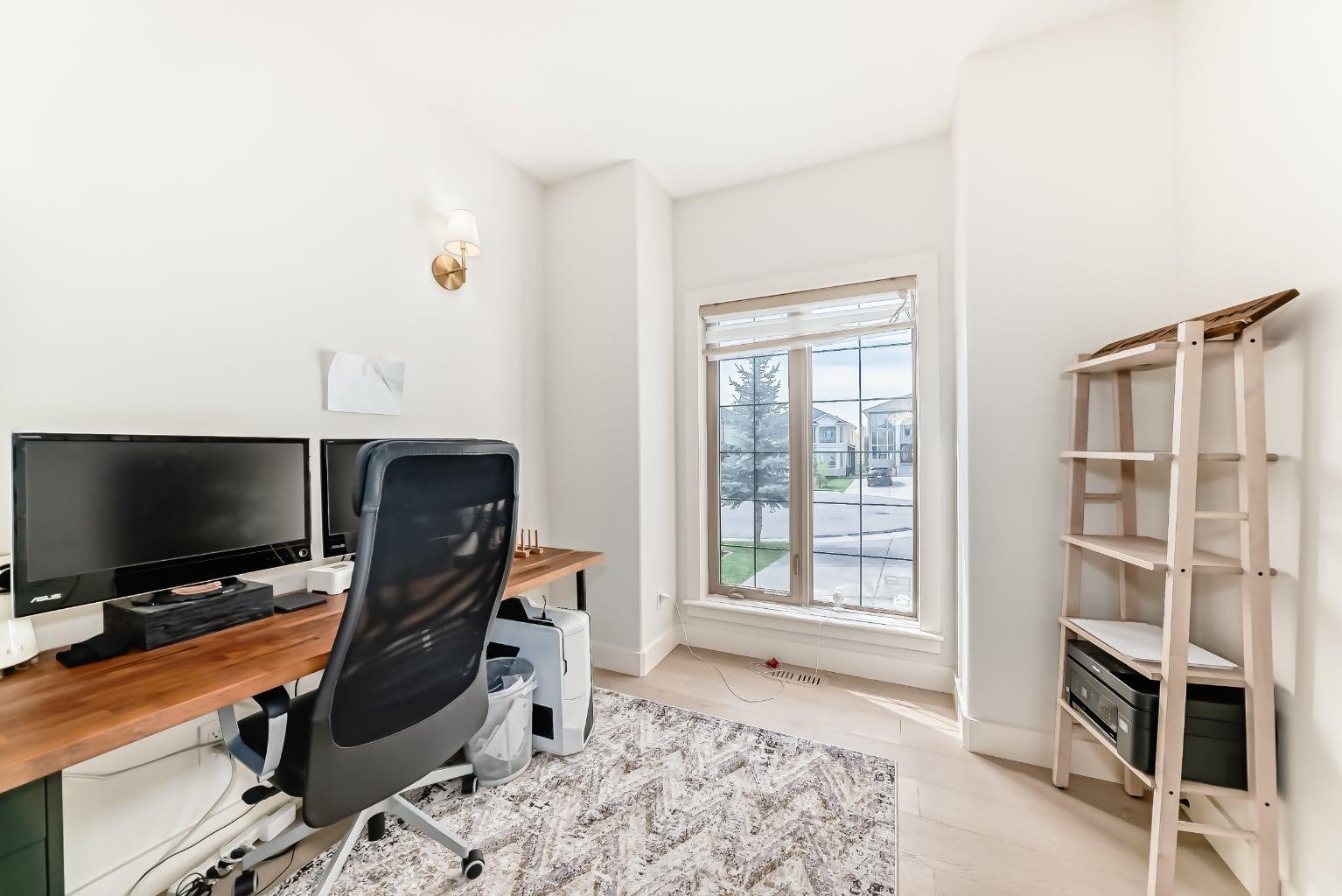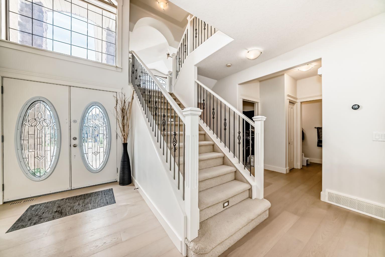 Welcome to this stunning 3,035 sqft above grade 2-storey home located at the end of a quiet cul-de-sac in the highly sought-after SW community of West Springs. This property backs directly onto a serene ravine and features a fully finished walkout to grade basement with a heated triple-car garage. With 5 bedrooms, 3.5 bathrooms and luxury finishes throughout, this home offers the perfect blend of comfort and sophistication. The main floor boasts rich hardwood flooring, a private office, a spacious dining room, and a gourmet kitchen outfitted with over $30,000 in brand-new GE Café appliances with Quartz countertops tops. The living room centers around a cozy gas fireplace, while the impressive laundry room features brand-new GE appliances, a built-in island, sink, and in-floor heating. Step out onto the expansive balcony, complete with a gas line for convenient summer BBQs. The property also features in home entertainment system in the basement, primary bedroom en-suite and kitchen. The bonus room has rough ins in place. Upstairs, you’ll find a vaulted-ceiling bonus room with a second gas fireplace, 3 large bedrooms, and a beautifully updated main bathroom. The luxurious primary suite offers his and hers walk-in closets and a spa-inspired ensuite with quartz countertops, in-floor heated tile, double sinks, a built-in makeup vanity with Quartz countertop, jetted tub, walk-in shower with double shower heads and a private toilet area. The walkout basement includes high ceilings, a spacious bedroom, a den that could be used as an additional bedroom, a dry bar with mini fridge, a full bathroom with heated flooring, and fully heated floors throughout the lower level with 2-zone control. Outside, enjoy a fully landscaped backyard oasis and unwind in the recently fully serviced hot tub and hassle free 2 zone irrigation system. This exceptional home combines premium location, stunning natural surroundings, and high-end upgrades—truly a rare find in West Springs ! Don’t miss out on this opportunity to own one of West Springs hottest properties.