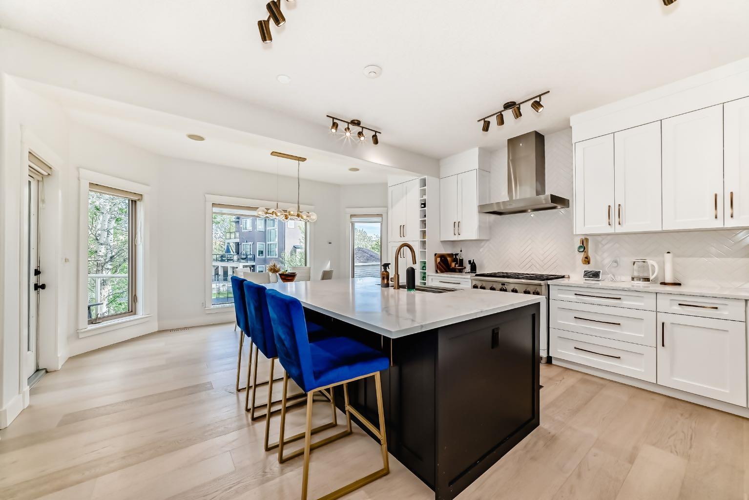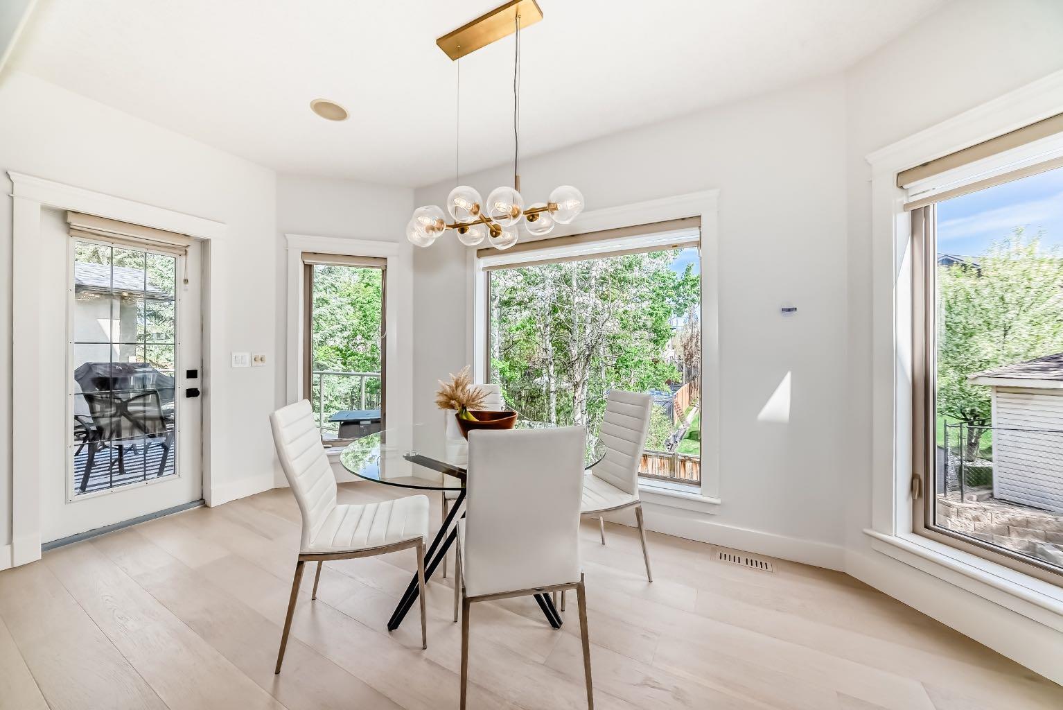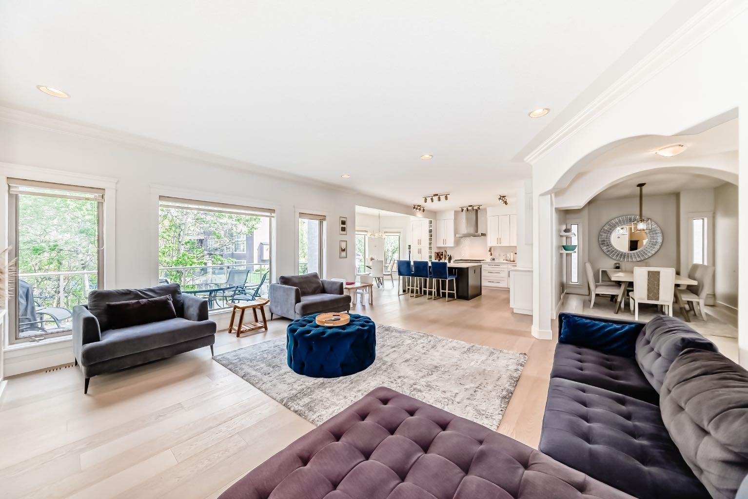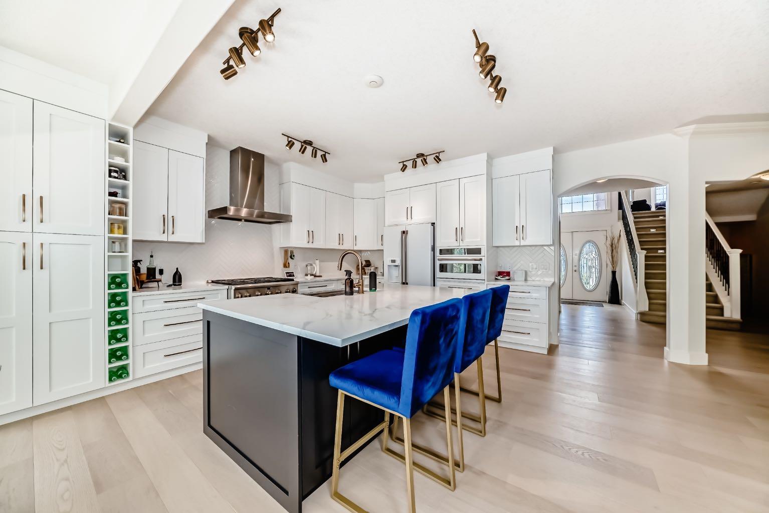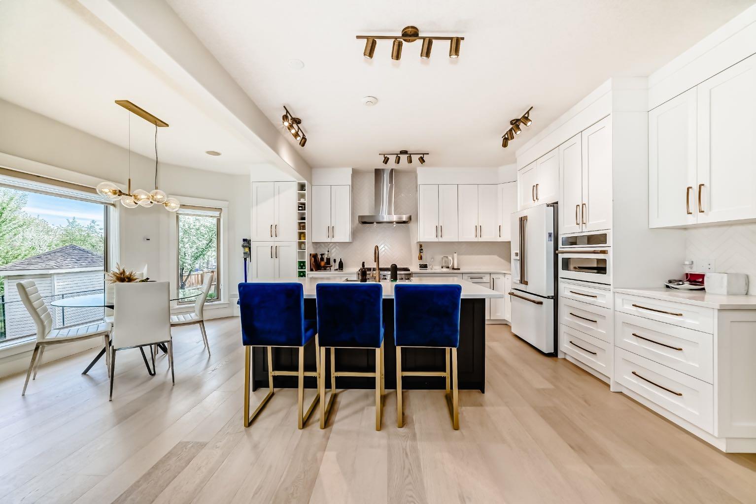 Welcome to this stunning 3,035 sqft above grade 2-storey home located at the end of a quiet cul-de-sac in the highly sought-after SW community of West Springs. This property backs directly onto a serene ravine and features a fully finished walkout to grade basement with a heated triple-car garage. With 5 bedrooms, 3.5 bathrooms and luxury finishes throughout, this home offers the perfect blend of comfort and sophistication. The main floor boasts rich hardwood flooring, a private office, a spacious dining room, and a gourmet kitchen outfitted with over $30,000 in brand-new GE Café appliances with Quartz countertops tops. The living room centers around a cozy gas fireplace, while the impressive laundry room features brand-new GE appliances, a built-in island, sink, and in-floor heating. Step out onto the expansive balcony, complete with a gas line for convenient summer BBQs. The property also features in home entertainment system in the basement, primary bedroom en-suite and kitchen. The bonus room has rough ins in place. Upstairs, you’ll find a vaulted-ceiling bonus room with a second gas fireplace, 3 large bedrooms, and a beautifully updated main bathroom. The luxurious primary suite offers his and hers walk-in closets and a spa-inspired ensuite with quartz countertops, in-floor heated tile, double sinks, a built-in makeup vanity with Quartz countertop, jetted tub, walk-in shower with double shower heads and a private toilet area. The walkout basement includes high ceilings, a spacious bedroom, a den that could be used as an additional bedroom, a dry bar with mini fridge, a full bathroom with heated flooring, and fully heated floors throughout the lower level with 2-zone control. Outside, enjoy a fully landscaped backyard oasis and unwind in the recently fully serviced hot tub and hassle free 2 zone irrigation system. This exceptional home combines premium location, stunning natural surroundings, and high-end upgrades—truly a rare find in West Springs ! Don’t miss out on this opportunity to own one of West Springs hottest properties.