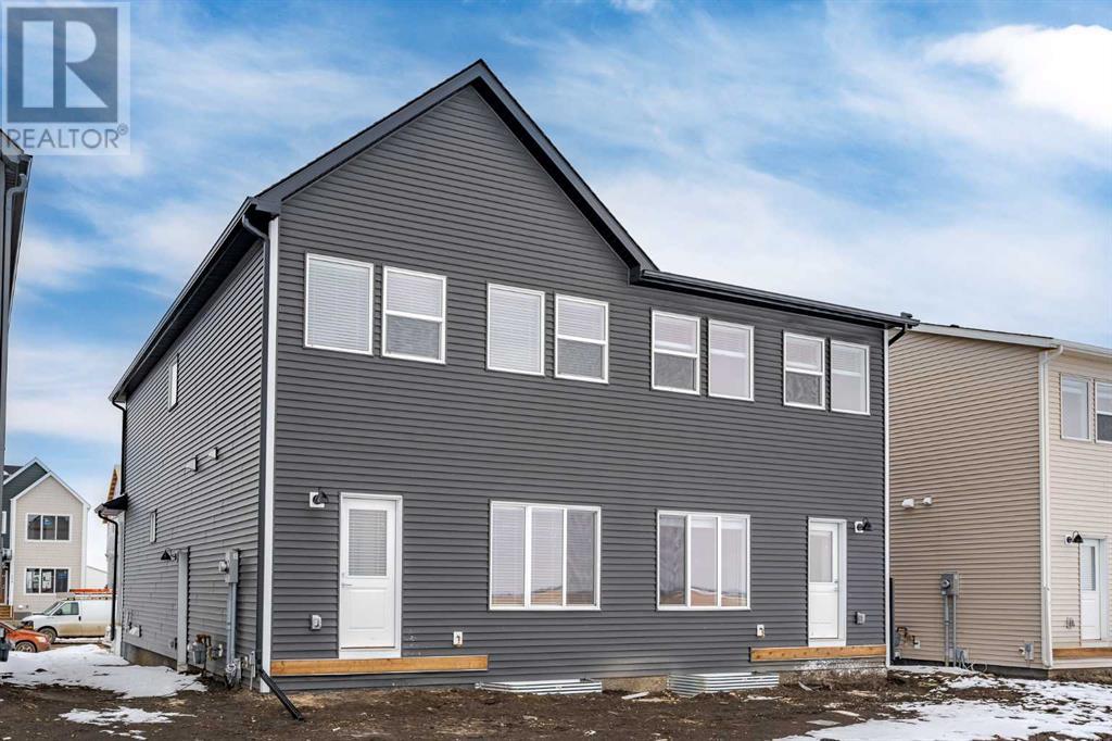 Welcome to this Brand New Home situated in the highly coveted SE COMMUNITY of Rangeview where OPPORTUNITY KNOCKS for SAVVY INVESTORS!Great INCOME POTENTIAL /MORTGAGE HELPER for the new homeowner! This OUTSTANDING SUITED ATTACHED RESIDENCE was developed to the FINEST STANDARDS AND HIGHEST QUALITY with a FULLY DEVELOPED LOWER -LEGAL SECONDARY SUITE- LIVE UP AND RENT DOWN MORTGAGE HELPER, NANNY OR IN-LAW SUITE! The UPPER LEVEL boasts 3 BEDROOMS, while the LOWER LEVEL features a ONE-BEDROOM LEGAL BASEMENT SUITE. With 9' HIGH CEILINGS and ABUNDANT WINDOWS, the main level is flooded with natural light, complemented by lighter HIGH-END FINISHES. The MAIN FLOOR showcases LUXURY VINYL FLOORING from the LIVING ROOM to the DINING ROOM, paired with CERAMIC TILE IN the entryways and a 2-PIECE BATHROOM. The KITCHEN IS A CHEF'S PARADISE, featuring STAINLESS STEEL APPLIANCES, MODERN CABINETRY and QUARTZ COUNTERTOPS. A spacious CENTER ISLAND area providing ample space for culinary endeavors. Carpeted stairs lead to the SECOND FLOOR featuring an additional LIVING AREA/FAMILY ROOM, 3 BEDROOMS, A 4-PIECE BATHROOM AND A CONVENIENT LAUNDRY ROOM. The MASTER BEDROOM boasts a KNOCKDOWN CEILING, a generous WALK-IN CLOSET, and a 4-PIECE ENSUITE. The LEGAL SECONDARY SUITE, ACCESSIBLE FROM THE SIDE OF THE DUPLEX VIA A CEMENT WALKWAY, mirrors the stylish finishes found on the upper level. TALL CEILINGS, VINYL FLOORS AND A MODERN KITCHEN create an inviting and airy ambiance. Your own FRONT LOAD WASHER AND DRYER ARE discreetly placed next to a 4-PIECE BATHROOM. Step outside into the SPACIOUS BACKYARD, where you will also be pleased to find a DETACHED ,DOUBLE CAR GARAGE (to be built) with access through the backside alley. Enjoy the convenience of this EXCELLENT LOCATION, close to Schools, the South Calgary Health Campus (Hospital), Shopping, Amenities, and MAJOR ROADWAYS. Don't miss the chance to seize this INVESTMENT OPPORTUNITY in Rangeview, where legal sophistication meets semi-detached charm! (id:22211)
