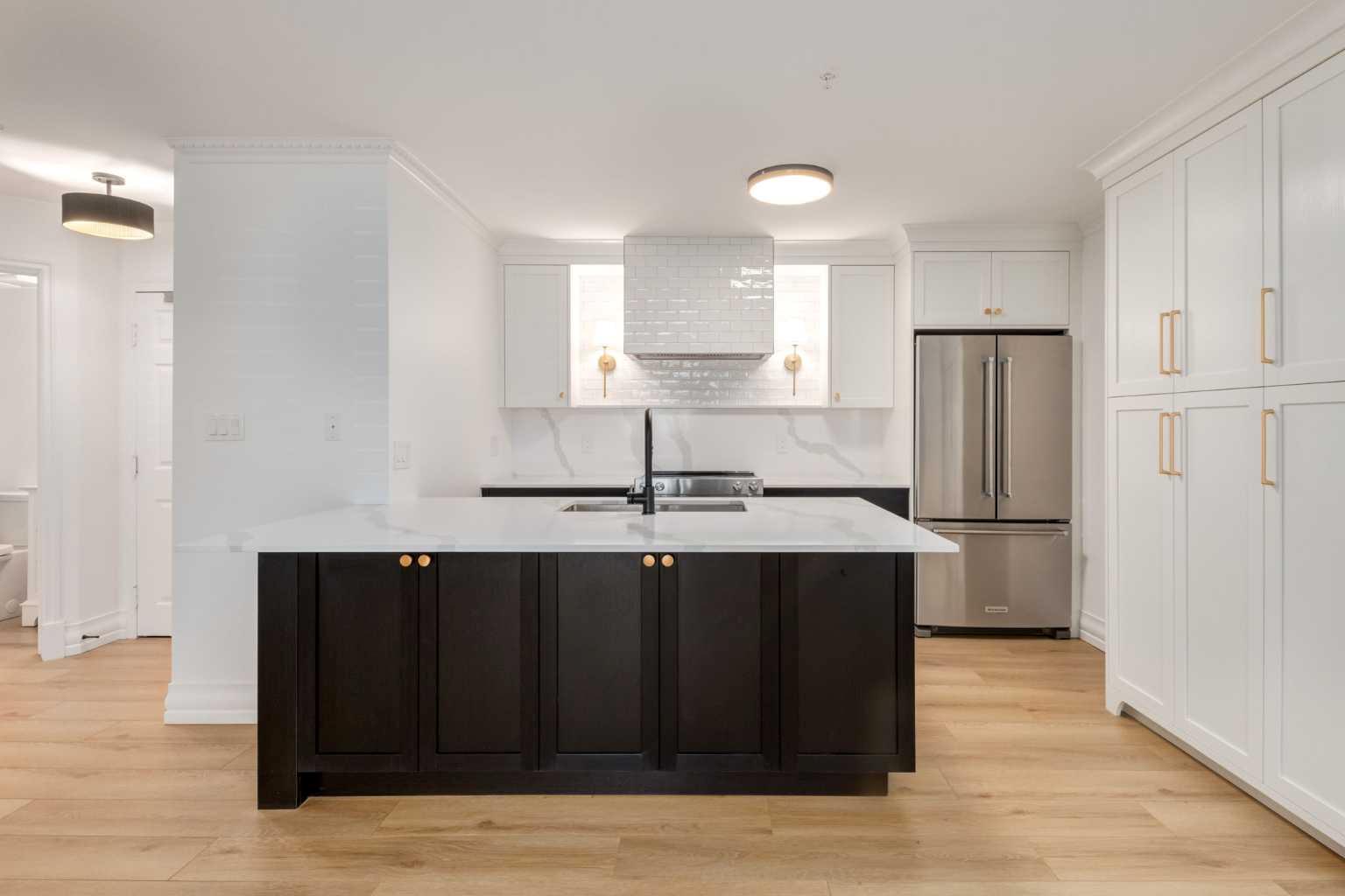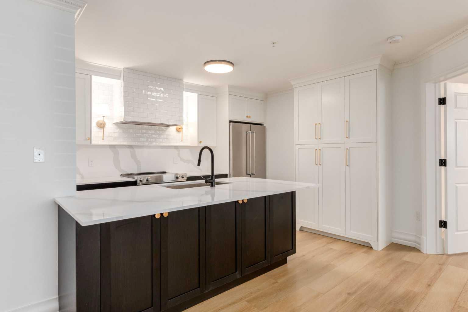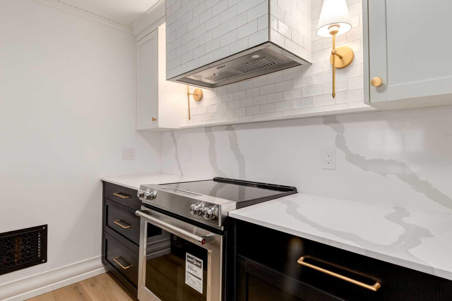 Step inside to discover an open-concept living space filled with natural light, complemented by high ceilings and large windows. The well-appointed kitchen features sleek custom kitchen cabinetry, quartz counters and backsplash, new stainless steel appliances, and a generous island, perfect for casual dining and entertaining.