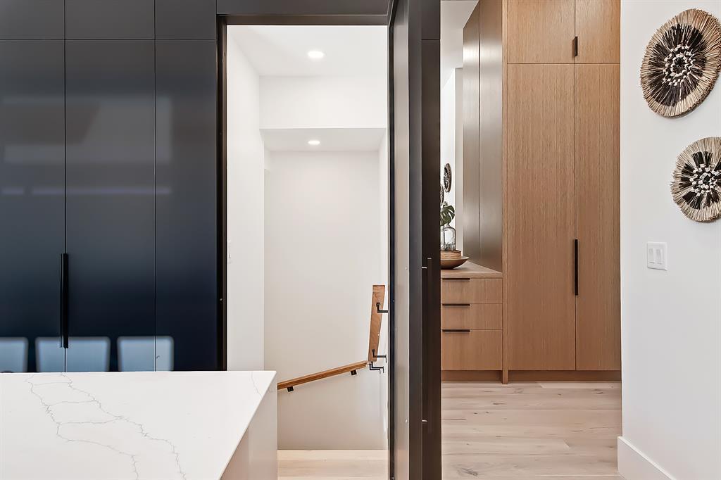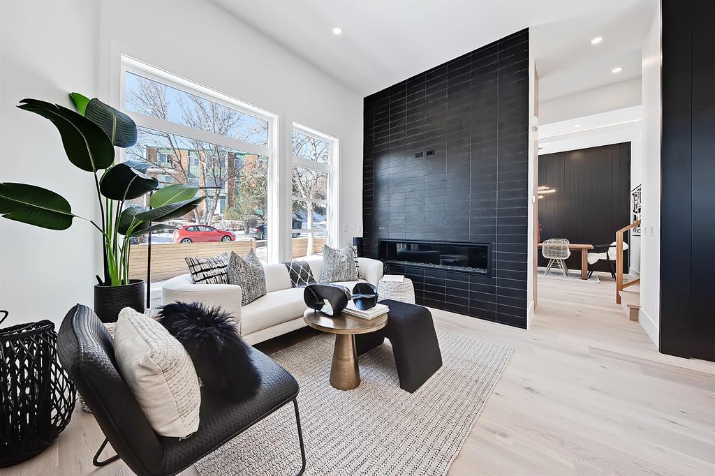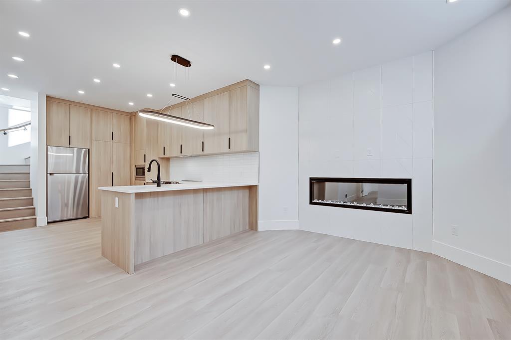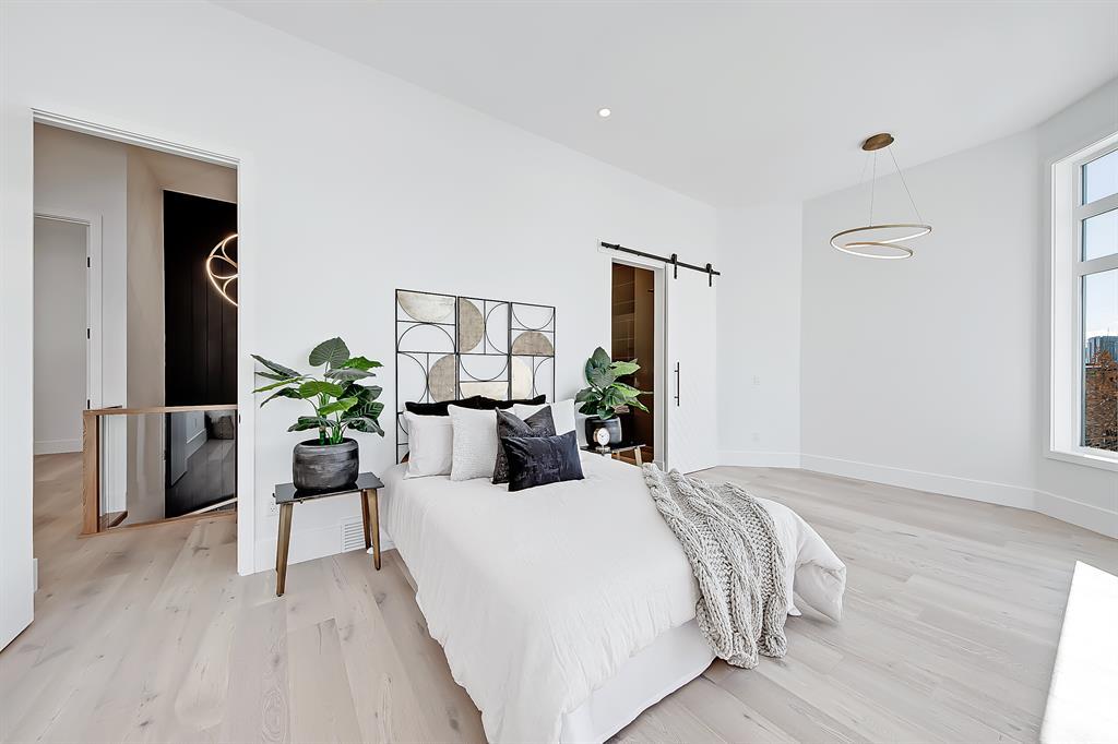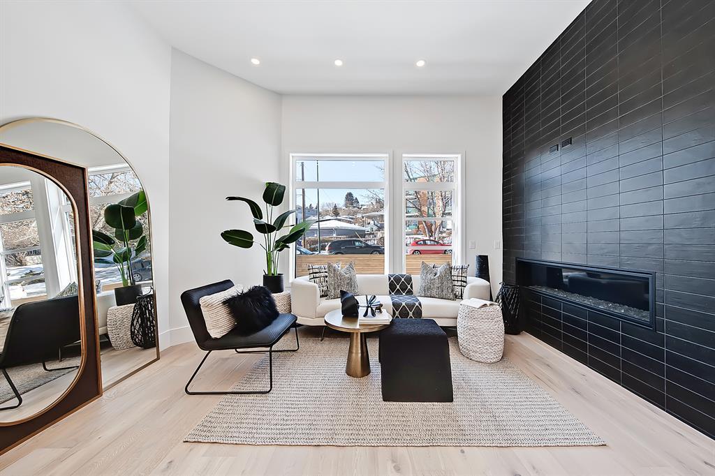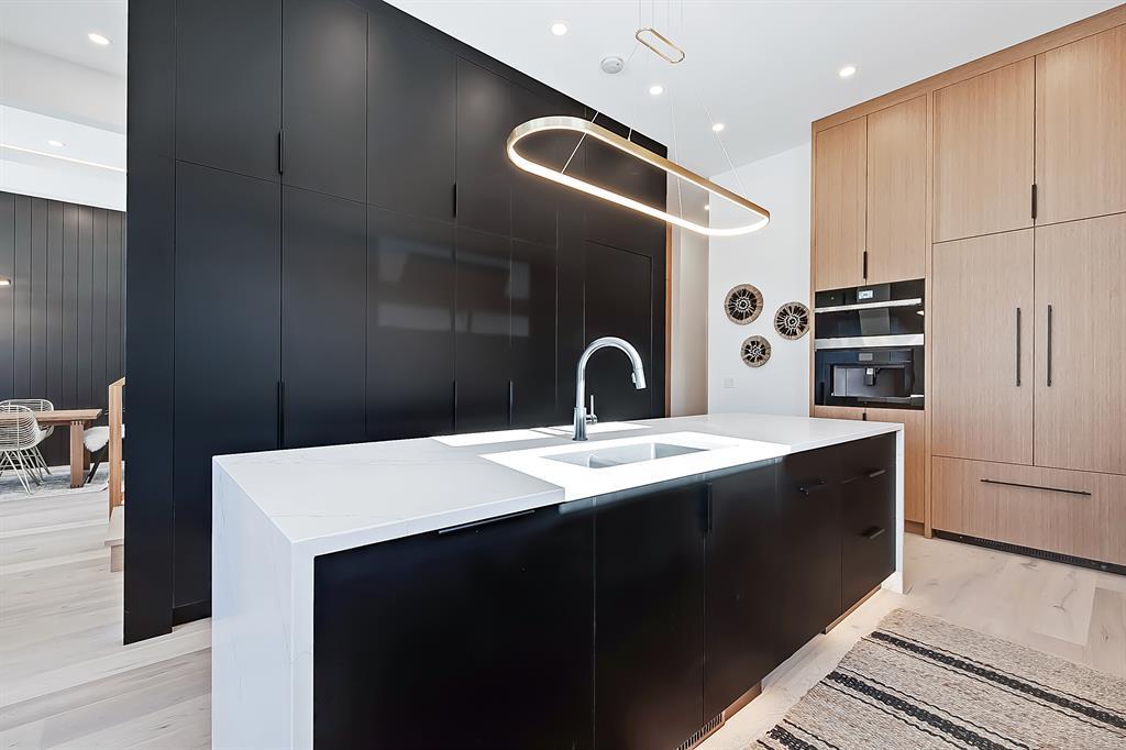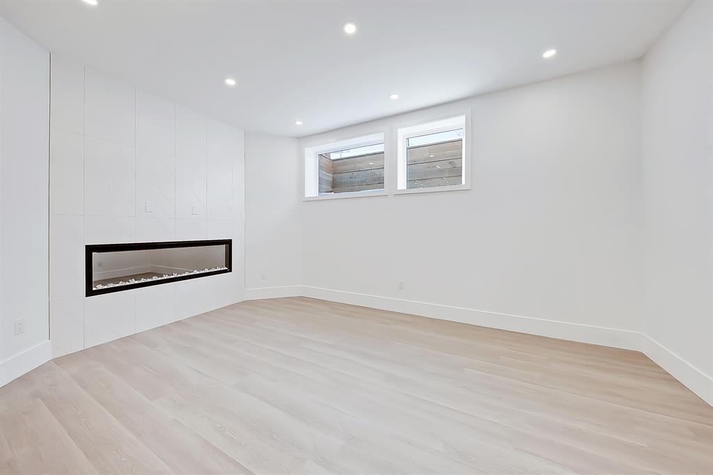MOVE IN READY! This opulent DETACHED home on a 50’ x 110’ PIE SHAPED LOT w/ a LEGAL 2 BEDROOM BASEMENT SUITE, SOUTH BACKYARD, & DOWNTOWN VIEWS in BRIDGELAND is a modern masterpiece, brought to you by Le Riva Homes! Boasting over 3,400 sq ft across all levels, a lavish exterior & elegant interior finishes & upgrades all come together in this modern home, starting w/ the main floor. The main floor features exclusive 7” wide plank engineered white oak hardwood floors, 11-ft ceilings, & a OVERSIZED DOUBLE ATTACHED GARAGE. The chef-inspired kitchen centers on a 10-ft oversized island & has upgraded appliances, including a gas range, a panelled fridge/freezer, & a built-in coffee machine. Quartz counters sit alongside an elegant white porcelain backsplash w/ two-tone cabinetry for a highly modern, luxury aesthetic. The formal dining room enjoys a lavish feel w/ a dropped ceiling w/ LED accent lights, a black ink feature wall, & a designer chandelier. After dinner, relax in the great room around the Napoleon gas fireplace w/ white porcelain surround. Use the main floor bedroom for guests or a home office, w/ its built-in study desk & cabinetry. The main bath is also convenient for guests, fully equipped w/ two-tone cabinetry, Vicostone quartz counter, & walk-in shower w/ full-height bevelled subway tile surround. Upstairs, the modern luxury continues w/ 11-ft ceilings in the master & 2x bedrooms, w/ 10-ft ceilings in the living room. The dreamy master suite has an opulent ensuite w/ a free-standing soaker tub w/ stone feature wall, a walk-in steam shower w/ stone surround, a dual vanity, & natural stone flooring. The attached walk-in closet is straight out of the movies w/ custom built-in shelving, hanging storage, drawers, & more. 3x extra bedrooms also reside upstairs, along w/ 2x full bathrooms, a family room w/ access to the rear deck w/ DOWNTOWN VIEWS, & a fully equipped laundry room w/ a linen tower & sink. The legal basement suite is just as modern & chic as the res t of the home & has a private entrance & separate parking space. This level provides options for extra rec space, a mother-in-law suite, or an avenue for revenue. A fully equipped two-tone kitchenette w/ a slide-in range, fridge/freezer, dishwasher, & wall microwave is at the heart of the suite, & expands into a rec room w/ Napoleon electric fireplace w/ full-height stone-like surround, two bedrooms, & a full bathroom. **The upgraded features are too vast to list, VISIT MULTIMEDIA LINKS FOR VIDEO WALKTHROUGH!** (id:22211)