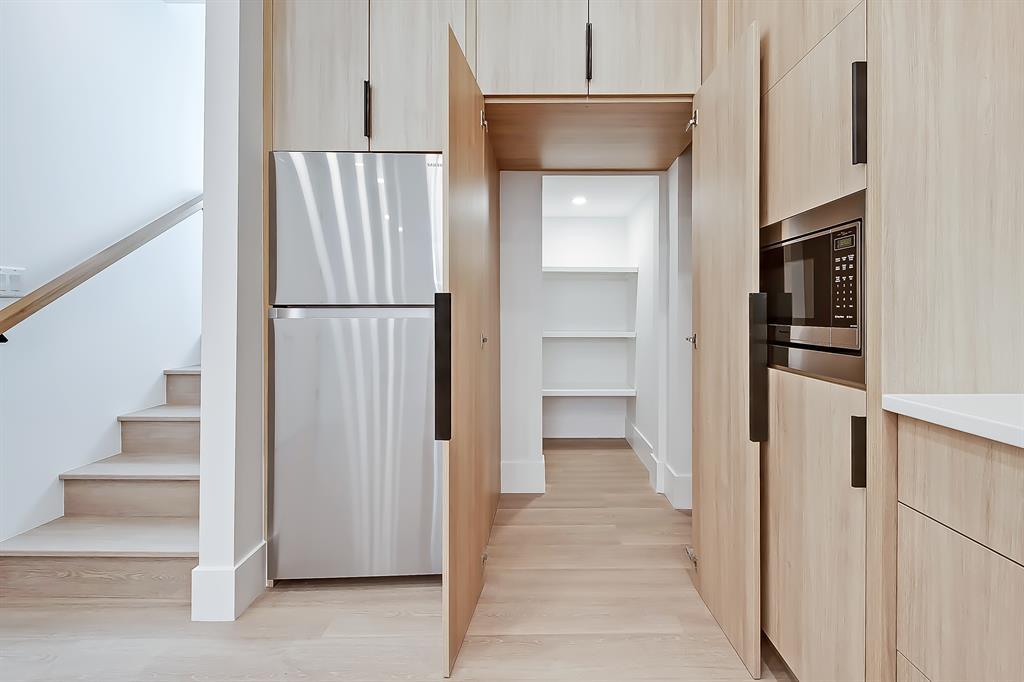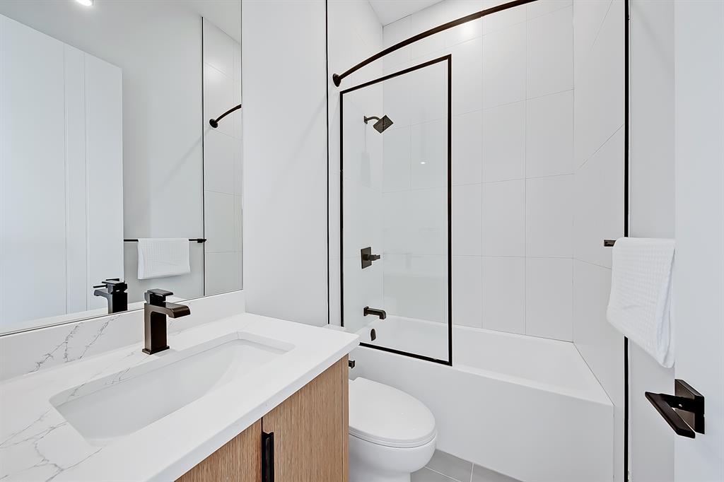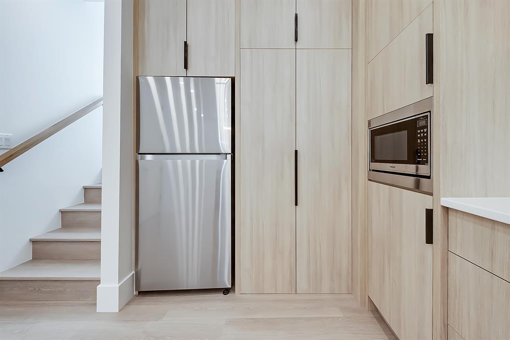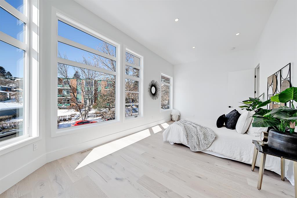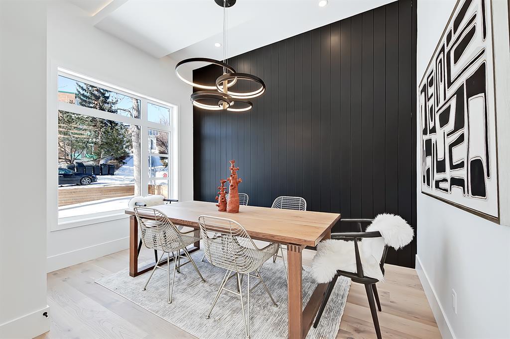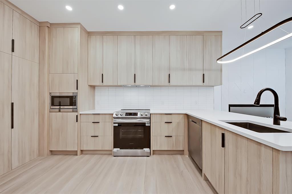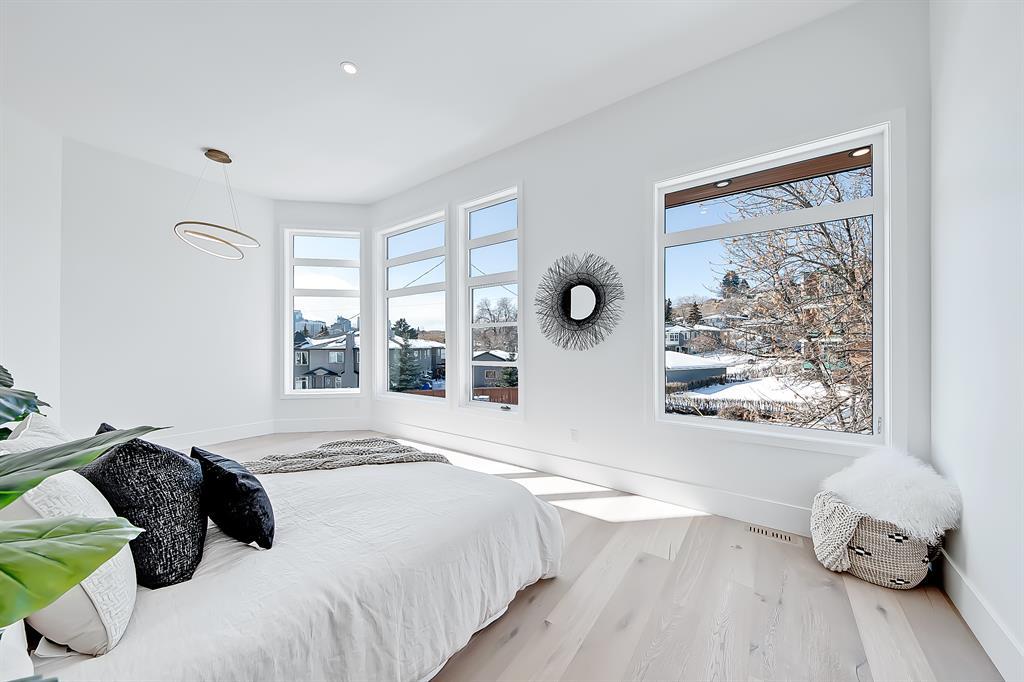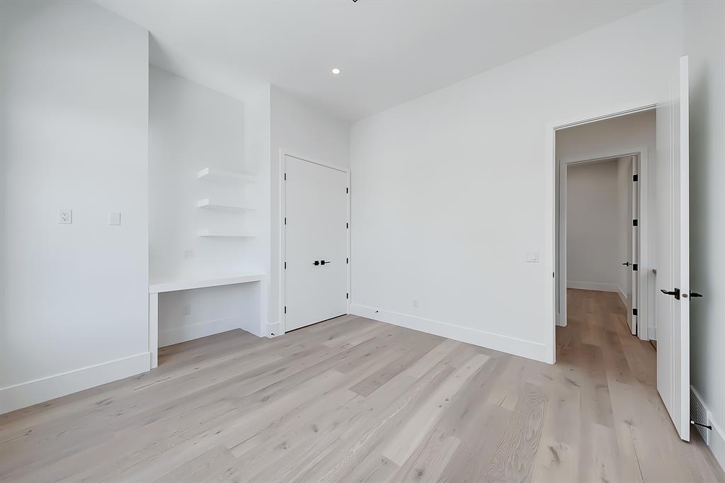 MOVE IN READY! This opulent DETACHED home on a 50’ x 110’ PIE SHAPED LOT w/ a LEGAL 2 BEDROOM BASEMENT SUITE, SOUTH BACKYARD, & DOWNTOWN VIEWS in BRIDGELAND is a modern masterpiece, brought to you by Le Riva Homes! Boasting over 3,400 sq ft across all levels, a lavish exterior & elegant interior finishes & upgrades all come together in this modern home, starting w/ the main floor. The main floor features exclusive 7” wide plank engineered white oak hardwood floors, 11-ft ceilings, & a OVERSIZED DOUBLE ATTACHED GARAGE. The chef-inspired kitchen centers on a 10-ft oversized island & has upgraded appliances, including a gas range, a panelled fridge/freezer, & a built-in coffee machine. Quartz counters sit alongside an elegant white porcelain backsplash w/ two-tone cabinetry for a highly modern, luxury aesthetic. The formal dining room enjoys a lavish feel w/ a dropped ceiling w/ LED accent lights, a black ink feature wall, & a designer chandelier. After dinner, relax in the great room around the Napoleon gas fireplace w/ white porcelain surround. Use the main floor bedroom for guests or a home office, w/ its built-in study desk & cabinetry. The main bath is also convenient for guests, fully equipped w/ two-tone cabinetry, Vicostone quartz counter, & walk-in shower w/ full-height bevelled subway tile surround. Upstairs, the modern luxury continues w/ 11-ft ceilings in the master & 2x bedrooms, w/ 10-ft ceilings in the living room. The dreamy master suite has an opulent ensuite w/ a free-standing soaker tub w/ stone feature wall, a walk-in steam shower w/ stone surround, a dual vanity, & natural stone flooring. The attached walk-in closet is straight out of the movies w/ custom built-in shelving, hanging storage, drawers, & more. 3x extra bedrooms also reside upstairs, along w/ 2x full bathrooms, a family room w/ access to the rear deck w/ DOWNTOWN VIEWS, & a fully equipped laundry room w/ a linen tower & sink. The legal basement suite is just as modern & chic as the res t of the home & has a private entrance & separate parking space. This level provides options for extra rec space, a mother-in-law suite, or an avenue for revenue. A fully equipped two-tone kitchenette w/ a slide-in range, fridge/freezer, dishwasher, & wall microwave is at the heart of the suite, & expands into a rec room w/ Napoleon electric fireplace w/ full-height stone-like surround, two bedrooms, & a full bathroom. **The upgraded features are too vast to list, VISIT MULTIMEDIA LINKS FOR VIDEO WALKTHROUGH!** (id:22211)