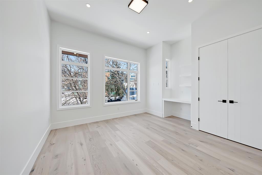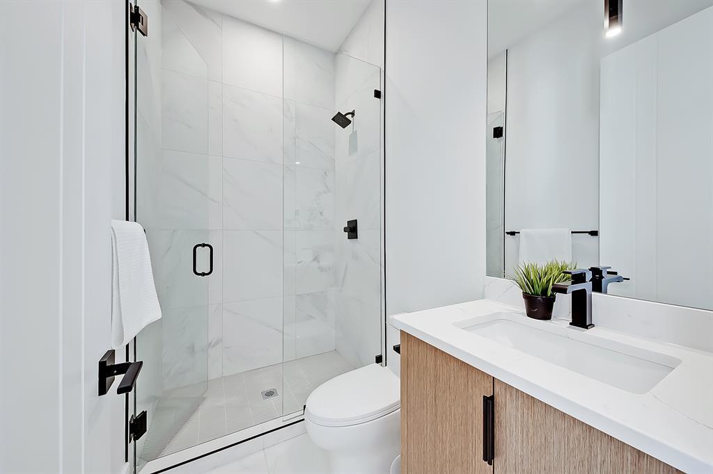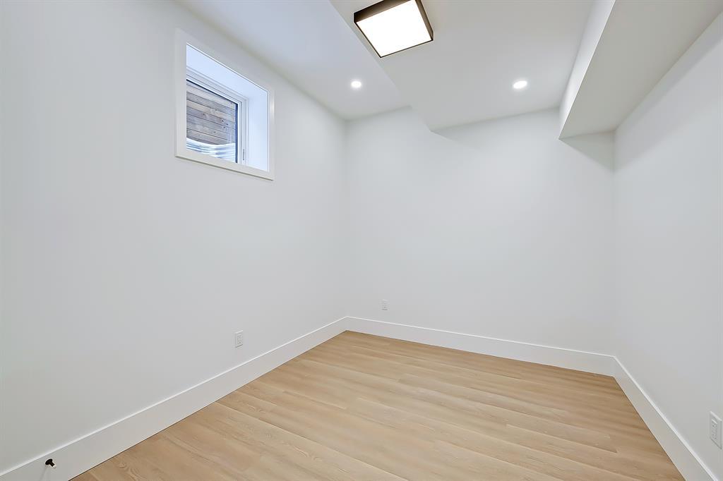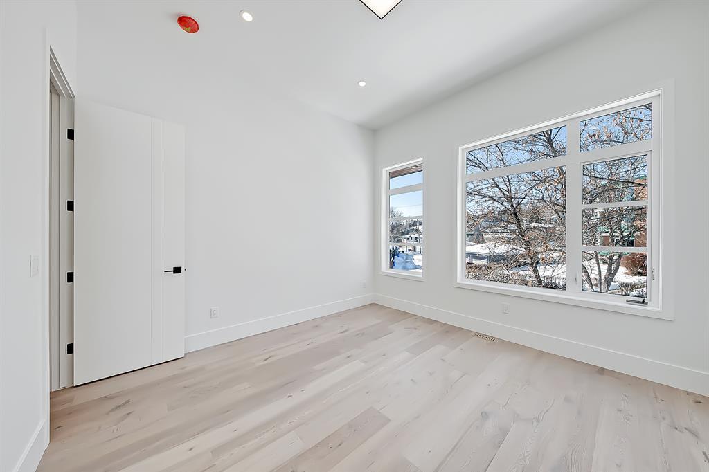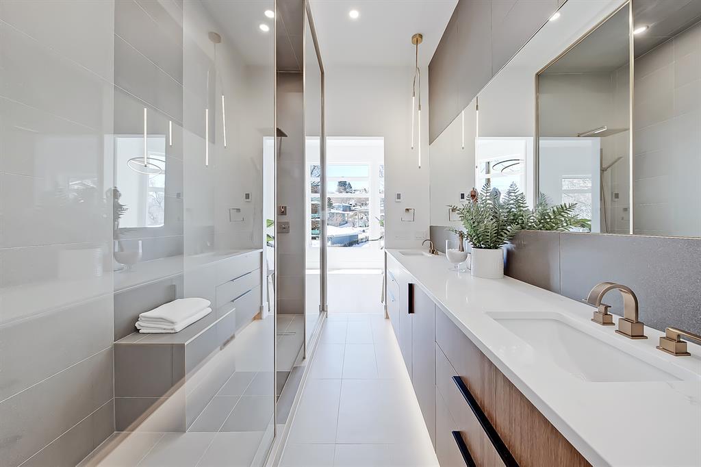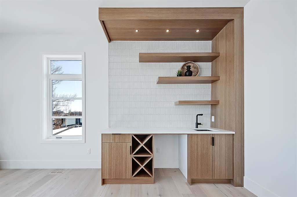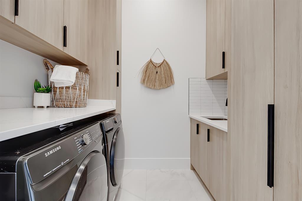 MOVE IN READY! This opulent DETACHED home on a 50’ x 110’ PIE SHAPED LOT w/ a LEGAL 2 BEDROOM BASEMENT SUITE, SOUTH BACKYARD, & DOWNTOWN VIEWS in BRIDGELAND is a modern masterpiece, brought to you by Le Riva Homes! Boasting over 3,400 sq ft across all levels, a lavish exterior & elegant interior finishes & upgrades all come together in this modern home, starting w/ the main floor. The main floor features exclusive 7” wide plank engineered white oak hardwood floors, 11-ft ceilings, & a OVERSIZED DOUBLE ATTACHED GARAGE. The chef-inspired kitchen centers on a 10-ft oversized island & has upgraded appliances, including a gas range, a panelled fridge/freezer, & a built-in coffee machine. Quartz counters sit alongside an elegant white porcelain backsplash w/ two-tone cabinetry for a highly modern, luxury aesthetic. The formal dining room enjoys a lavish feel w/ a dropped ceiling w/ LED accent lights, a black ink feature wall, & a designer chandelier. After dinner, relax in the great room around the Napoleon gas fireplace w/ white porcelain surround. Use the main floor bedroom for guests or a home office, w/ its built-in study desk & cabinetry. The main bath is also convenient for guests, fully equipped w/ two-tone cabinetry, Vicostone quartz counter, & walk-in shower w/ full-height bevelled subway tile surround. Upstairs, the modern luxury continues w/ 11-ft ceilings in the master & 2x bedrooms, w/ 10-ft ceilings in the living room. The dreamy master suite has an opulent ensuite w/ a free-standing soaker tub w/ stone feature wall, a walk-in steam shower w/ stone surround, a dual vanity, & natural stone flooring. The attached walk-in closet is straight out of the movies w/ custom built-in shelving, hanging storage, drawers, & more. 3x extra bedrooms also reside upstairs, along w/ 2x full bathrooms, a family room w/ access to the rear deck w/ DOWNTOWN VIEWS, & a fully equipped laundry room w/ a linen tower & sink. The legal basement suite is just as modern & chic as the res t of the home & has a private entrance & separate parking space. This level provides options for extra rec space, a mother-in-law suite, or an avenue for revenue. A fully equipped two-tone kitchenette w/ a slide-in range, fridge/freezer, dishwasher, & wall microwave is at the heart of the suite, & expands into a rec room w/ Napoleon electric fireplace w/ full-height stone-like surround, two bedrooms, & a full bathroom. **The upgraded features are too vast to list, VISIT MULTIMEDIA LINKS FOR VIDEO WALKTHROUGH!** (id:22211)