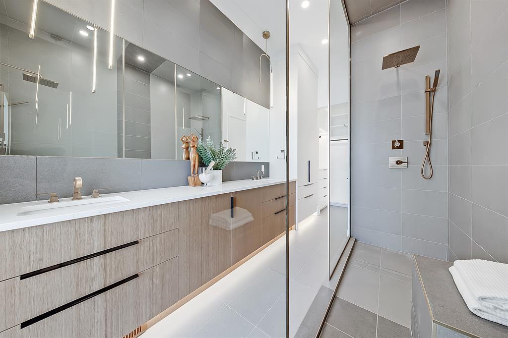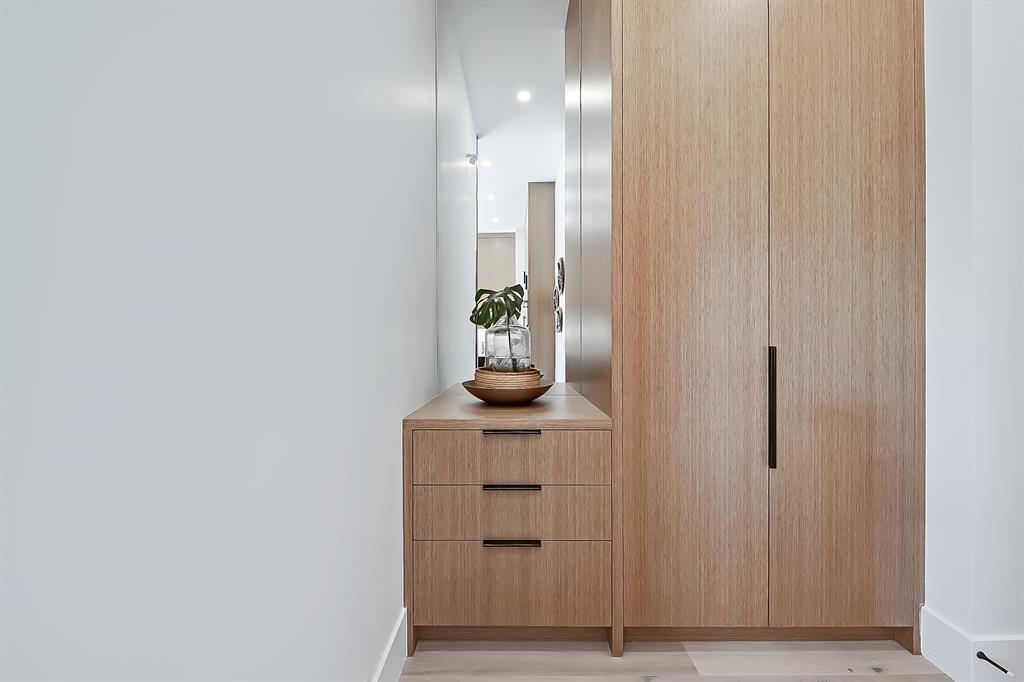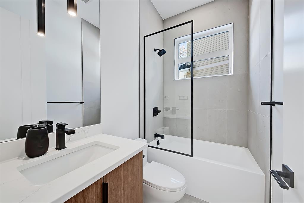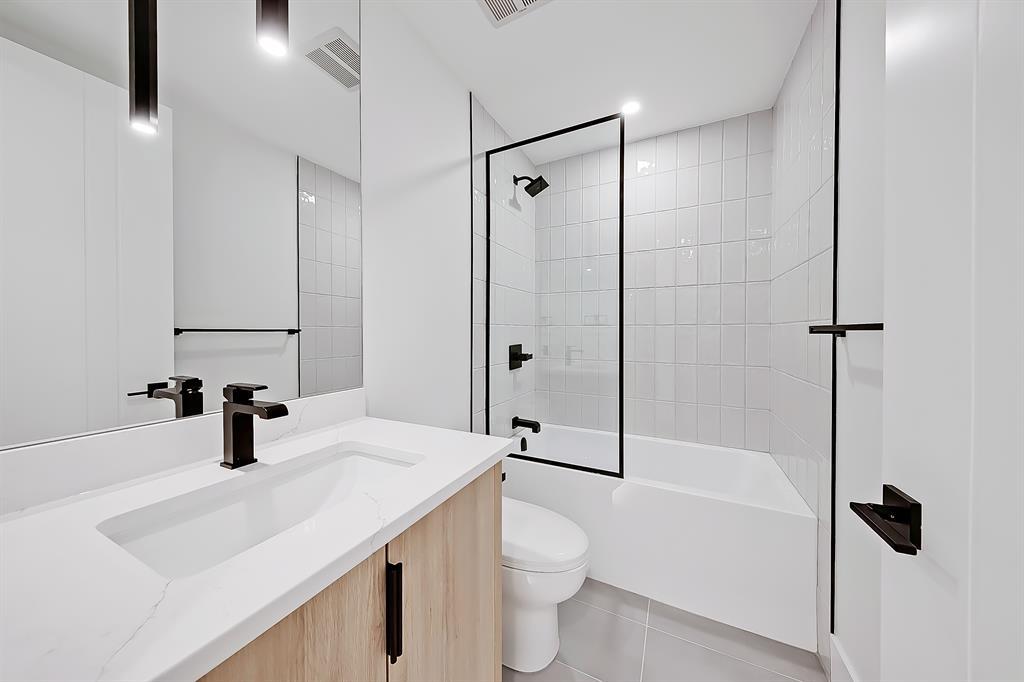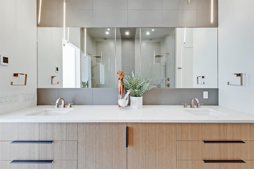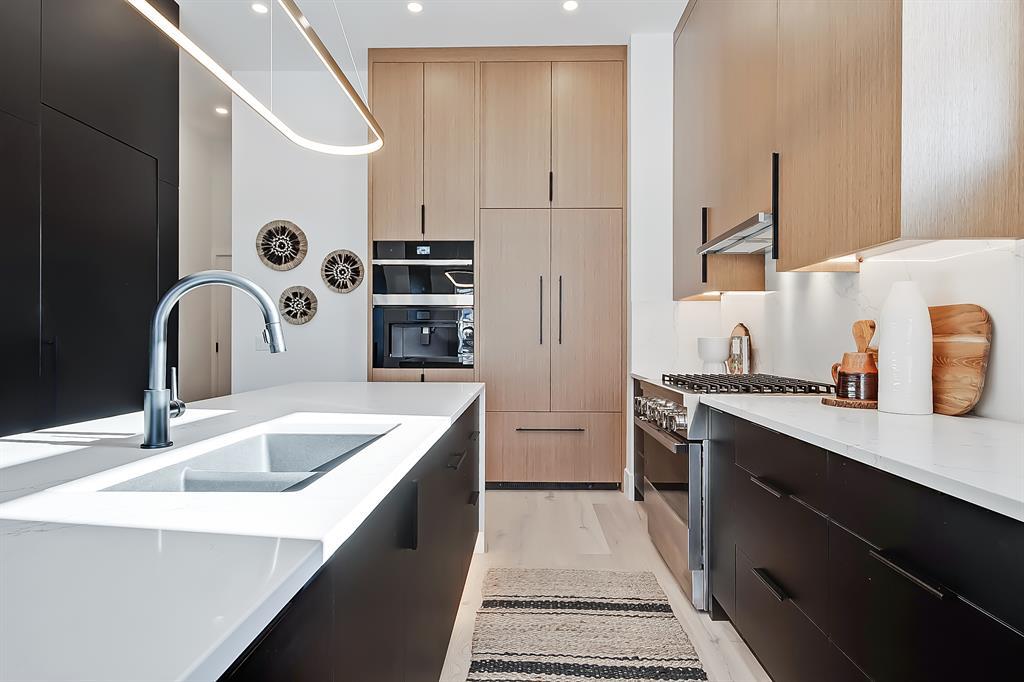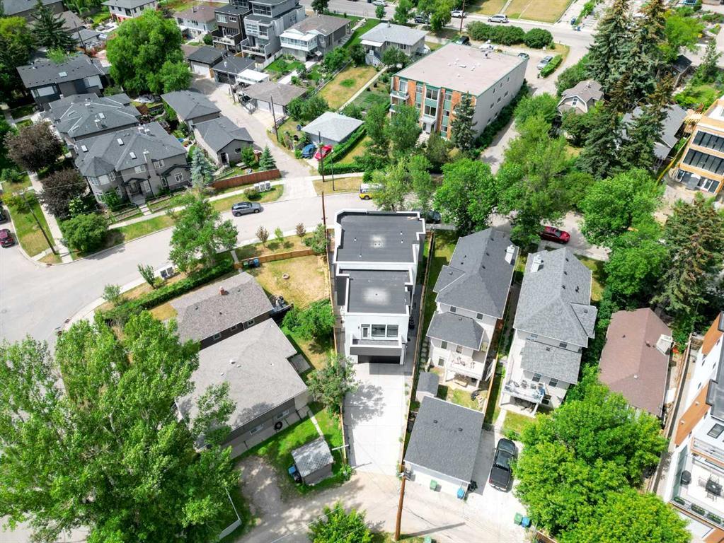 MOVE IN READY! This opulent DETACHED home on a 50’ x 110’ PIE SHAPED LOT w/ a LEGAL 2 BEDROOM BASEMENT SUITE, SOUTH BACKYARD, & DOWNTOWN VIEWS in BRIDGELAND is a modern masterpiece, brought to you by Le Riva Homes! Boasting over 3,400 sq ft across all levels, a lavish exterior & elegant interior finishes & upgrades all come together in this modern home, starting w/ the main floor. The main floor features exclusive 7” wide plank engineered white oak hardwood floors, 11-ft ceilings, & a OVERSIZED DOUBLE ATTACHED GARAGE. The chef-inspired kitchen centers on a 10-ft oversized island & has upgraded appliances, including a gas range, a panelled fridge/freezer, & a built-in coffee machine. Quartz counters sit alongside an elegant white porcelain backsplash w/ two-tone cabinetry for a highly modern, luxury aesthetic. The formal dining room enjoys a lavish feel w/ a dropped ceiling w/ LED accent lights, a black ink feature wall, & a designer chandelier. After dinner, relax in the great room around the Napoleon gas fireplace w/ white porcelain surround. Use the main floor bedroom for guests or a home office, w/ its built-in study desk & cabinetry. The main bath is also convenient for guests, fully equipped w/ two-tone cabinetry, Vicostone quartz counter, & walk-in shower w/ full-height bevelled subway tile surround. Upstairs, the modern luxury continues w/ 11-ft ceilings in the master & 2x bedrooms, w/ 10-ft ceilings in the living room. The dreamy master suite has an opulent ensuite w/ a free-standing soaker tub w/ stone feature wall, a walk-in steam shower w/ stone surround, a dual vanity, & natural stone flooring. The attached walk-in closet is straight out of the movies w/ custom built-in shelving, hanging storage, drawers, & more. 3x extra bedrooms also reside upstairs, along w/ 2x full bathrooms, a family room w/ access to the rear deck w/ DOWNTOWN VIEWS, & a fully equipped laundry room w/ a linen tower & sink. The legal basement suite is just as modern & chic as the res t of the home & has a private entrance & separate parking space. This level provides options for extra rec space, a mother-in-law suite, or an avenue for revenue. A fully equipped two-tone kitchenette w/ a slide-in range, fridge/freezer, dishwasher, & wall microwave is at the heart of the suite, & expands into a rec room w/ Napoleon electric fireplace w/ full-height stone-like surround, two bedrooms, & a full bathroom. **The upgraded features are too vast to list, VISIT MULTIMEDIA LINKS FOR VIDEO WALKTHROUGH!** (id:22211)