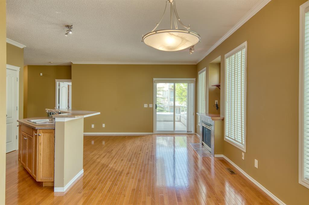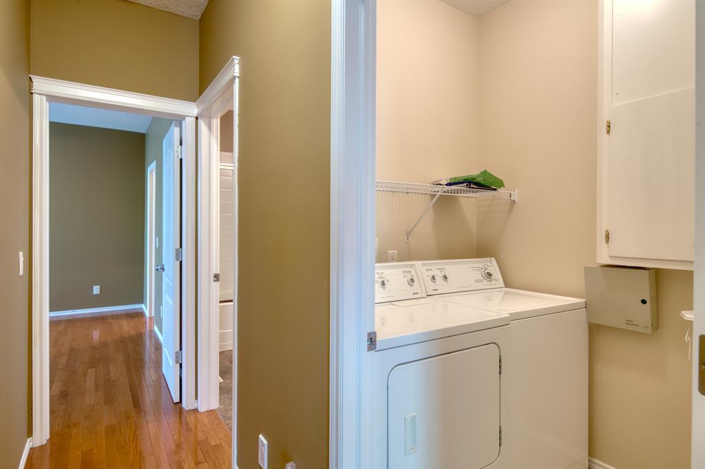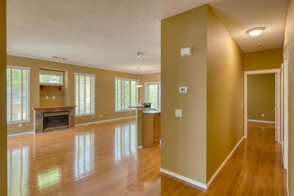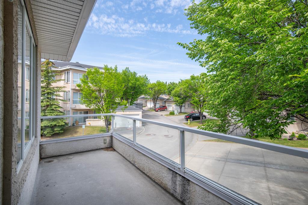 THIS TYPE OF UNIT COMES ON THE MARKET RARELY!! Oversized, insulated & drywalled double attached garage. The flight of stairs takes you to the spacious, classy living area, all on one level with it's 9' CEILINGS, HARDWOOD FLOORS THROUGHOUT, TILE IN THE 2 BATHROOMS, 2 DECKS( one with gas BBQ hookup). The kitchen is open concept style with lots of warm oak cabinetry and spacious counters- eating bar on one end of the island. Windows all around provide wonderful NATURAL LIGHT into the unit. Enjoy a glass of wine on one of your TWO decks, with trees providing added privacy. The primary bedroom is spacious, has a walkin closet and a full 4 piece bath. The second bedroom is very separate from the primary, also large and boasts a walkin closet as well. Access to the the main 4 piece bath is right out the door. Guest parking is only steps away from the front door and shopping at Co-op is a 5 minute walk across Country Hills Blvd. Lots of extra storage room in the oversized double attached garage. The complex is well managed, low condo fees and a rubber roof was recently installed. DON'T MISS THIS ONE!! (id:22211)