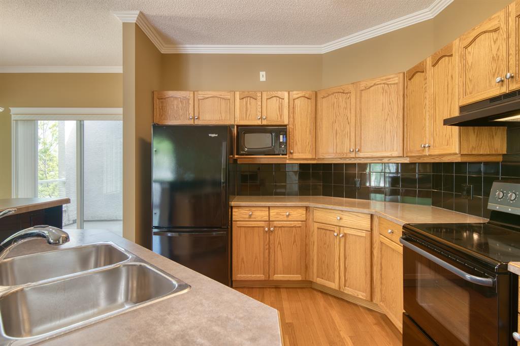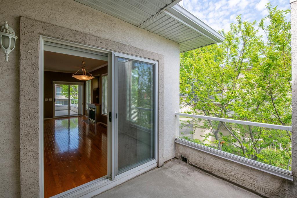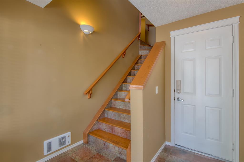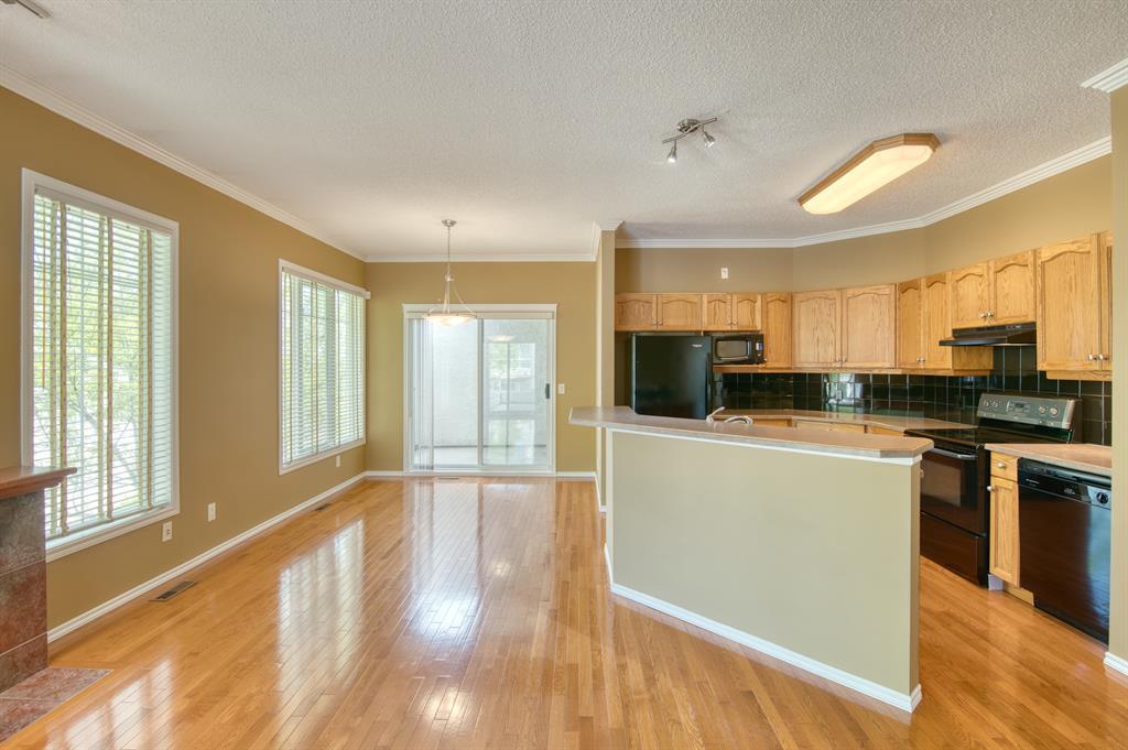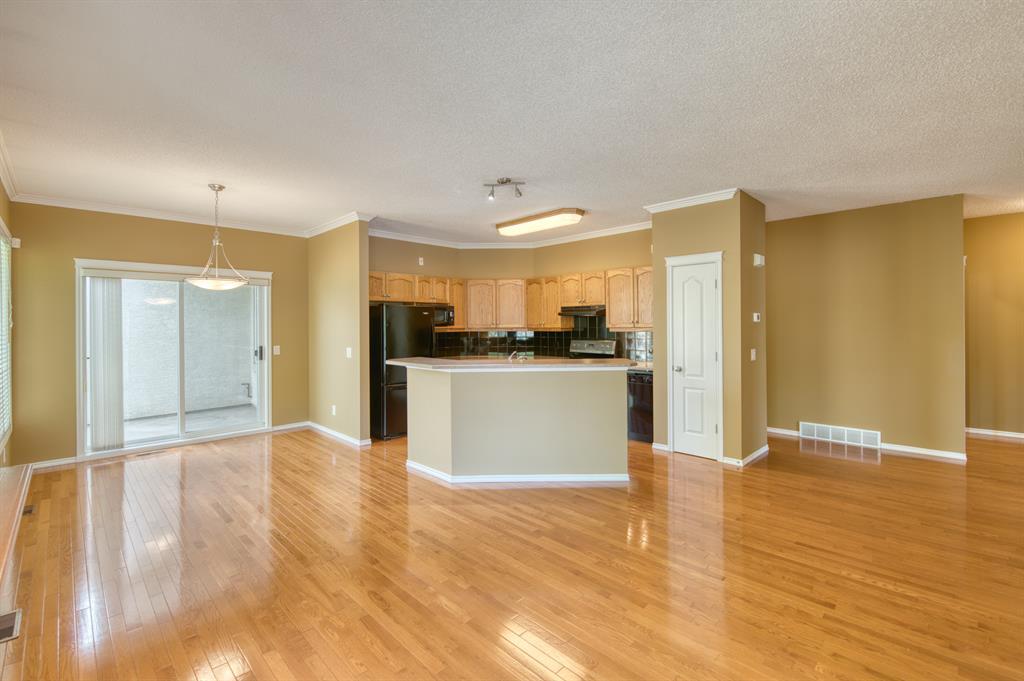 THIS TYPE OF UNIT COMES ON THE MARKET RARELY!! Oversized, insulated & drywalled double attached garage. The flight of stairs takes you to the spacious, classy living area, all on one level with it's 9' CEILINGS, HARDWOOD FLOORS THROUGHOUT, TILE IN THE 2 BATHROOMS, 2 DECKS( one with gas BBQ hookup). The kitchen is open concept style with lots of warm oak cabinetry and spacious counters- eating bar on one end of the island. Windows all around provide wonderful NATURAL LIGHT into the unit. Enjoy a glass of wine on one of your TWO decks, with trees providing added privacy. The primary bedroom is spacious, has a walkin closet and a full 4 piece bath. The second bedroom is very separate from the primary, also large and boasts a walkin closet as well. Access to the the main 4 piece bath is right out the door. Guest parking is only steps away from the front door and shopping at Co-op is a 5 minute walk across Country Hills Blvd. Lots of extra storage room in the oversized double attached garage. The complex is well managed, low condo fees and a rubber roof was recently installed. DON'T MISS THIS ONE!! (id:22211)